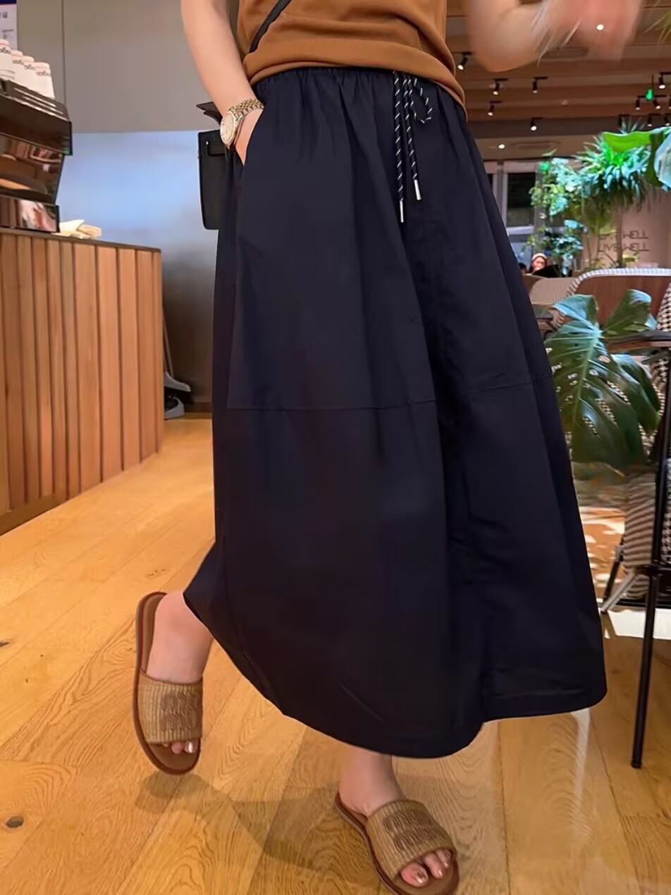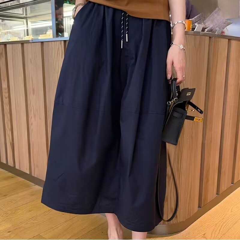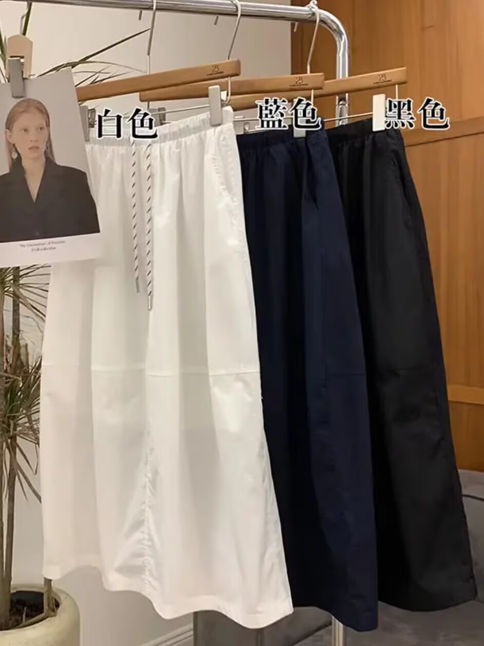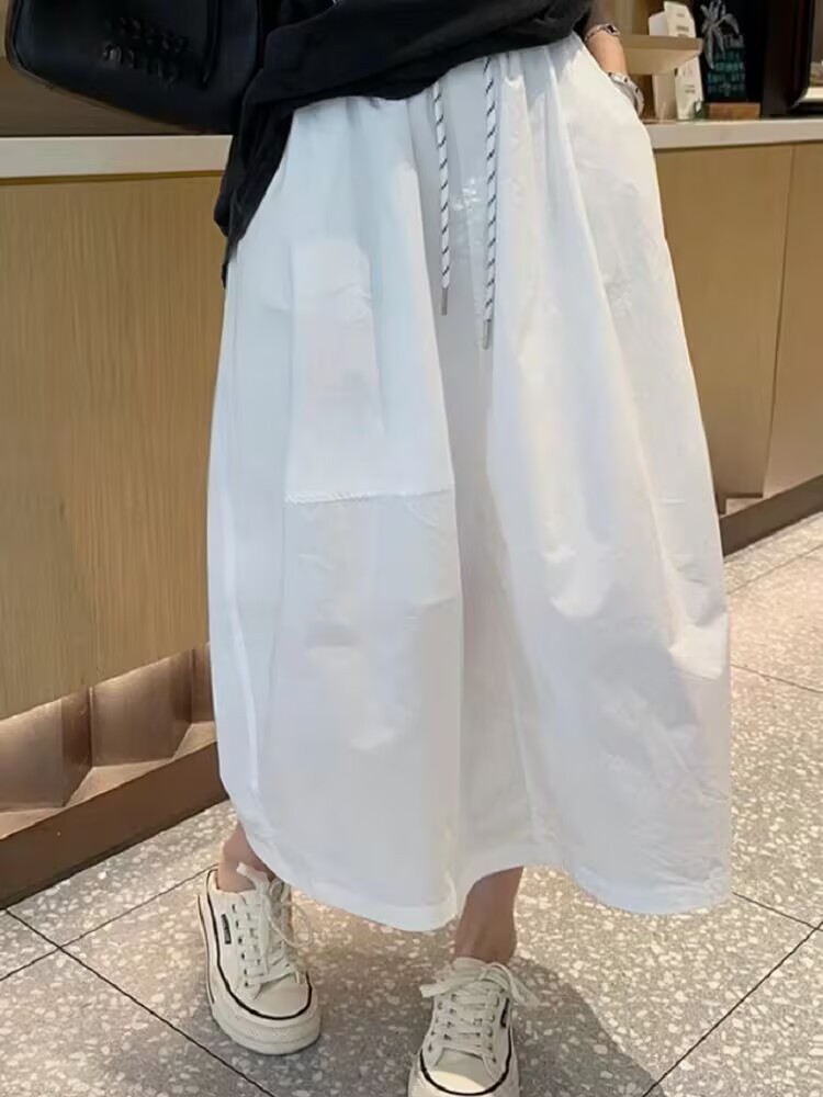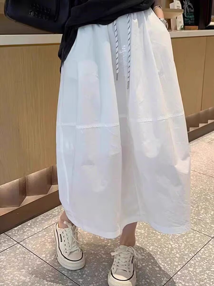 유럽 제품 25 솔리드 컬러 드로스트링 버드 스커트 여성 여름 루즈 슬리밍 다목적 캐주얼 작업복 중간 길이 스커트 여름