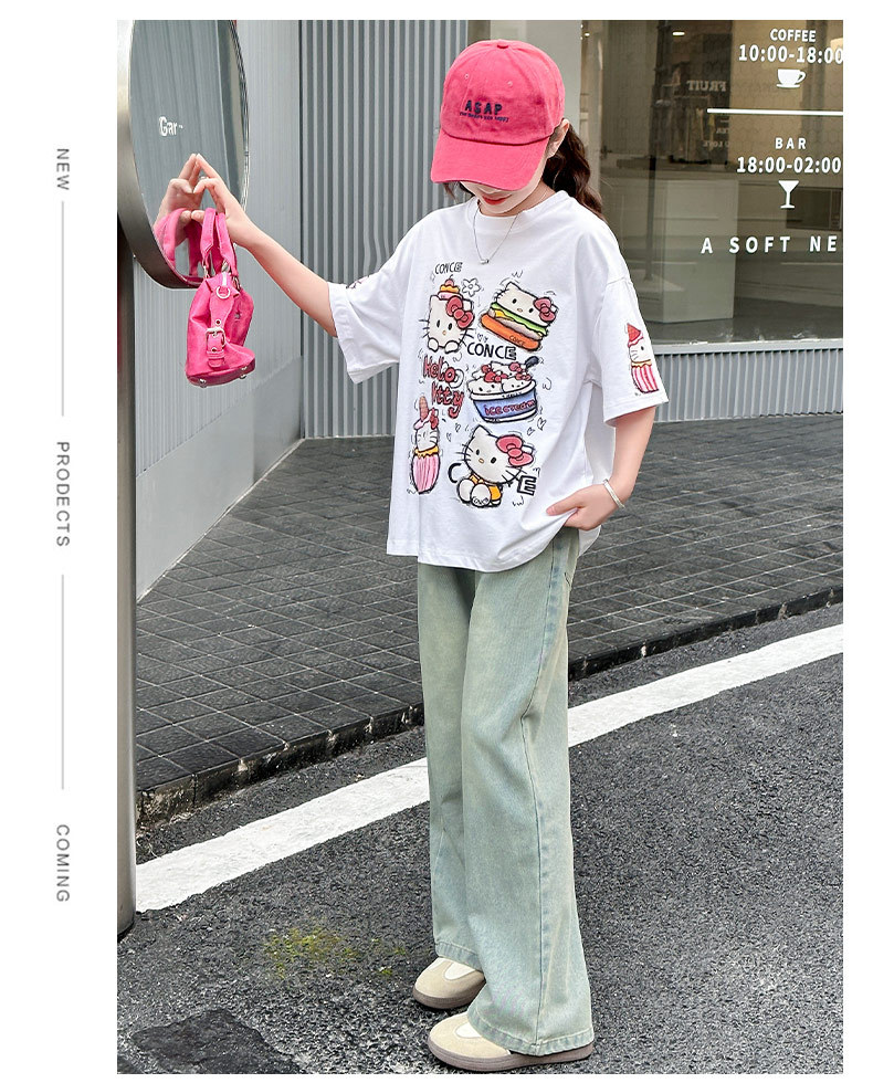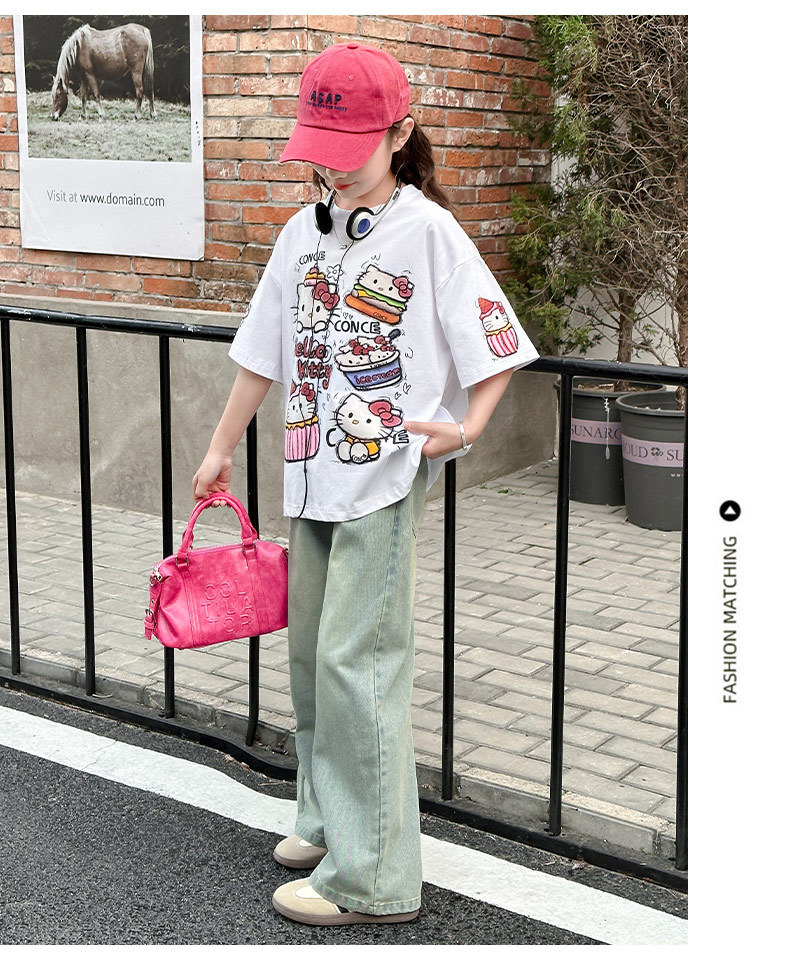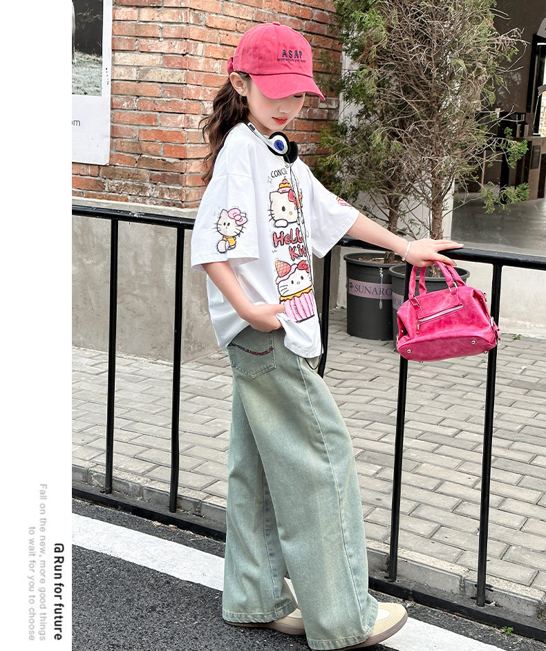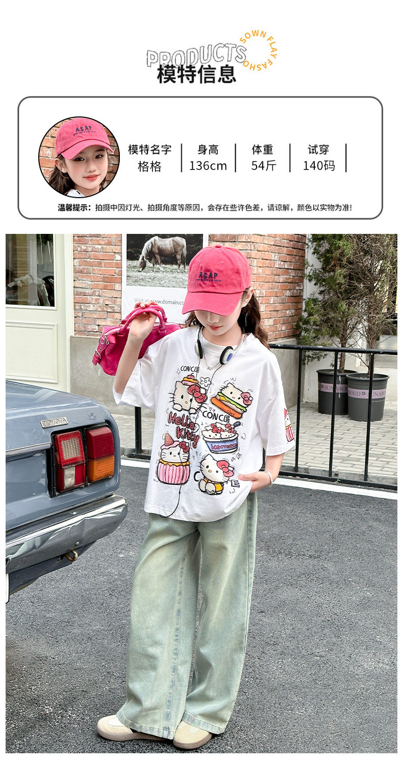여자 정장 여름 옷 2025 새로운 어린이 스타일 반팔 티셔츠 여자 여름 얇은 청바지 투피스 세트스토어 가기