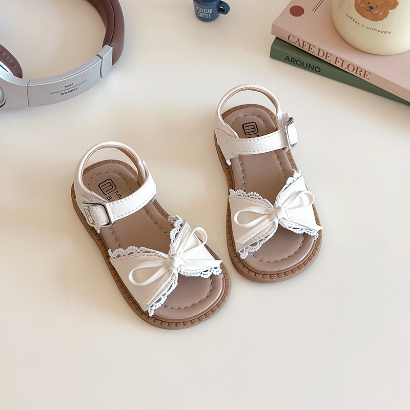 여자 샌들 2025 봄과 여름 새로운 어린이 나비 매듭 미끄럼 방지 부드러운 밑창 신발 야외 스타일 부드러운 밑창 샌들