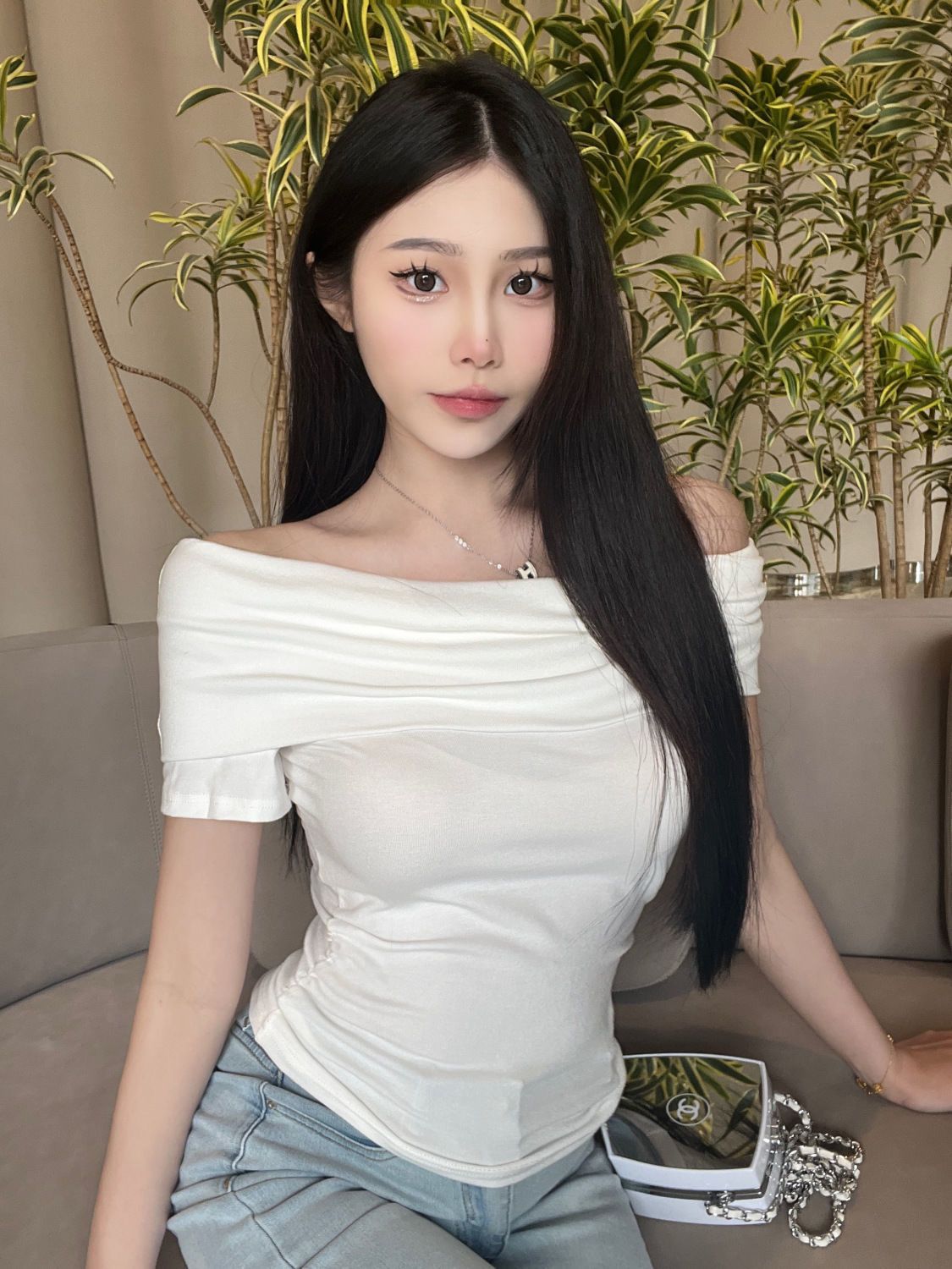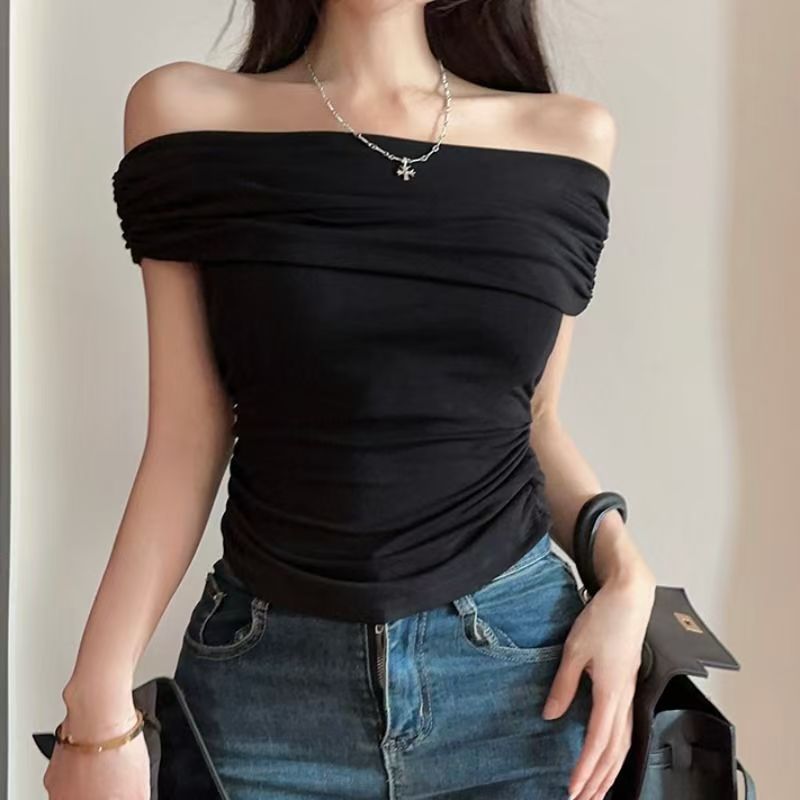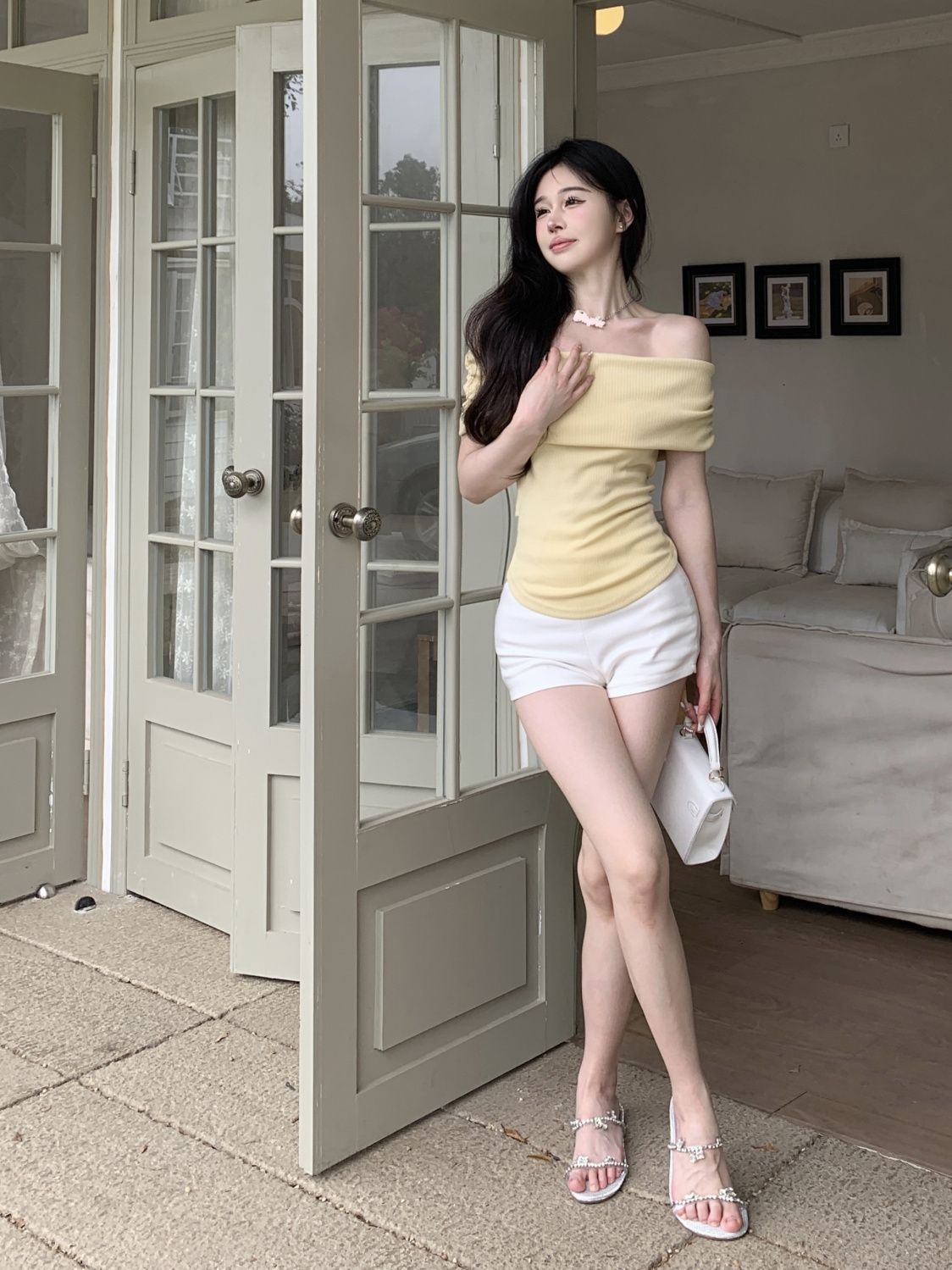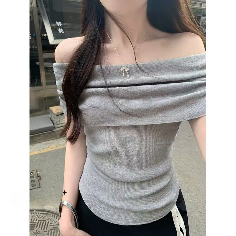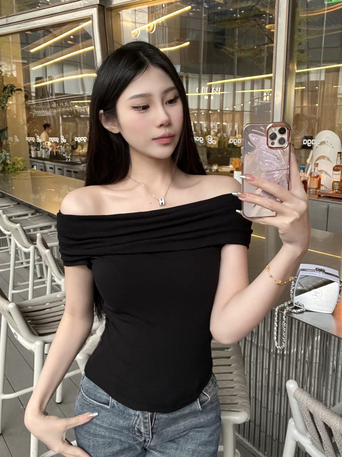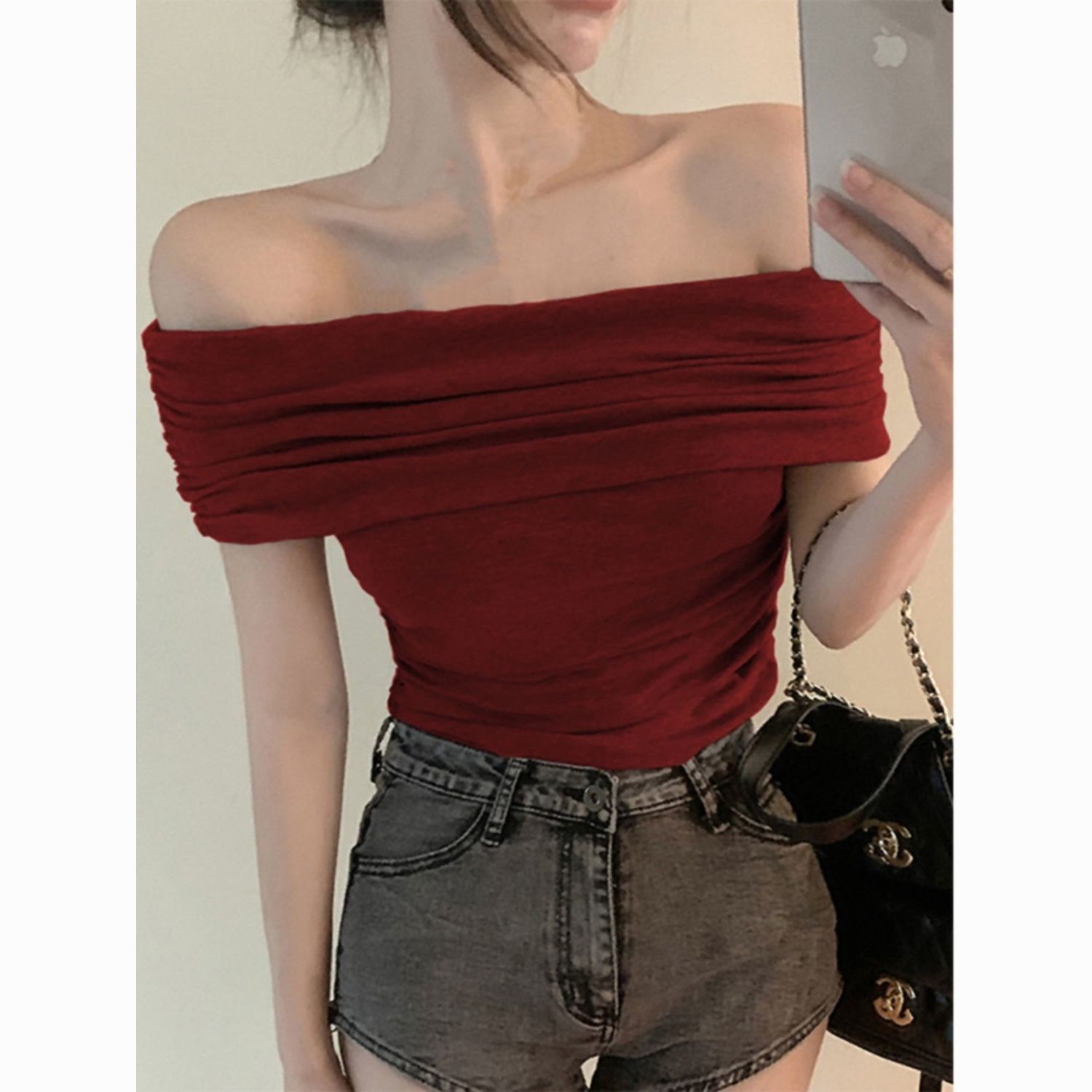 여름에는 매콤하고 달콤한 원숄더 여성용 한국형 탑, 고급스럽고 활용도가 높은 오프숄더 슬리밍 기질 이너 티셔츠스토어 가기