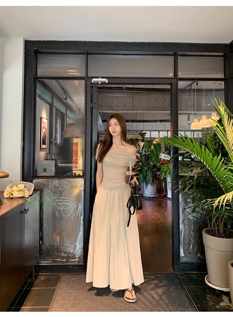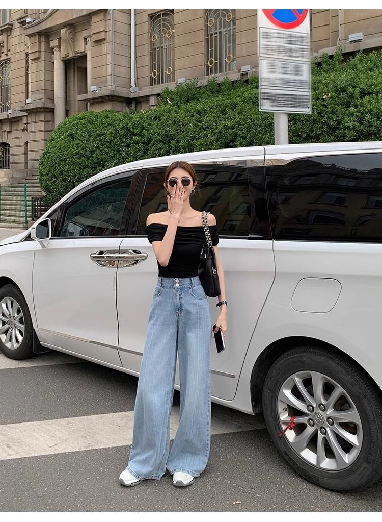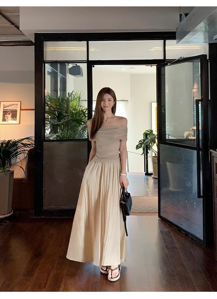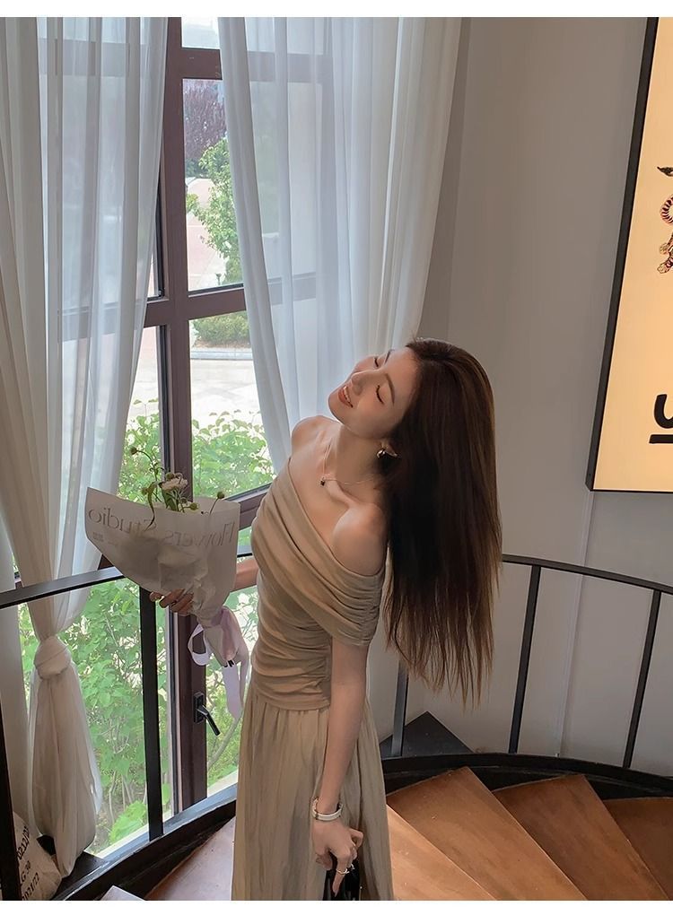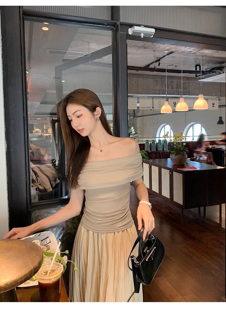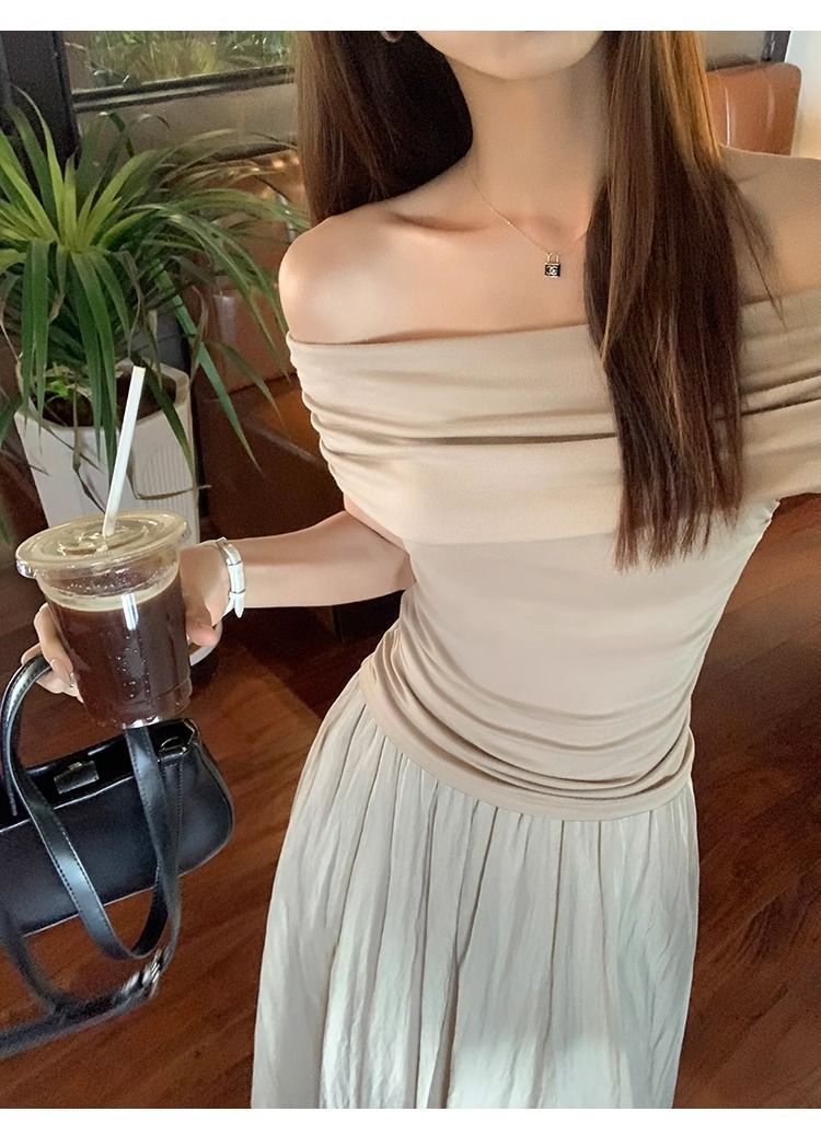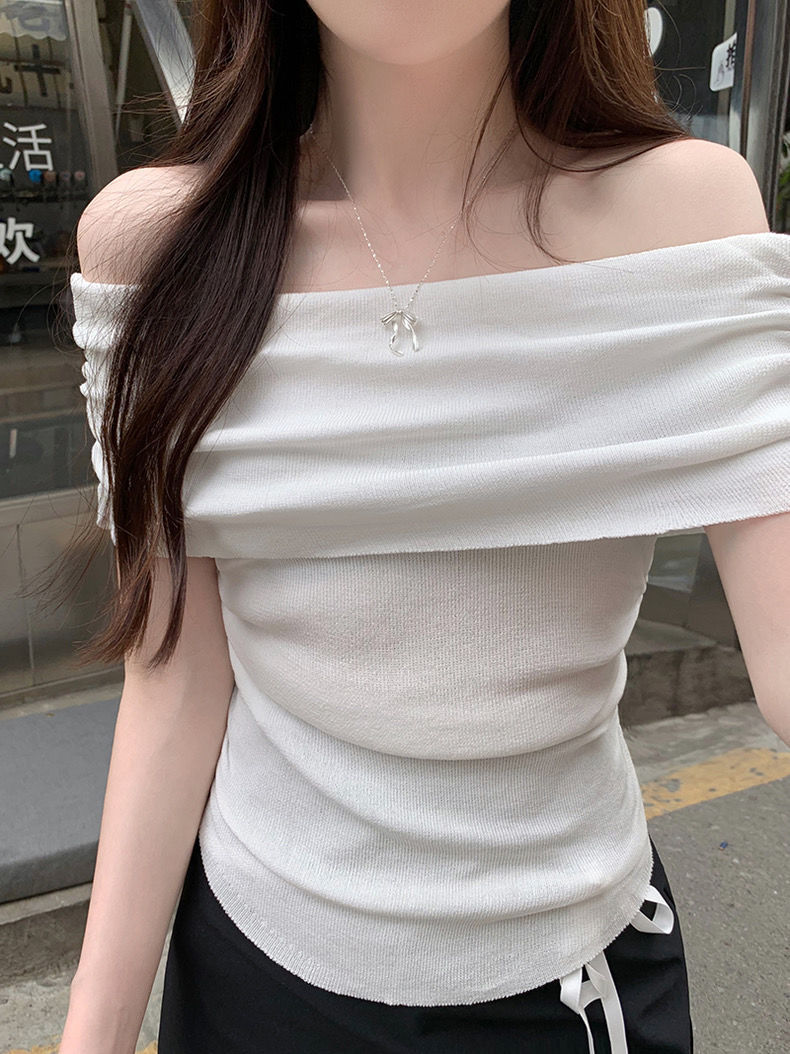 여름에는 매콤하고 달콤한 원숄더 여성용 한국형 탑, 고급스럽고 활용도가 높은 오프숄더 슬리밍 기질 이너 티셔츠스토어 가기