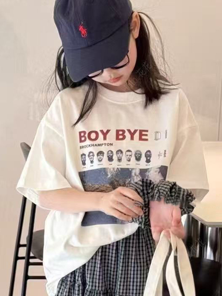 여자 한국 스타일 느슨한 유행 인쇄 된 편지 패턴 반팔 2025 올 매치 패치 워크 격자 스커트 투피스 세트스토어 가기