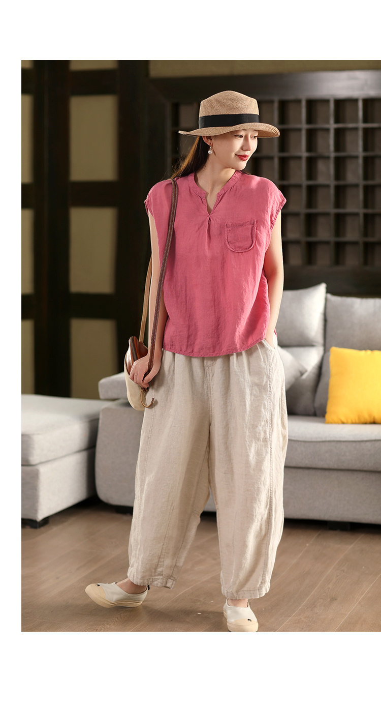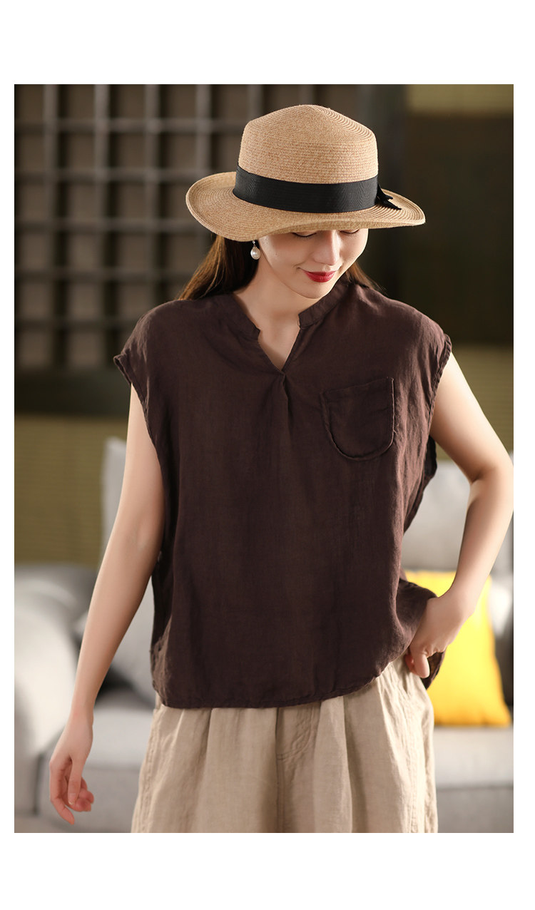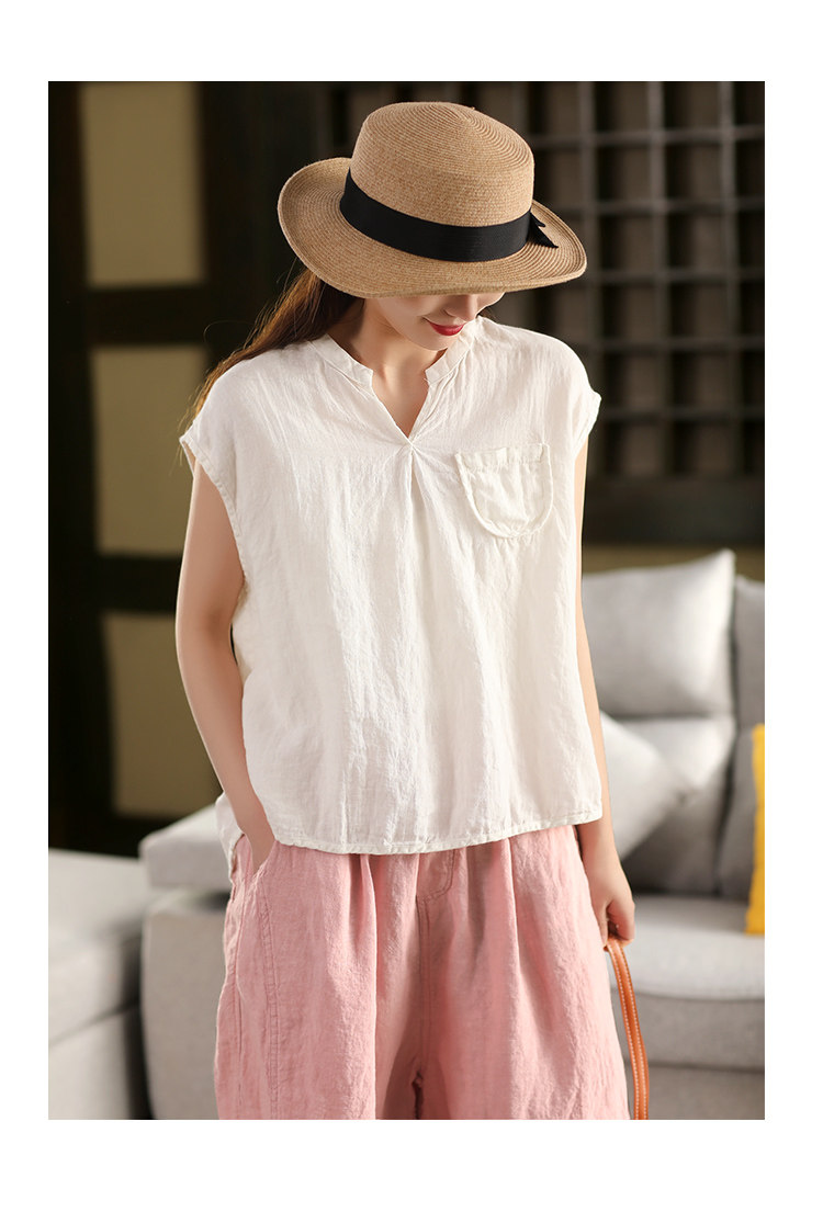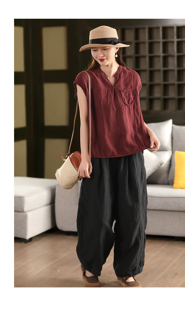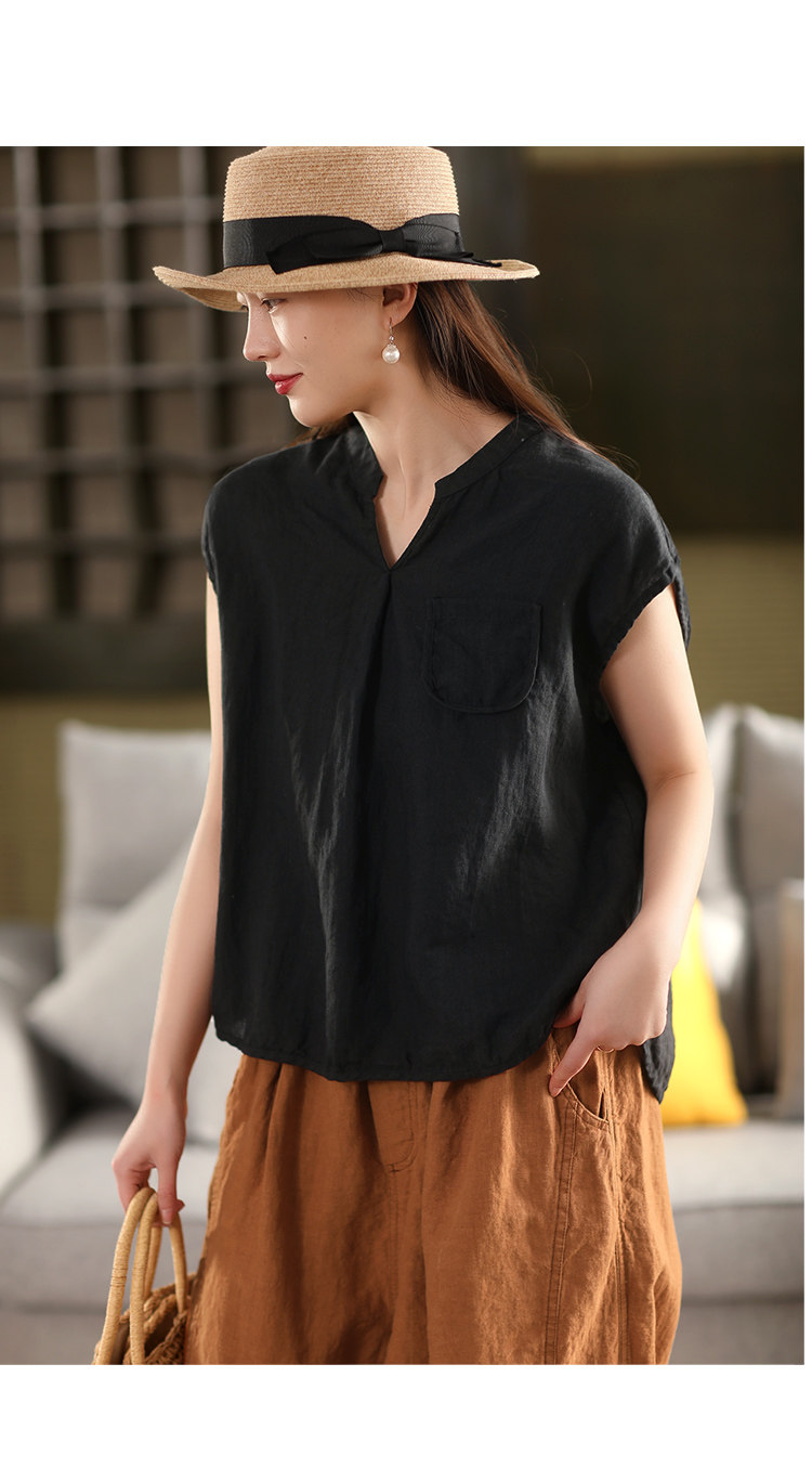2025 봄 새로운 빈티지 샌드 워시 린넨 셔츠 여성의 여름 짧은 소매 탑 예술적 단색 풀오버 셔츠