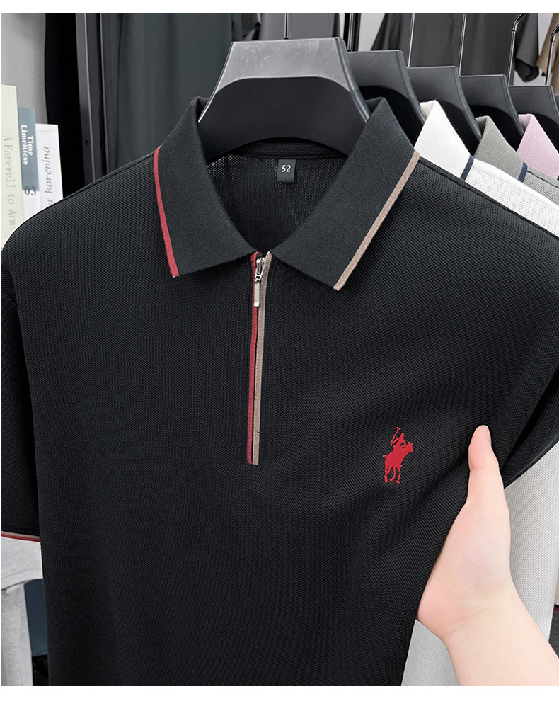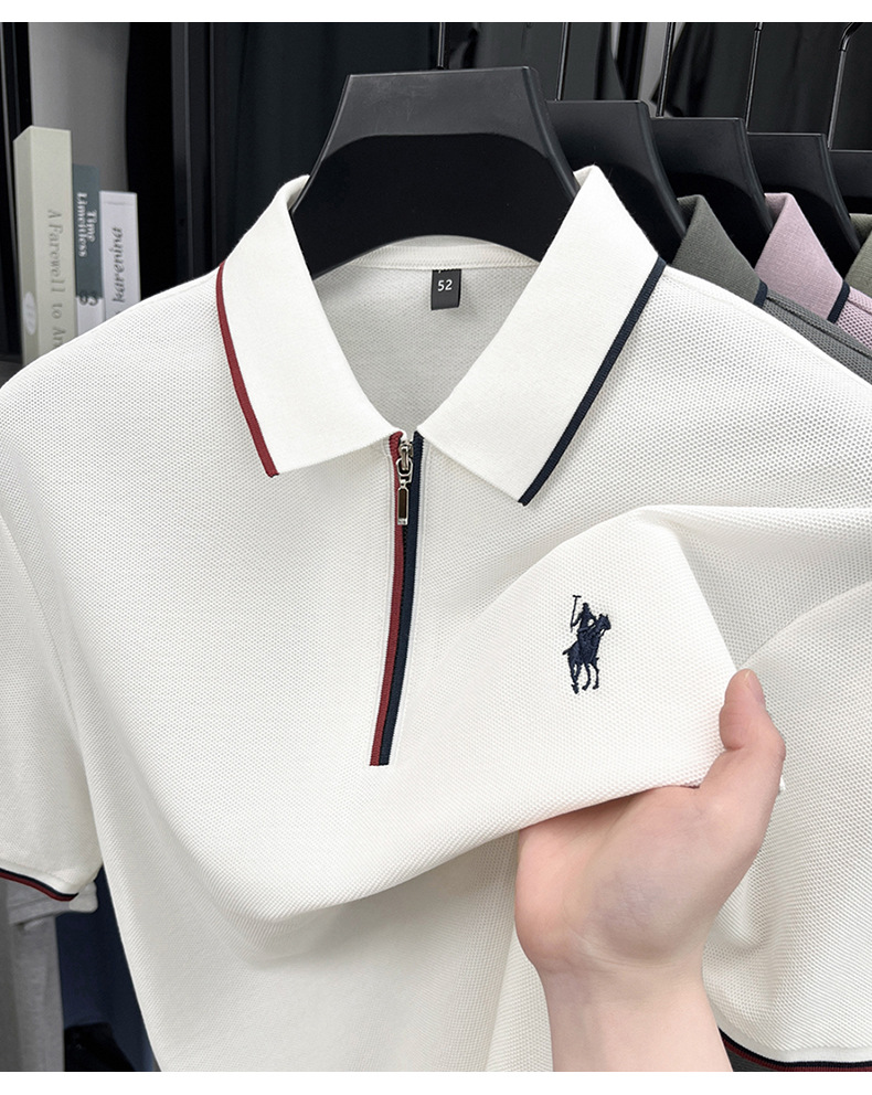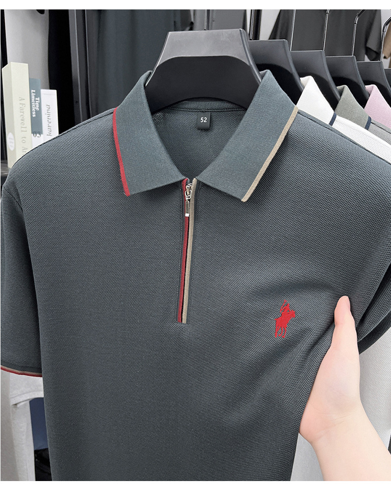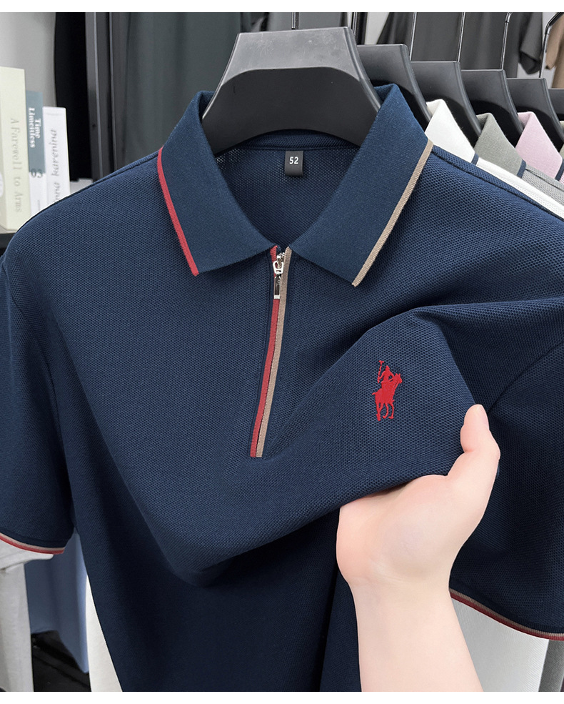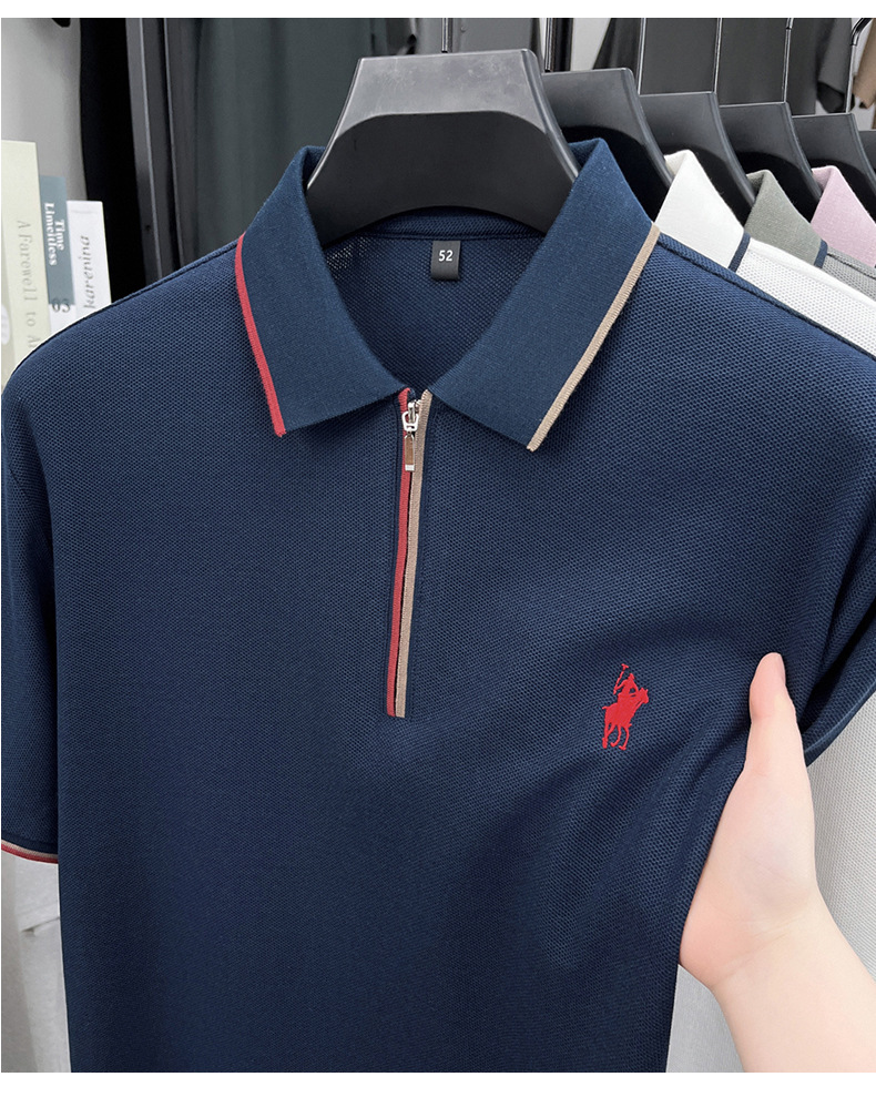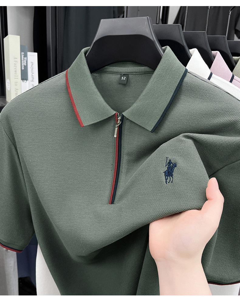 남자 여름 새 하프 Zip 패션 컬러 매칭 남성 폴로 짧은 소매 중년 및 젊은 고급 한국 캐주얼 T
