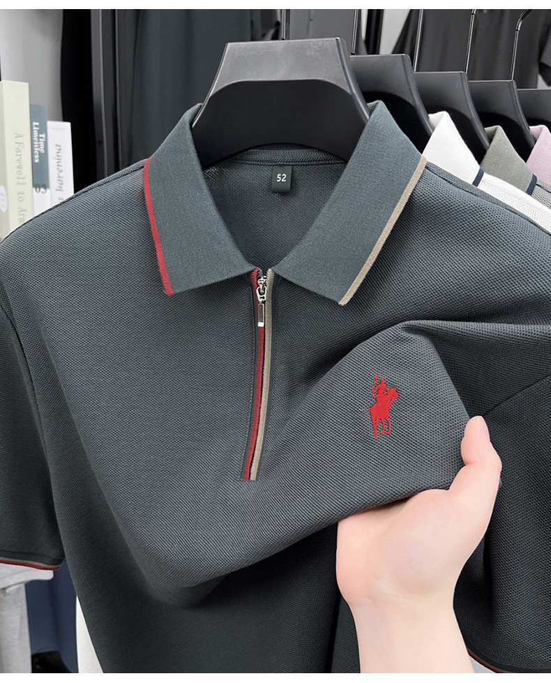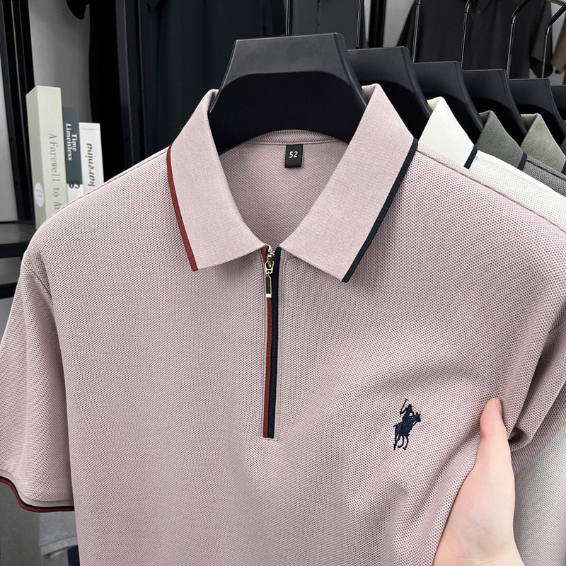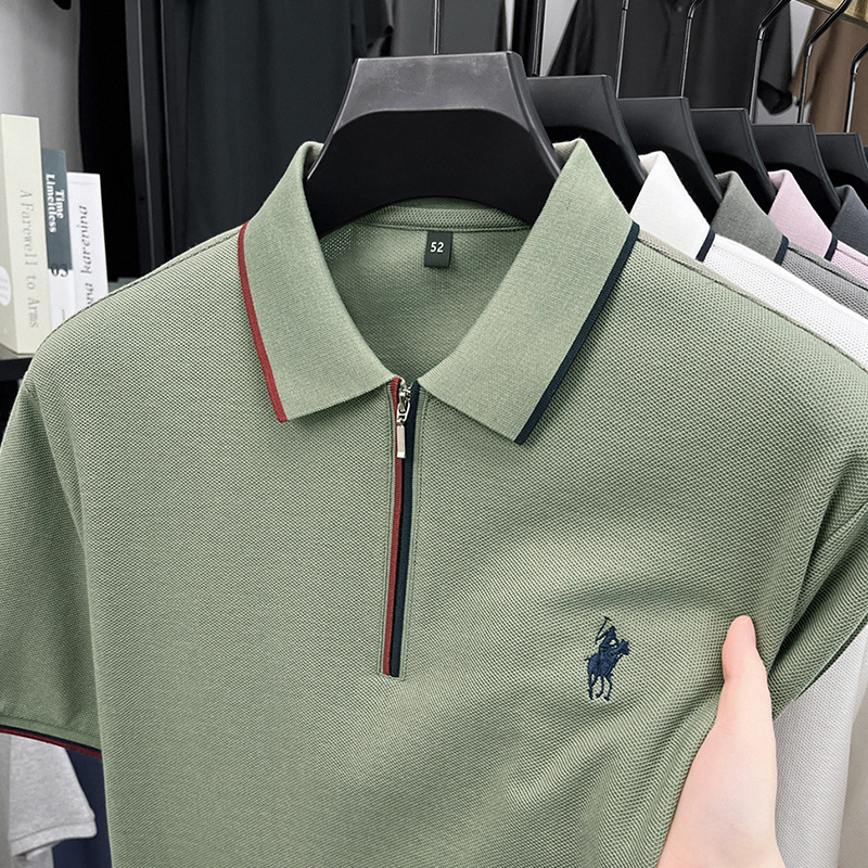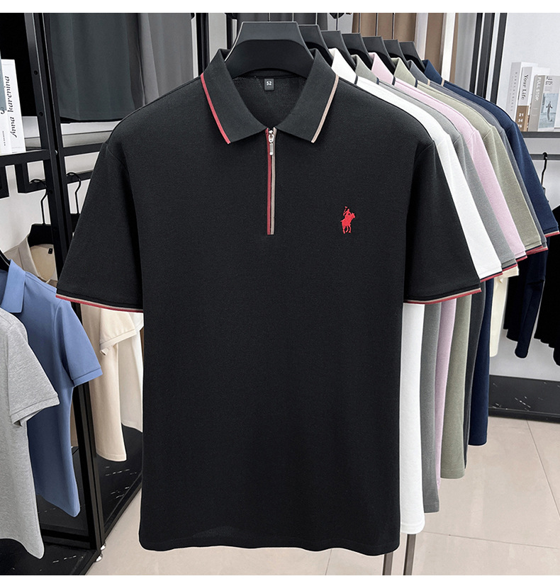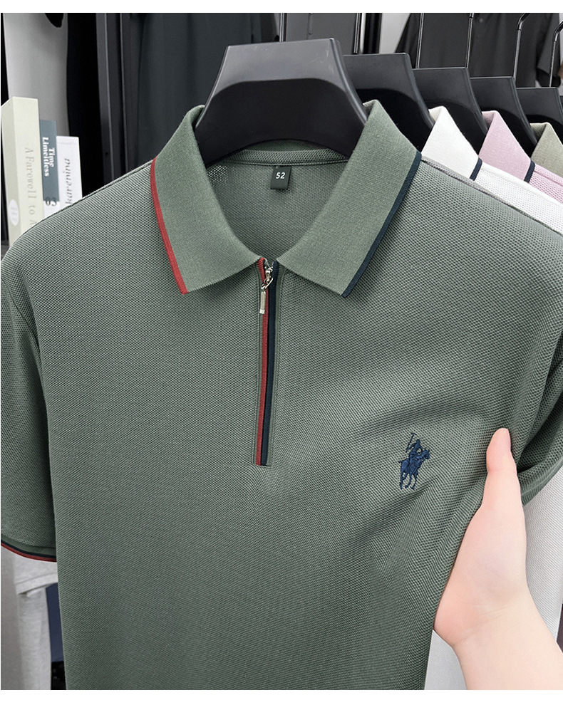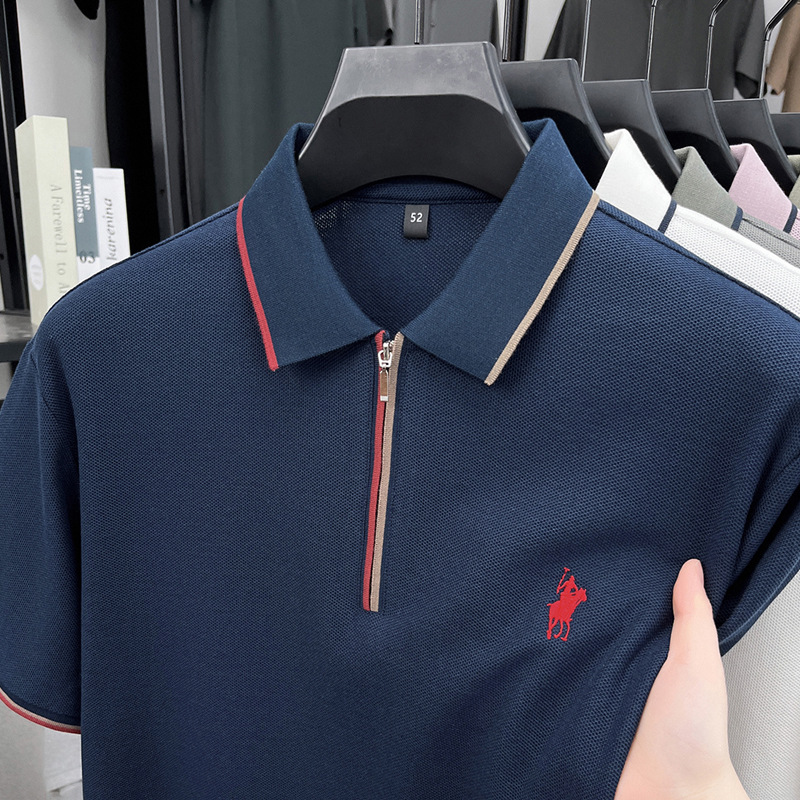 남자 여름 새 하프 Zip 패션 컬러 매칭 남성 폴로 짧은 소매 중년 및 젊은 고급 한국 캐주얼 T