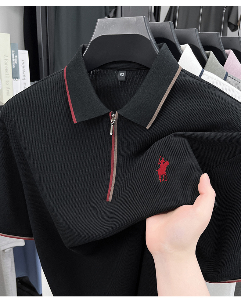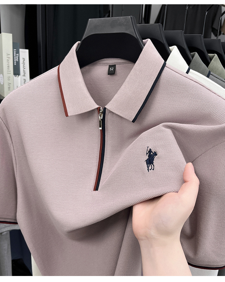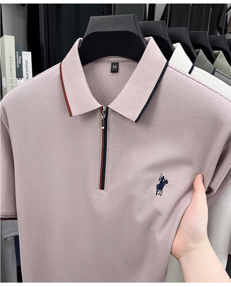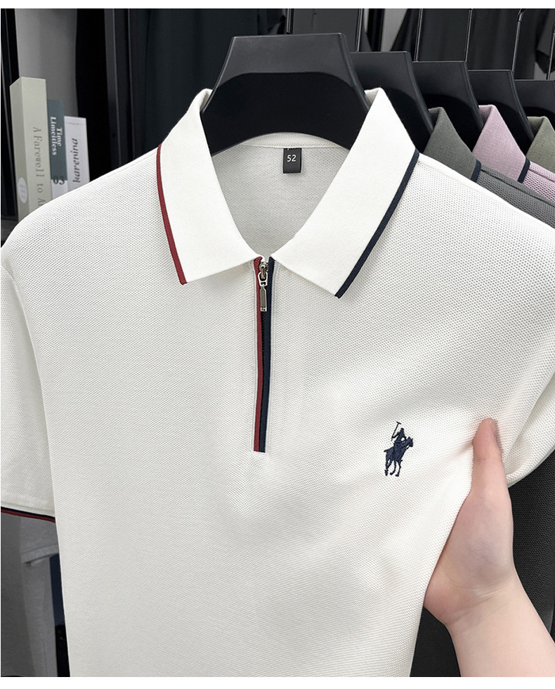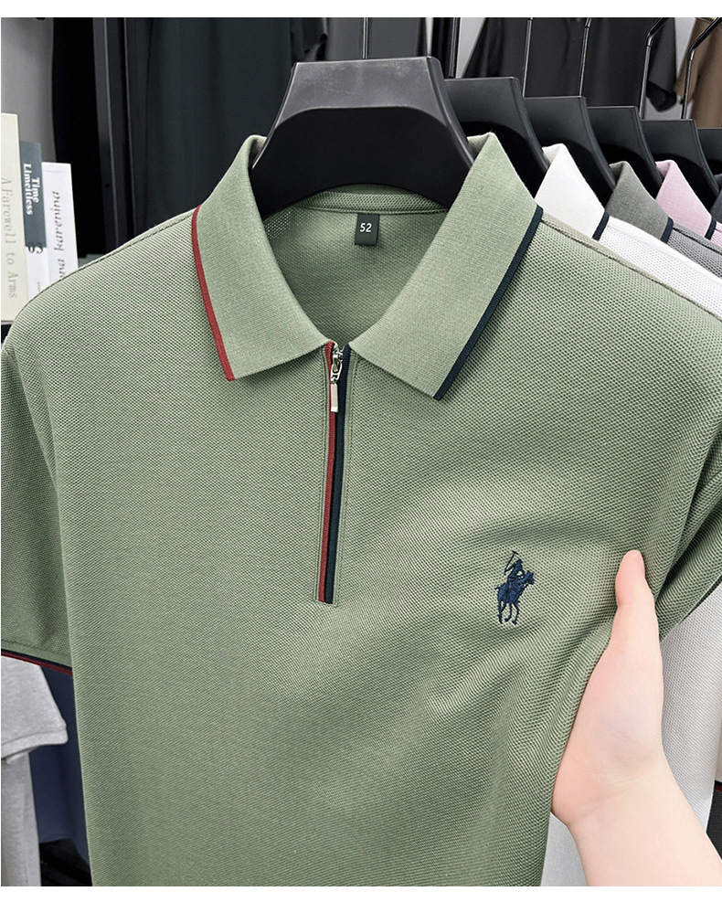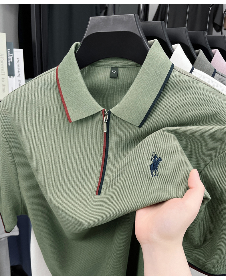 남자 여름 새 하프 Zip 패션 컬러 매칭 남성 폴로 짧은 소매 중년 및 젊은 고급 한국 캐주얼 T