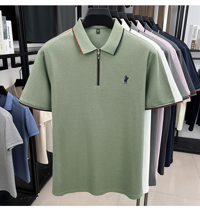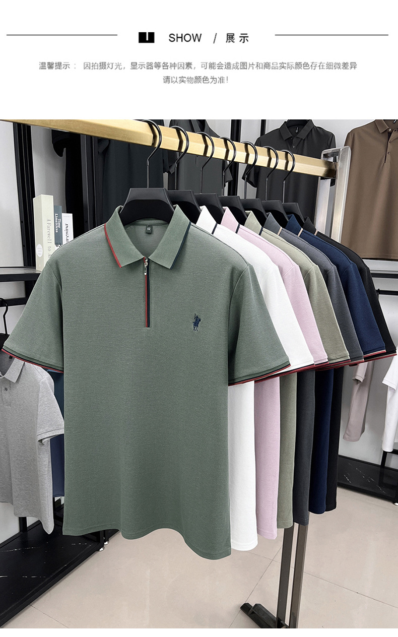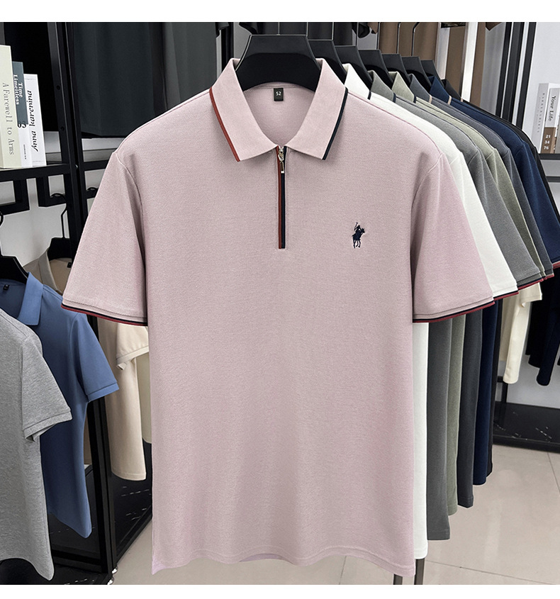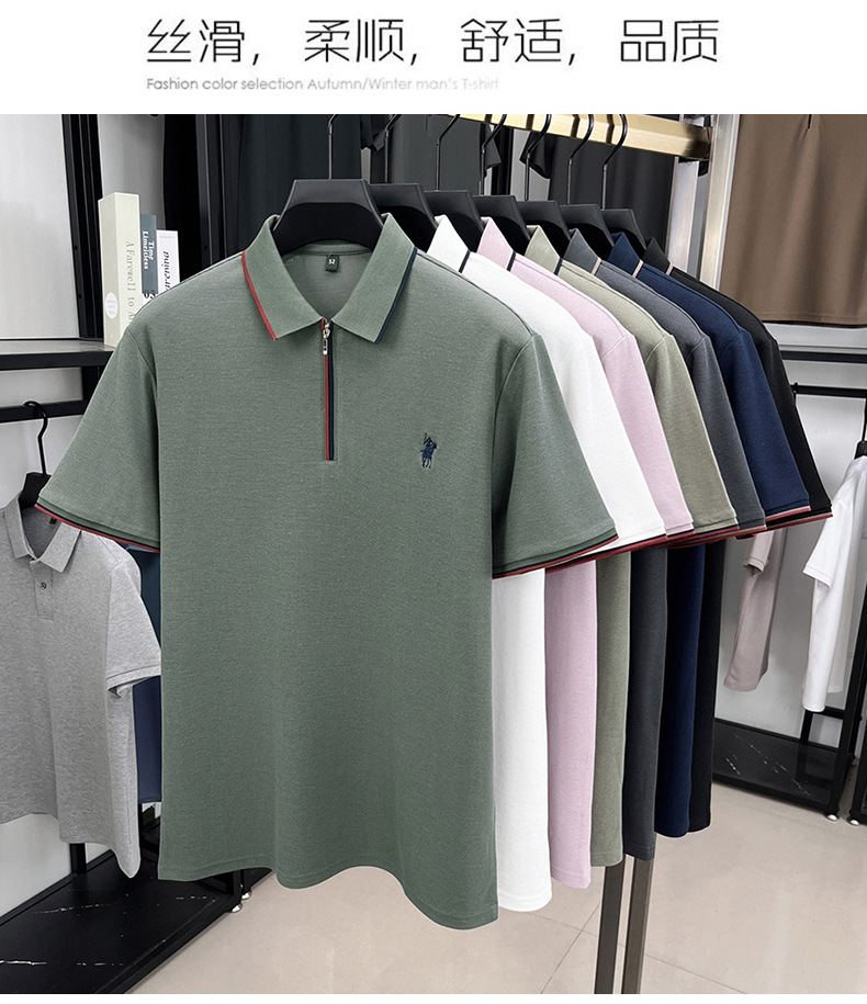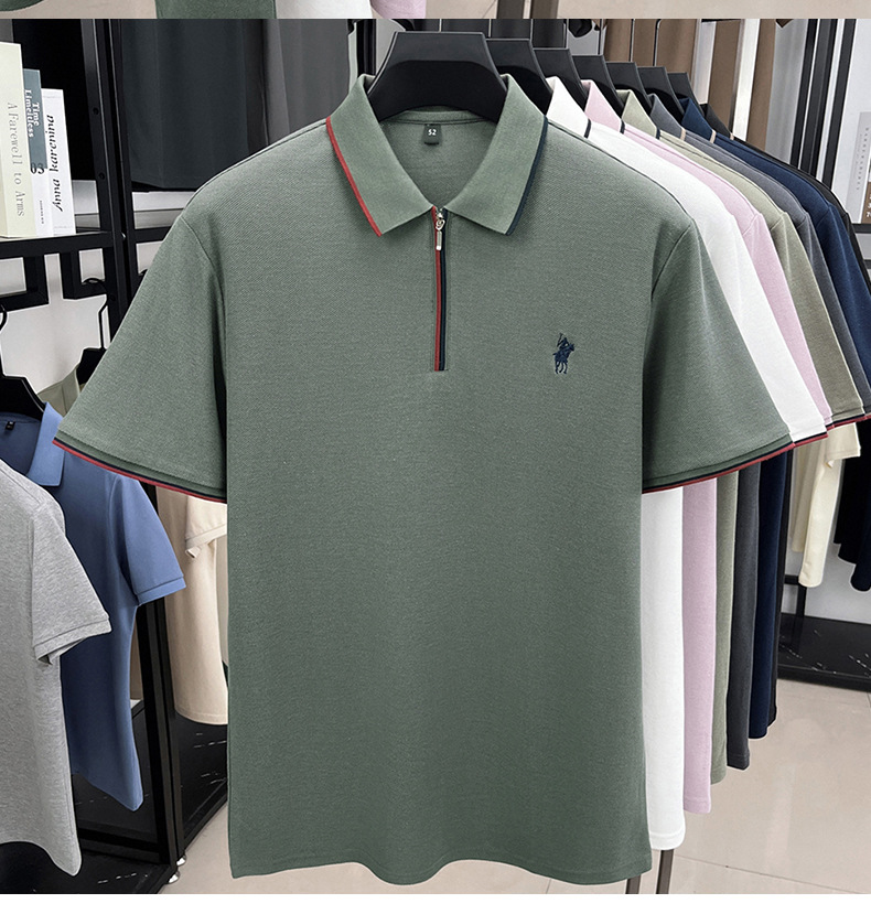 남자 여름 새 하프 Zip 패션 컬러 매칭 남성 폴로 짧은 소매 중년 및 젊은 고급 한국 캐주얼 T스토어 가기