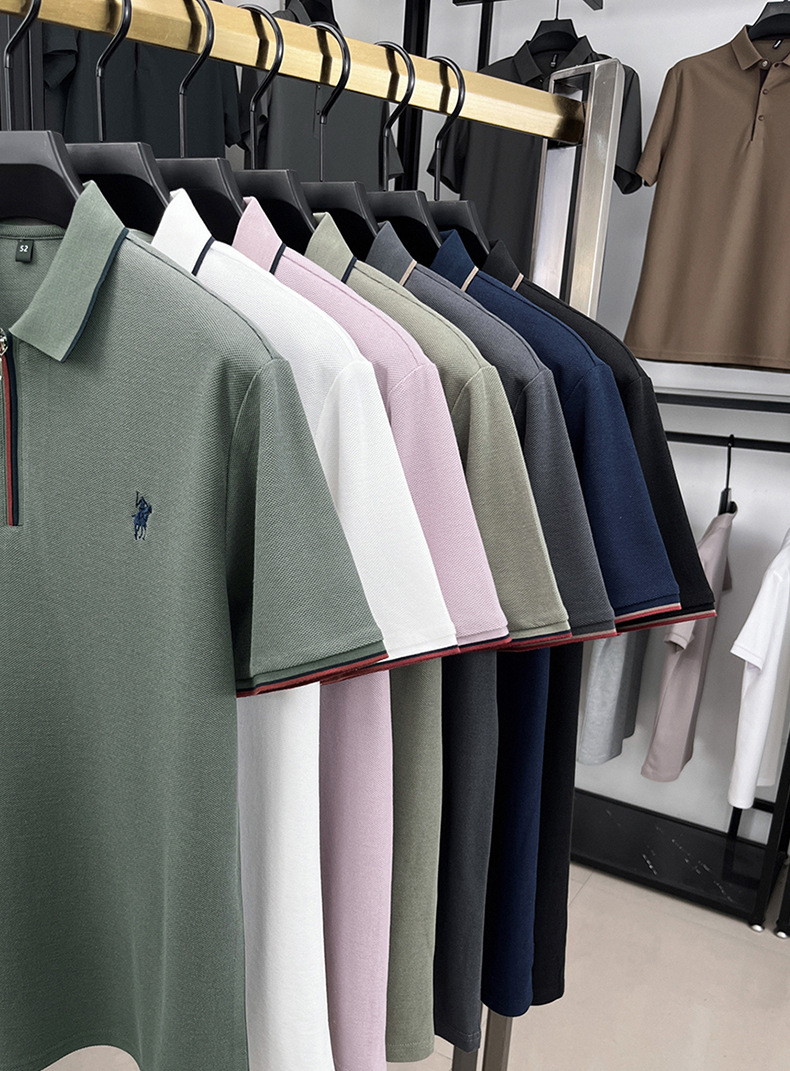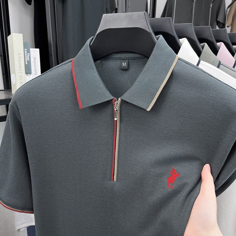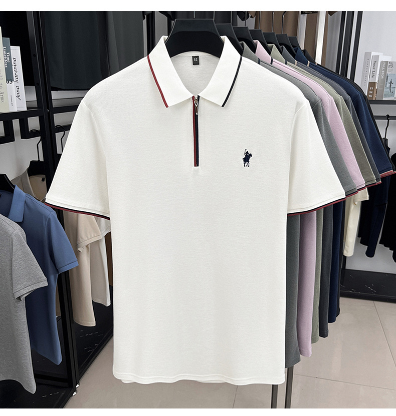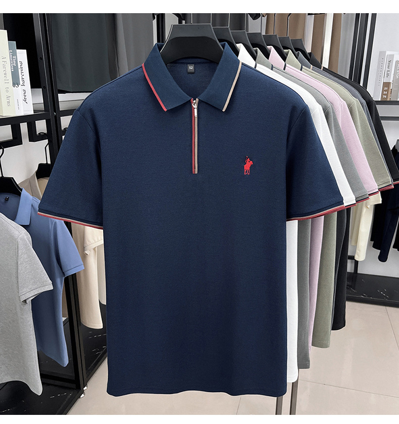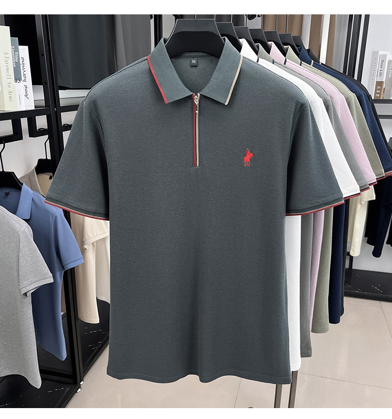 남자 여름 새 하프 Zip 패션 컬러 매칭 남성 폴로 짧은 소매 중년 및 젊은 고급 한국 캐주얼 T스토어 가기