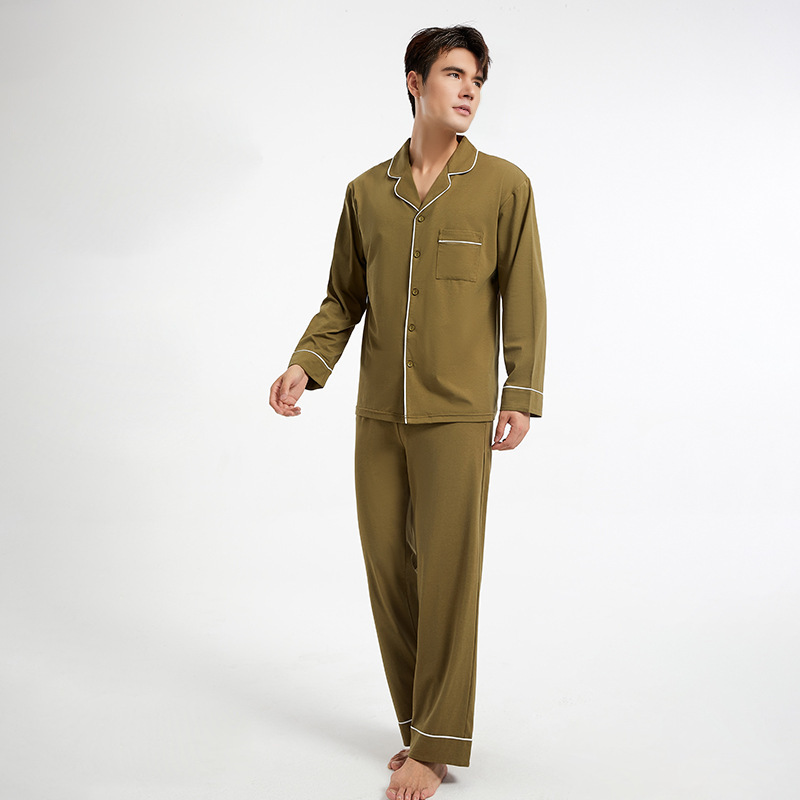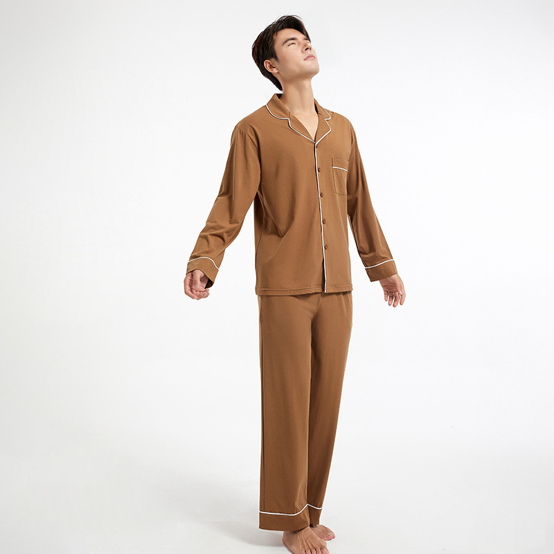 2025 봄과 가을 새로운 남성 홈웨어 라펠은 파자마 외부에 착용 가능 긴팔 통기성 빗질면 가디건