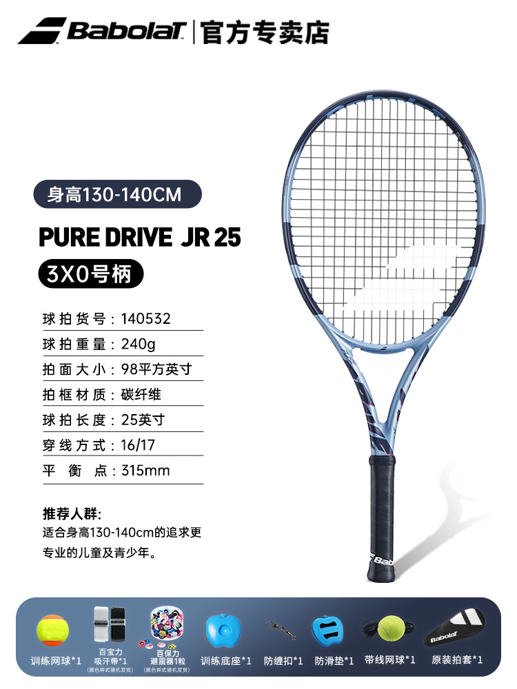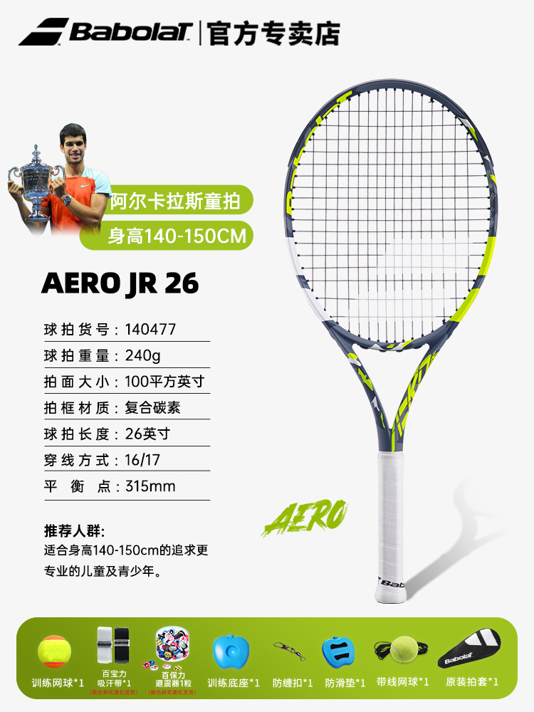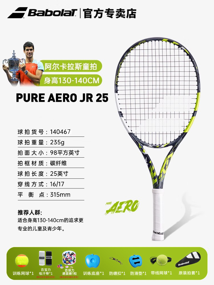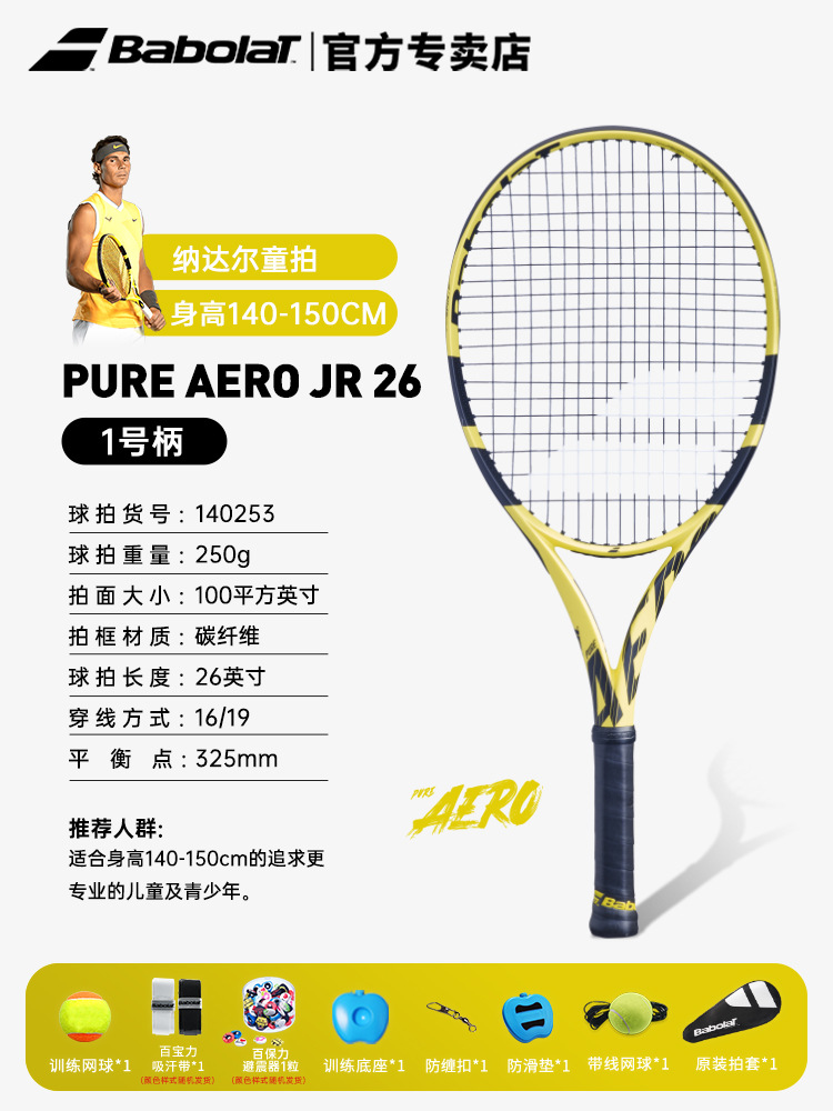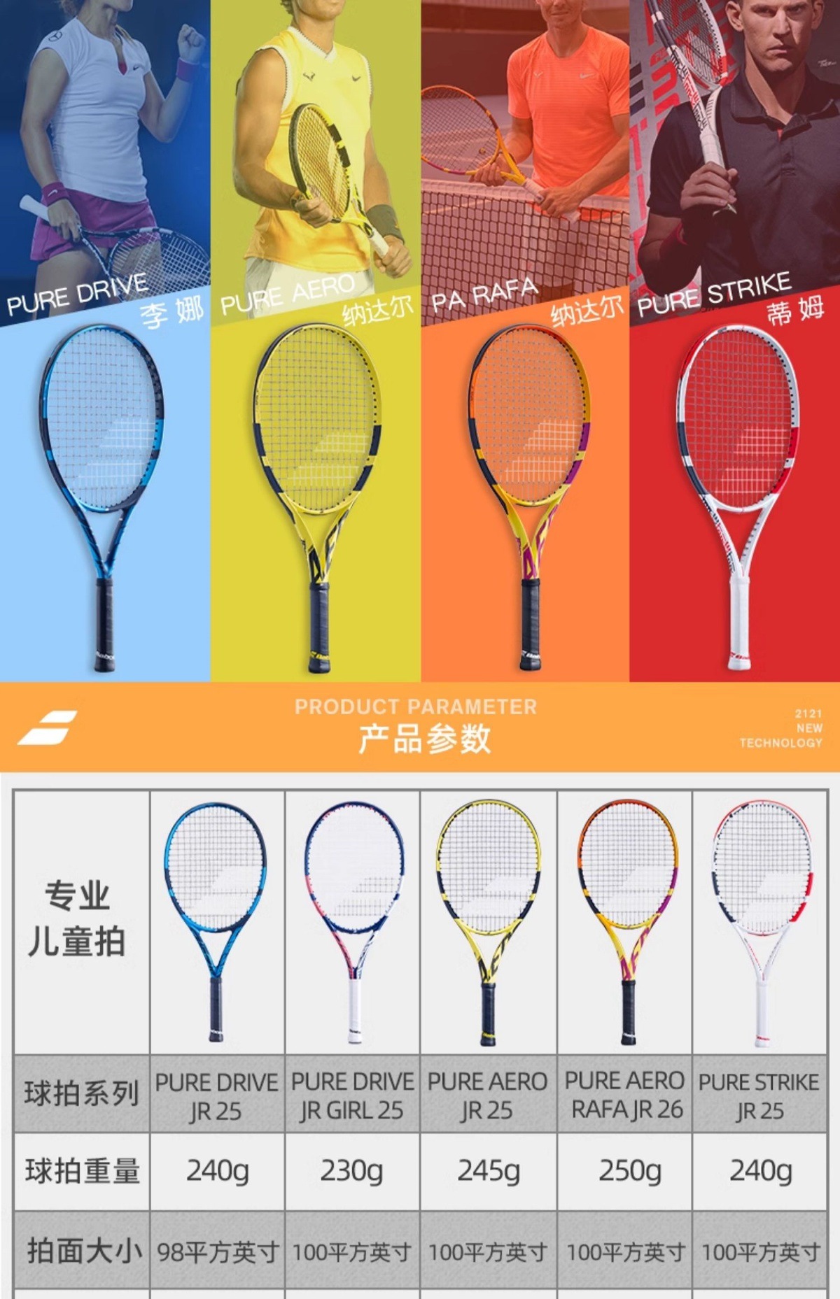 Babolat 어린이 테니스 라켓 풀 카본 프로 청소년 23/24/25/ 26inch 라켓스토어 가기