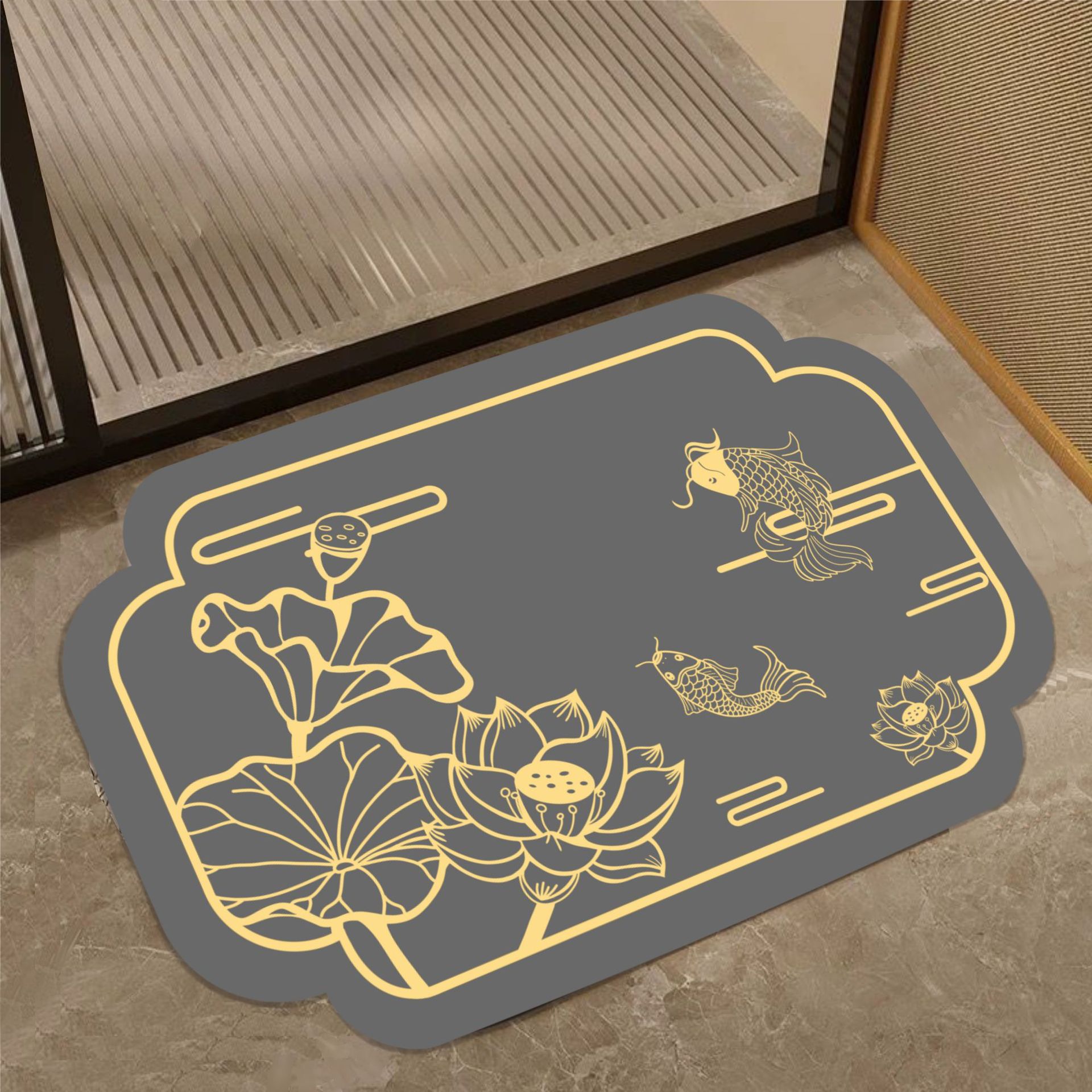 깨끗한 더러운 연꽃 잉어 화장실 문 매트 욕실 흡수성 미끄럼 방지 발 매트 더러운 부분 다이아몬드 진흙 매트