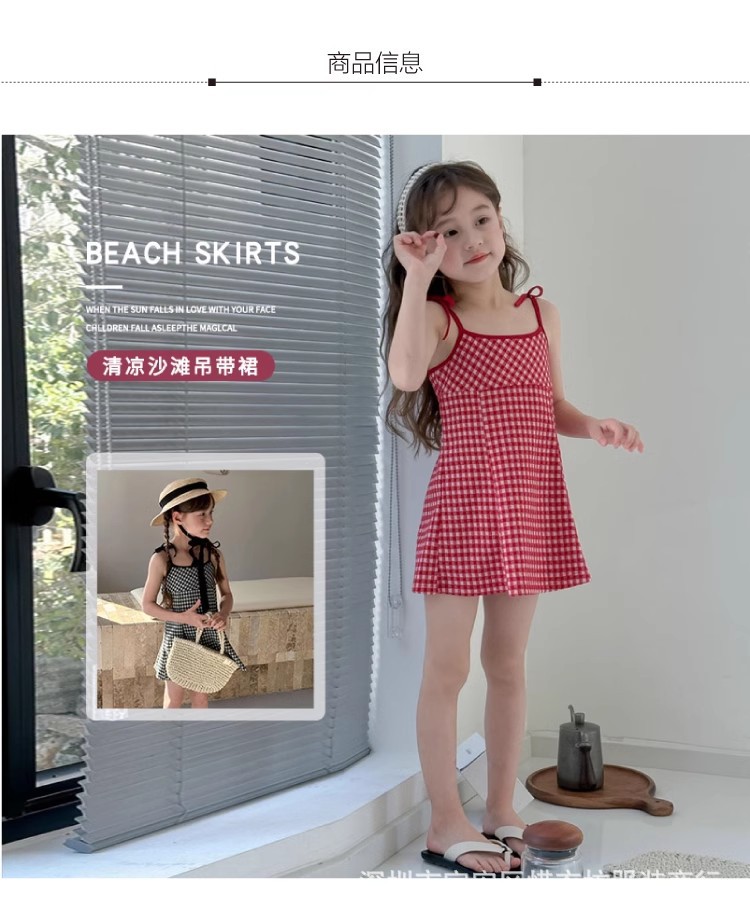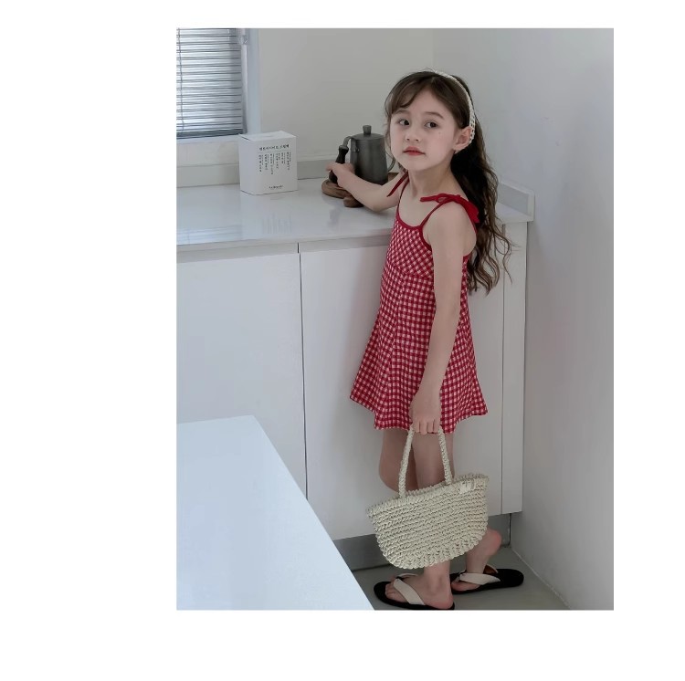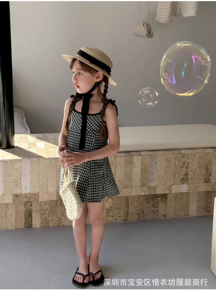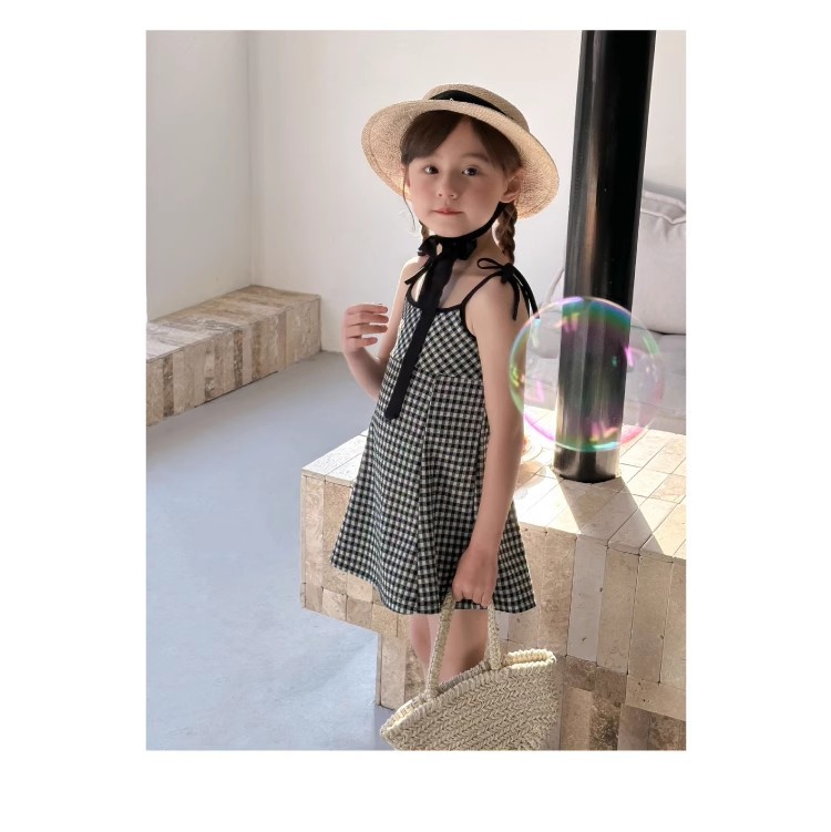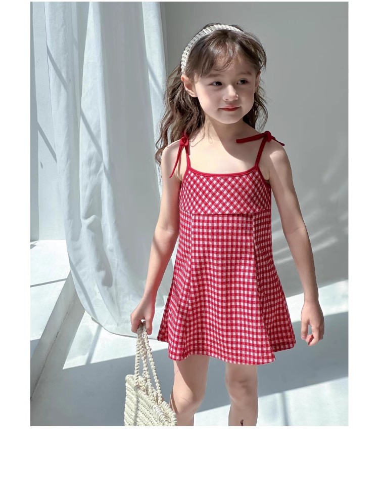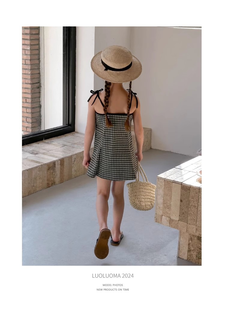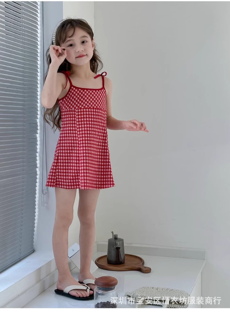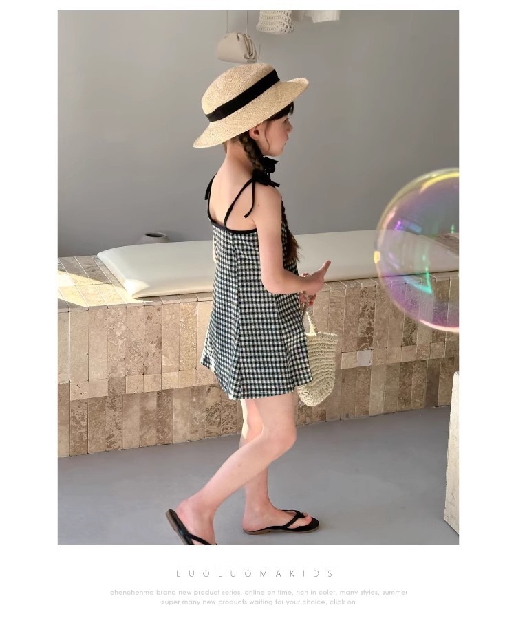 소녀 원피스 여름 새로운 격자 무늬 테더 슬립 스커트 어린이 여름 아동복 홀리데이 스타일 여자 치마스토어 가기