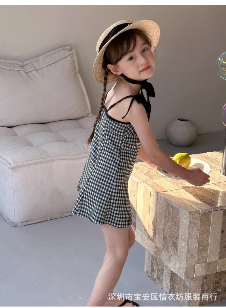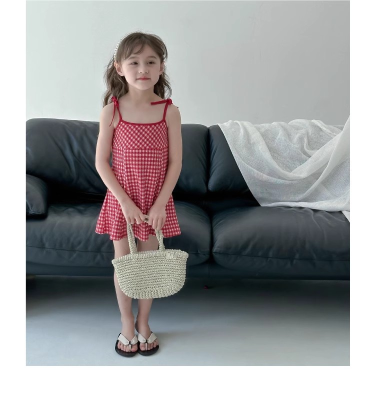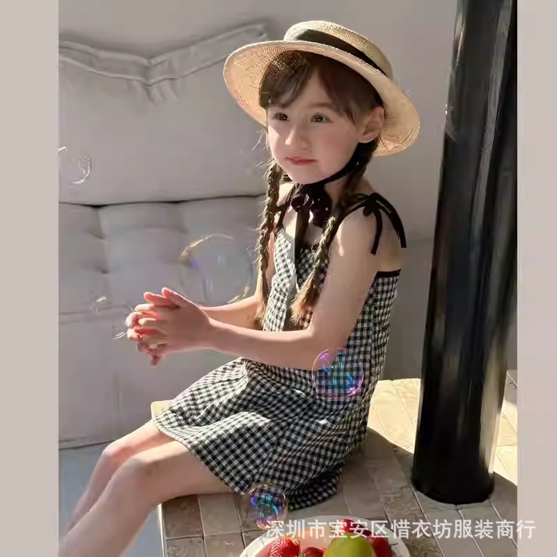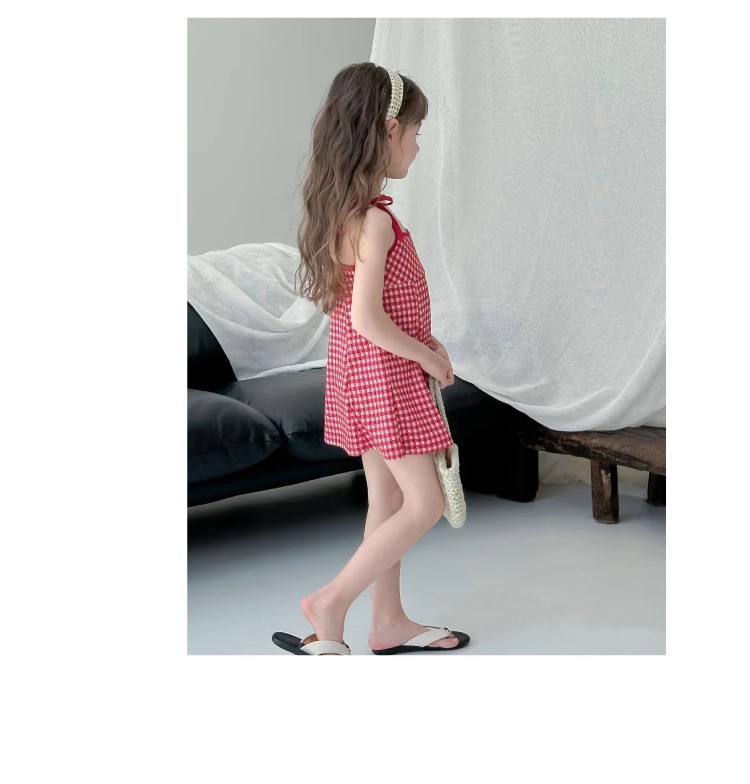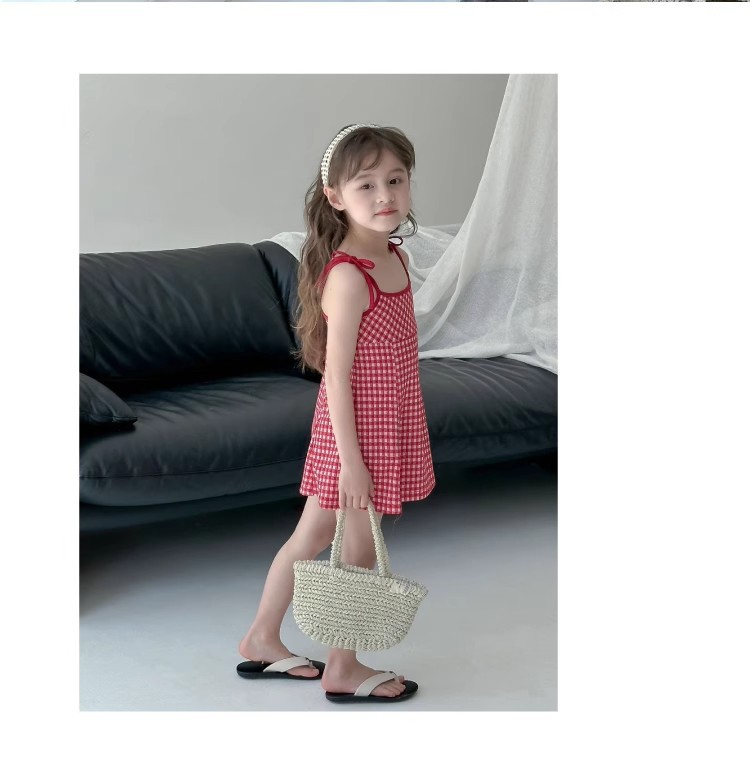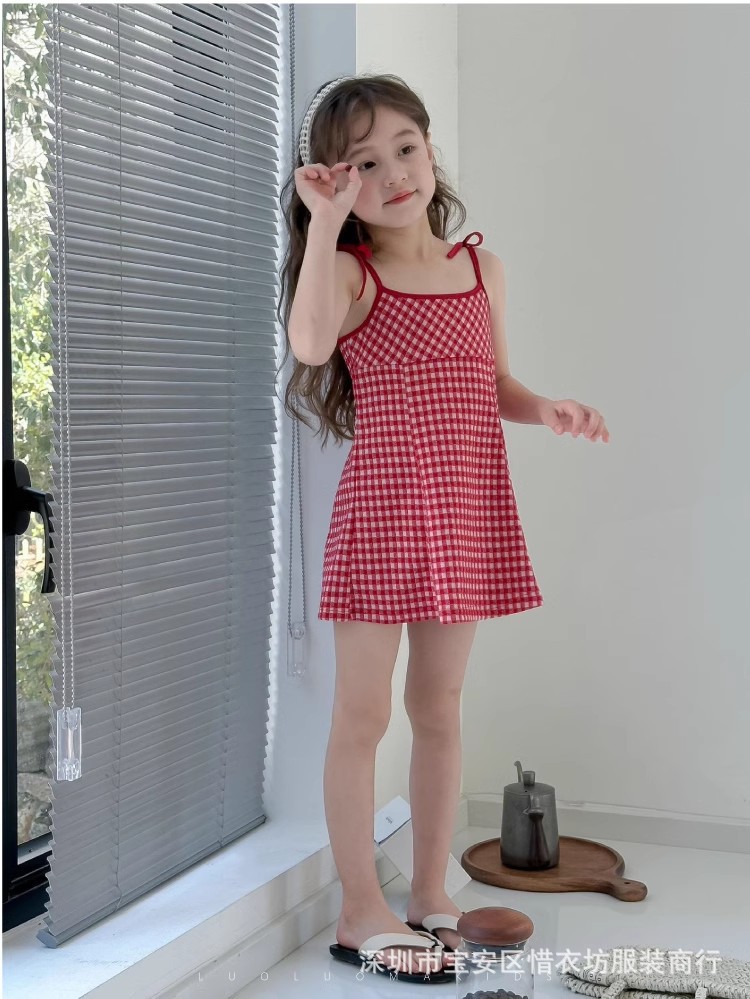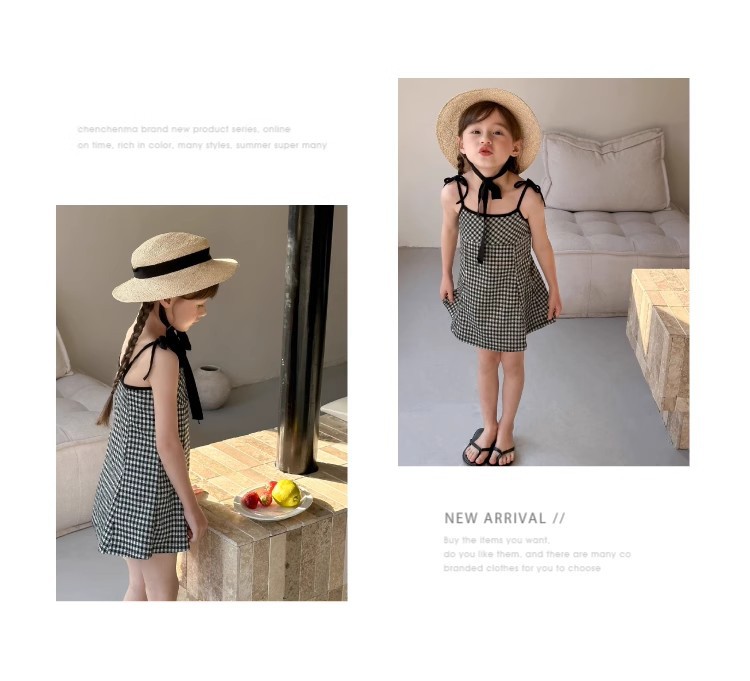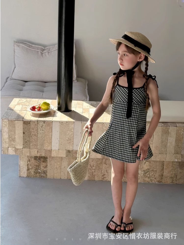 소녀 원피스 여름 새로운 격자 무늬 테더 슬립 스커트 어린이 여름 아동복 홀리데이 스타일 여자 치마스토어 가기