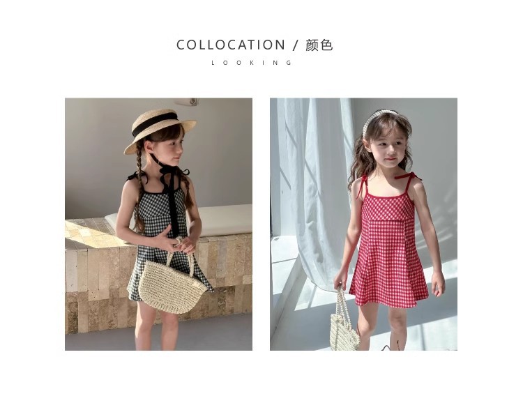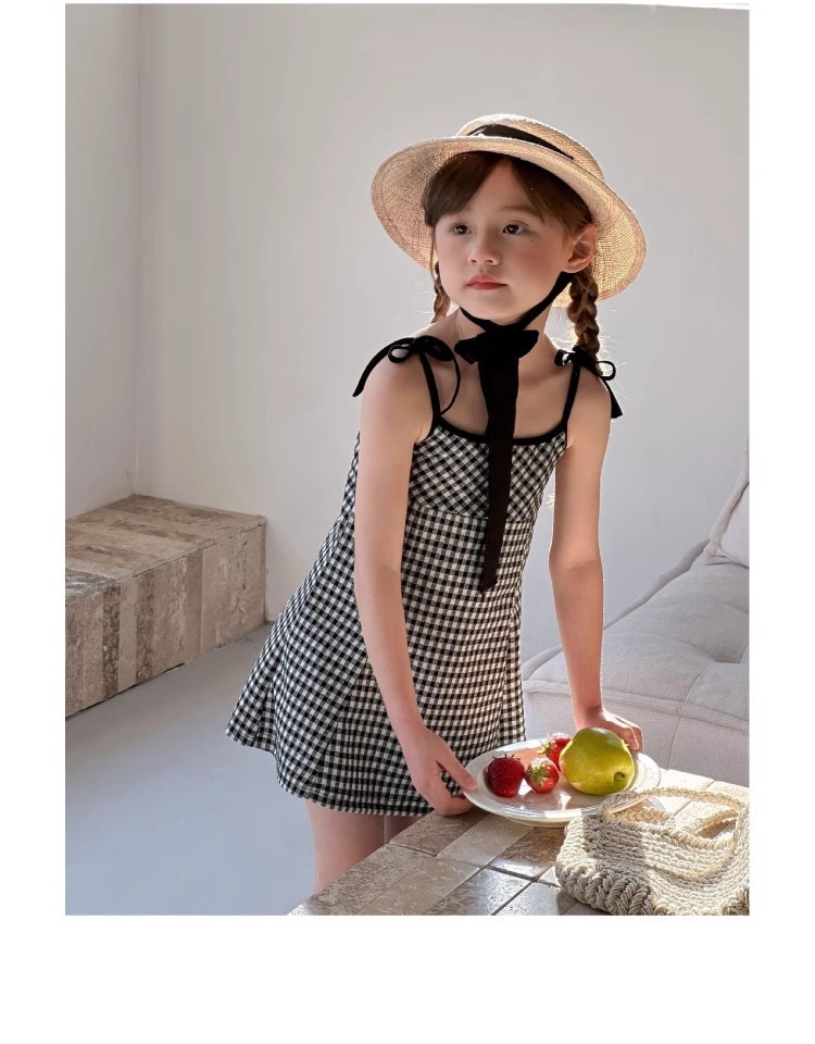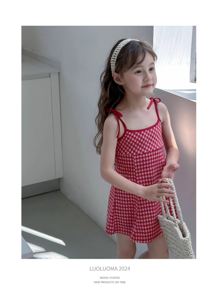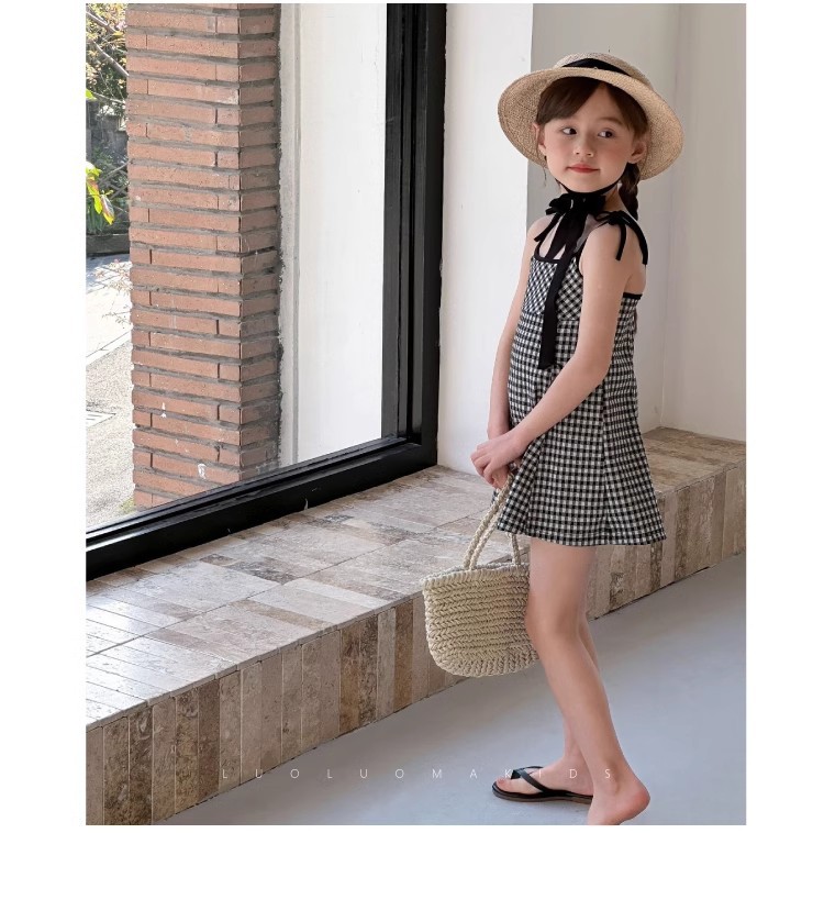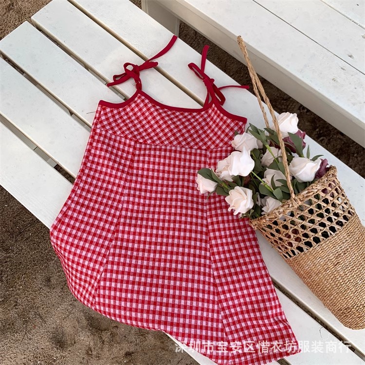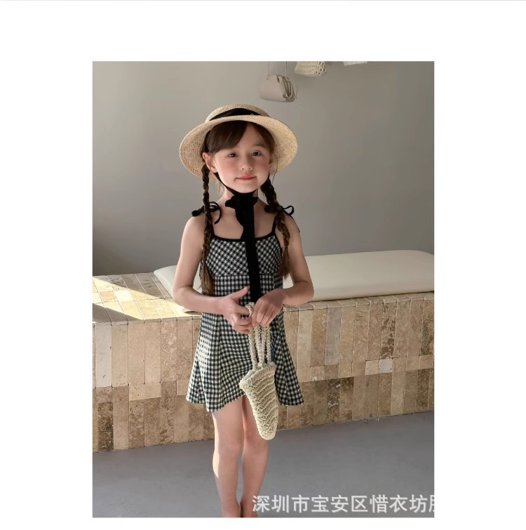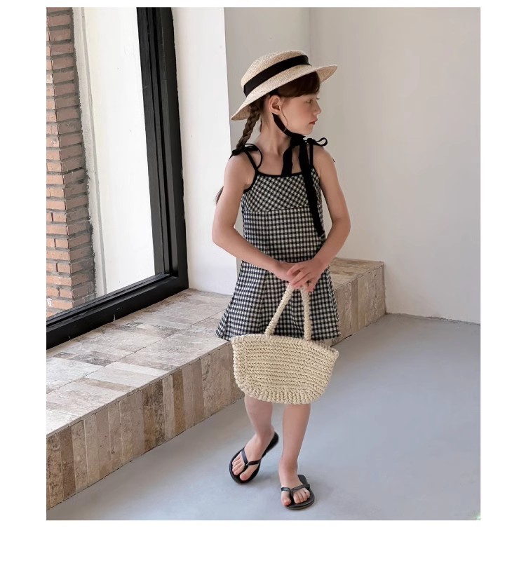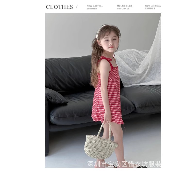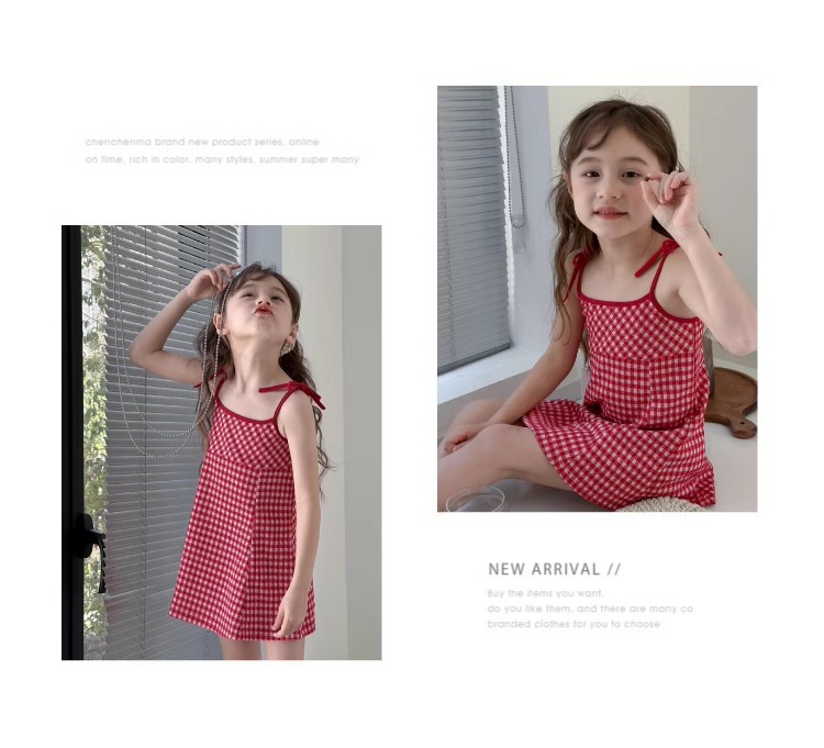 소녀 원피스 여름 새로운 격자 무늬 테더 슬립 스커트 어린이 여름 아동복 홀리데이 스타일 여자 치마스토어 가기