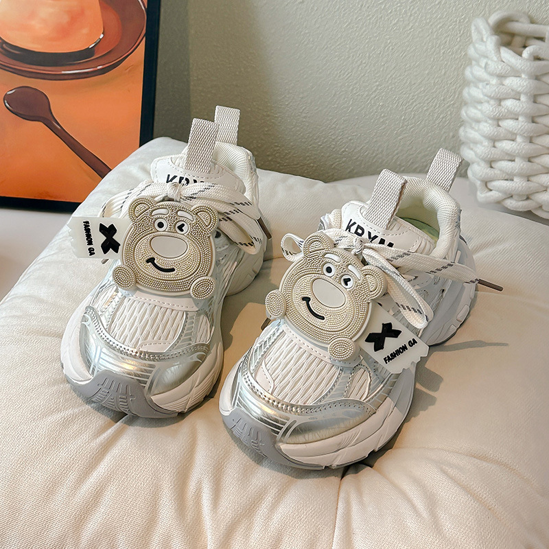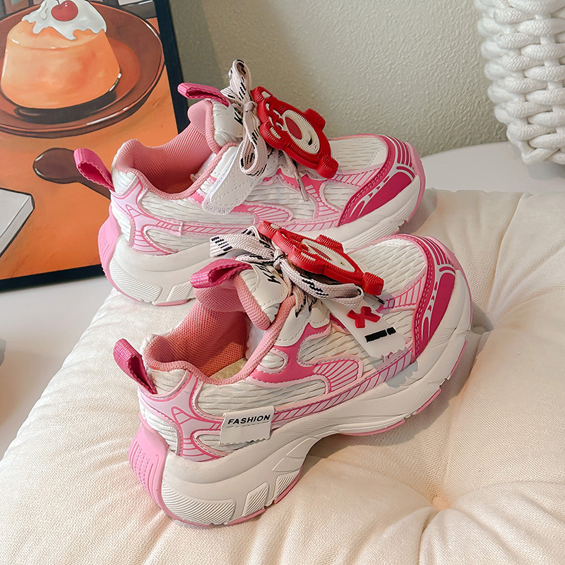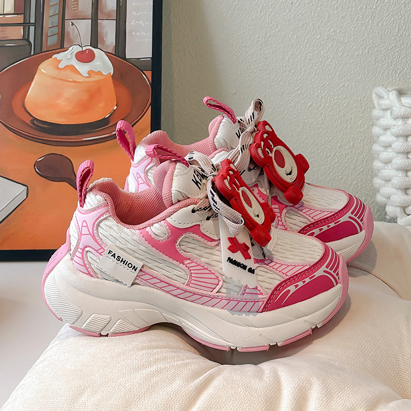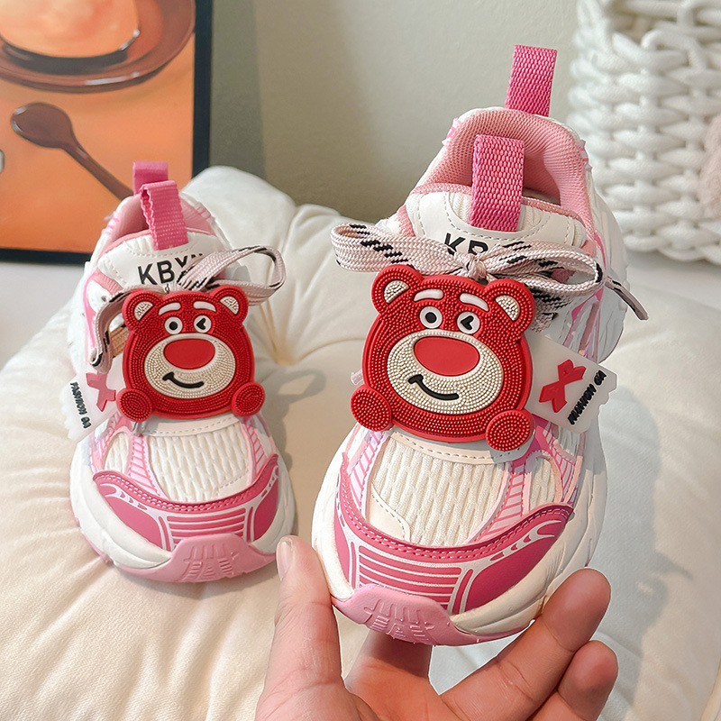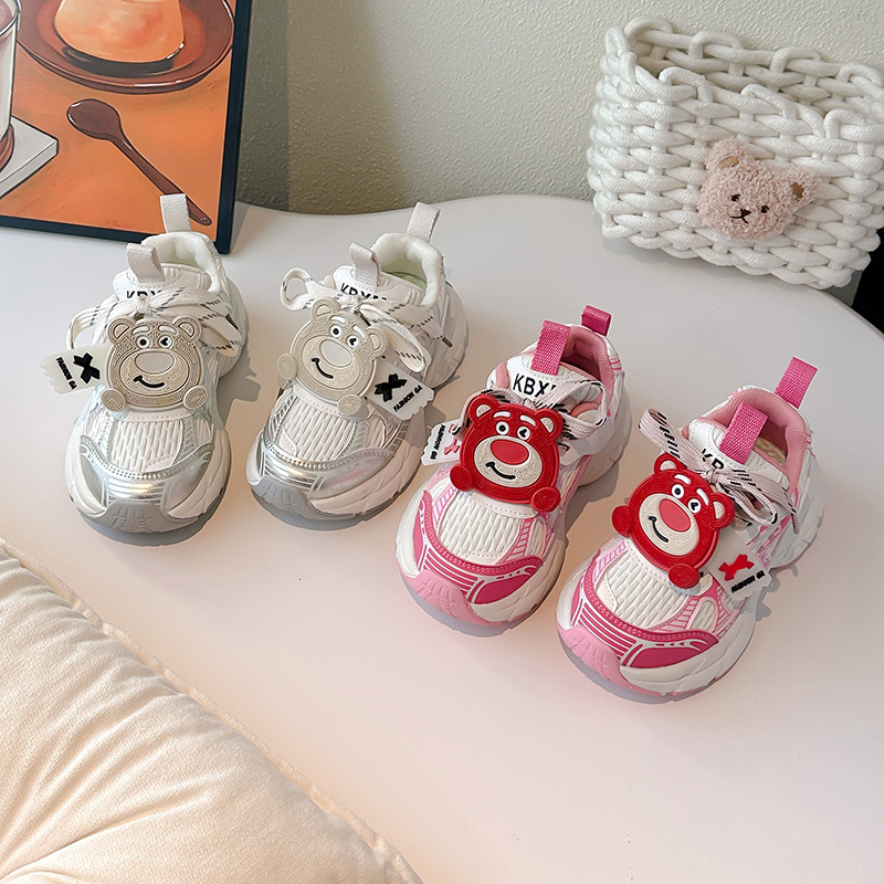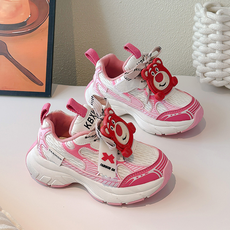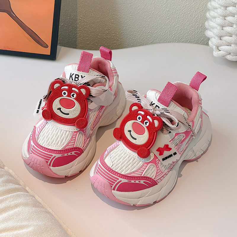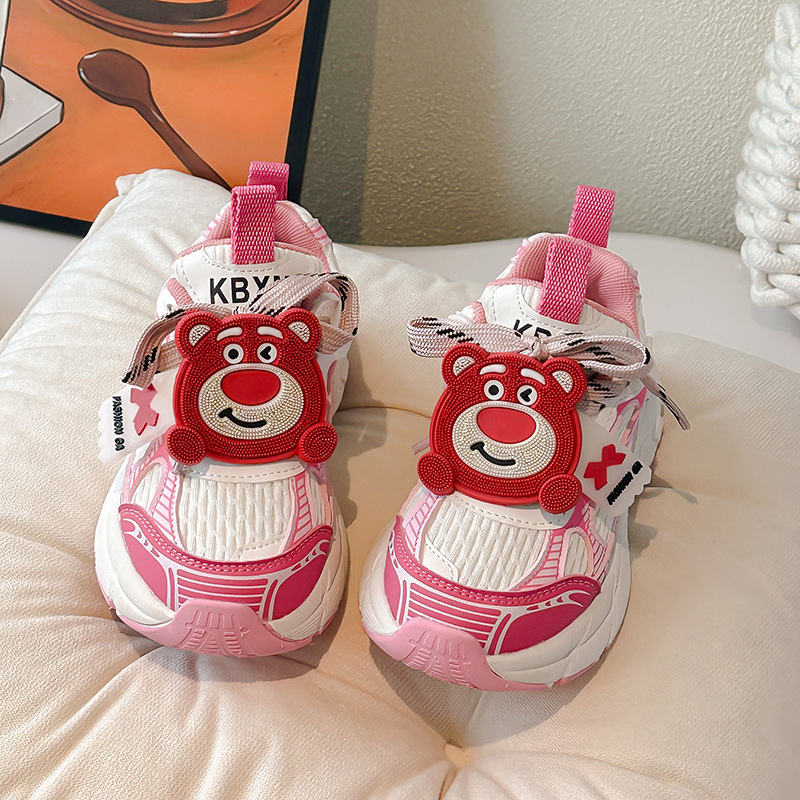 2025 가을 신상 여아 운동화 아빠 신발 딸기곰 중대형 아동 한국 스타일 학생 신발 미끄럼 방지 내구성 밑창