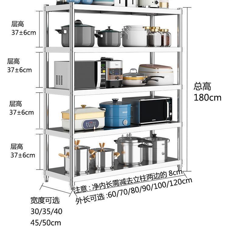 스테인레스 스틸 선반 스토리지 랙 상업용 주방 다층 바닥 랙 스토리지 선반 다기능 스토리지 랙스토어 가기