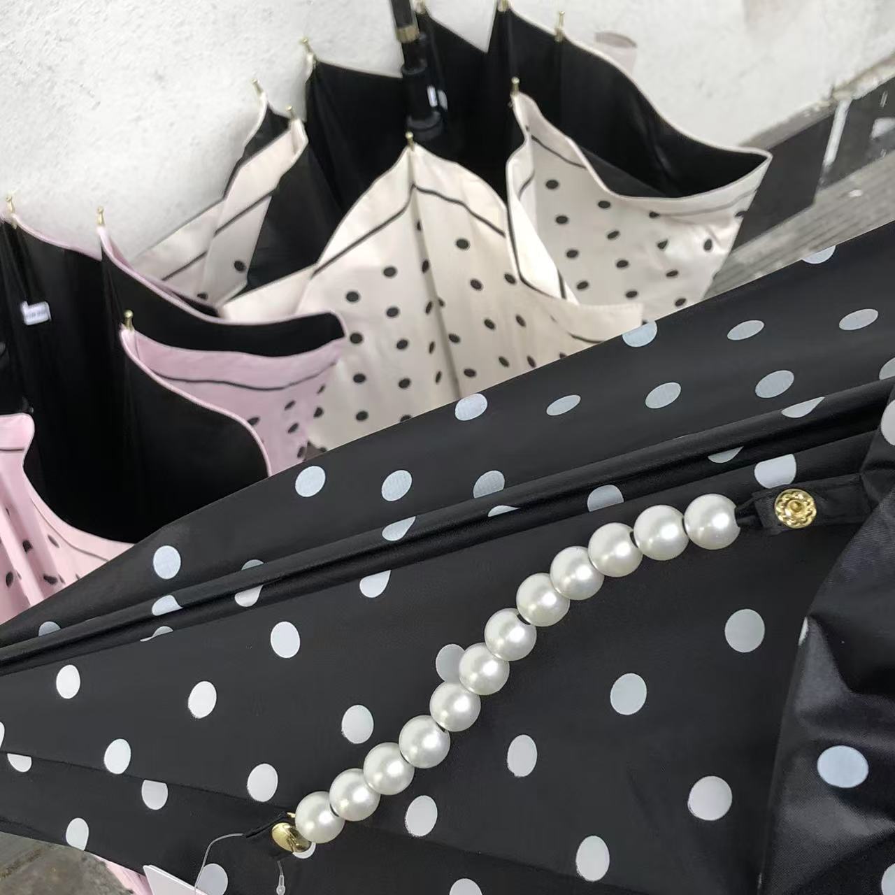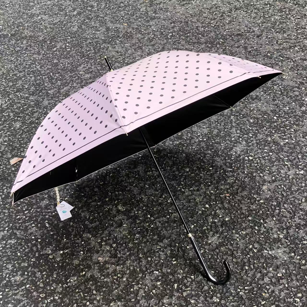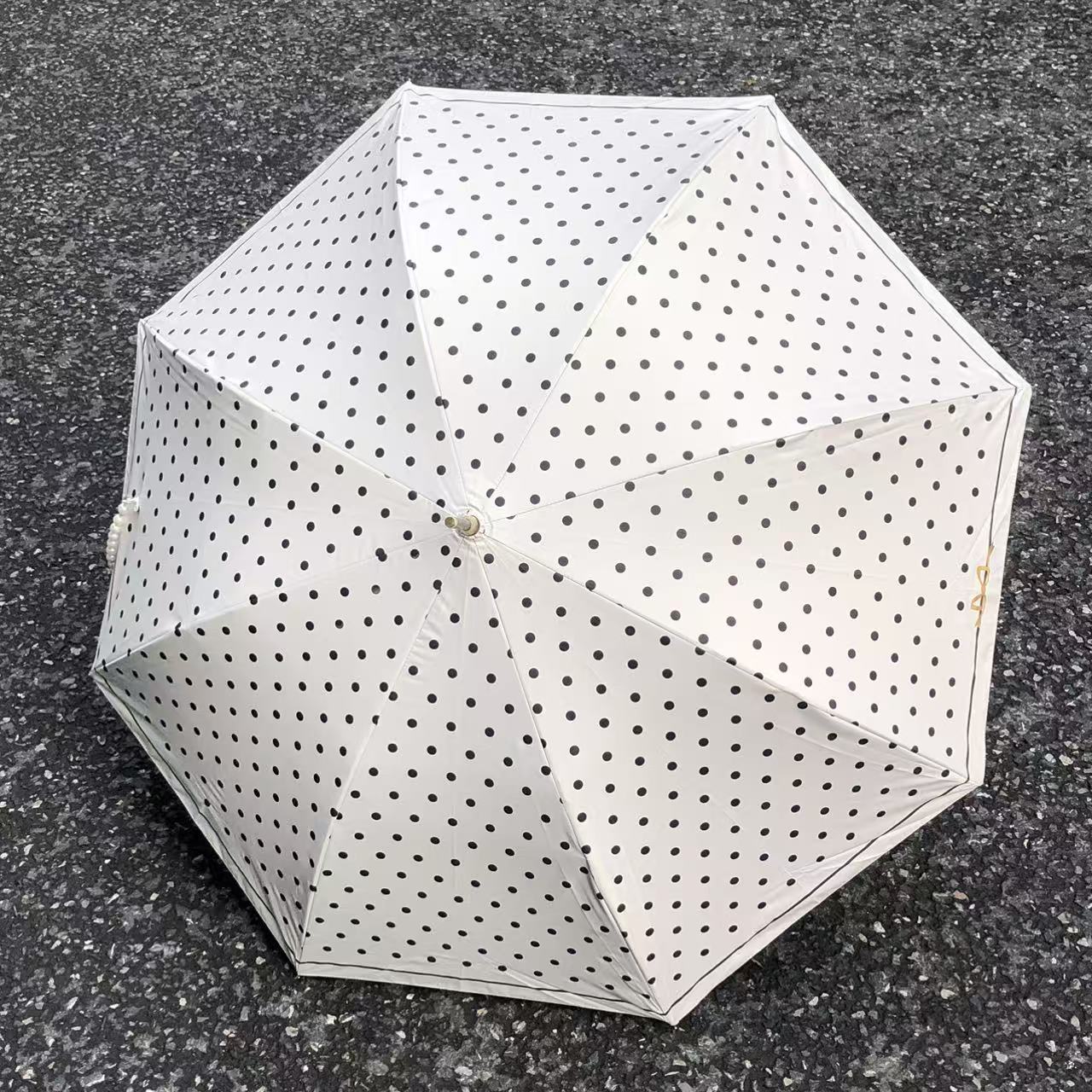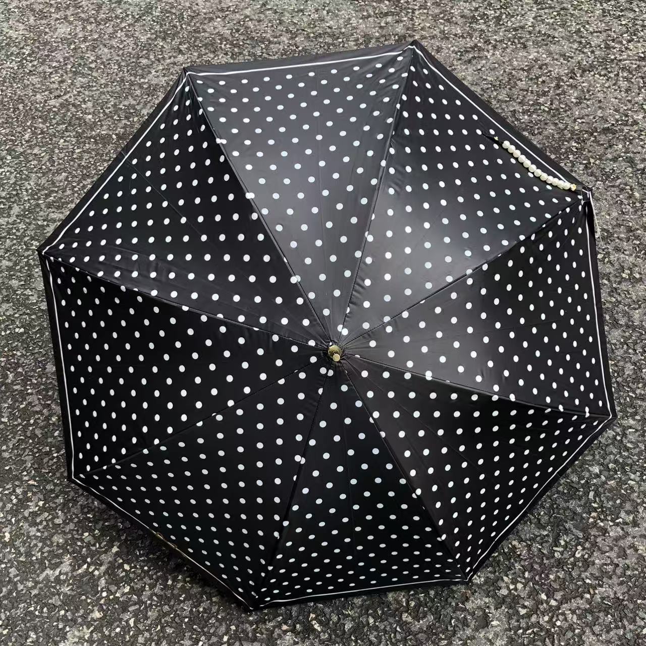 작은 신선한 복고풍 둥근 물방울 무늬 자동 긴 손잡이 직선 우산 한국 스타일 접는 우산 비 또는 빛 양산 우산스토어 가기