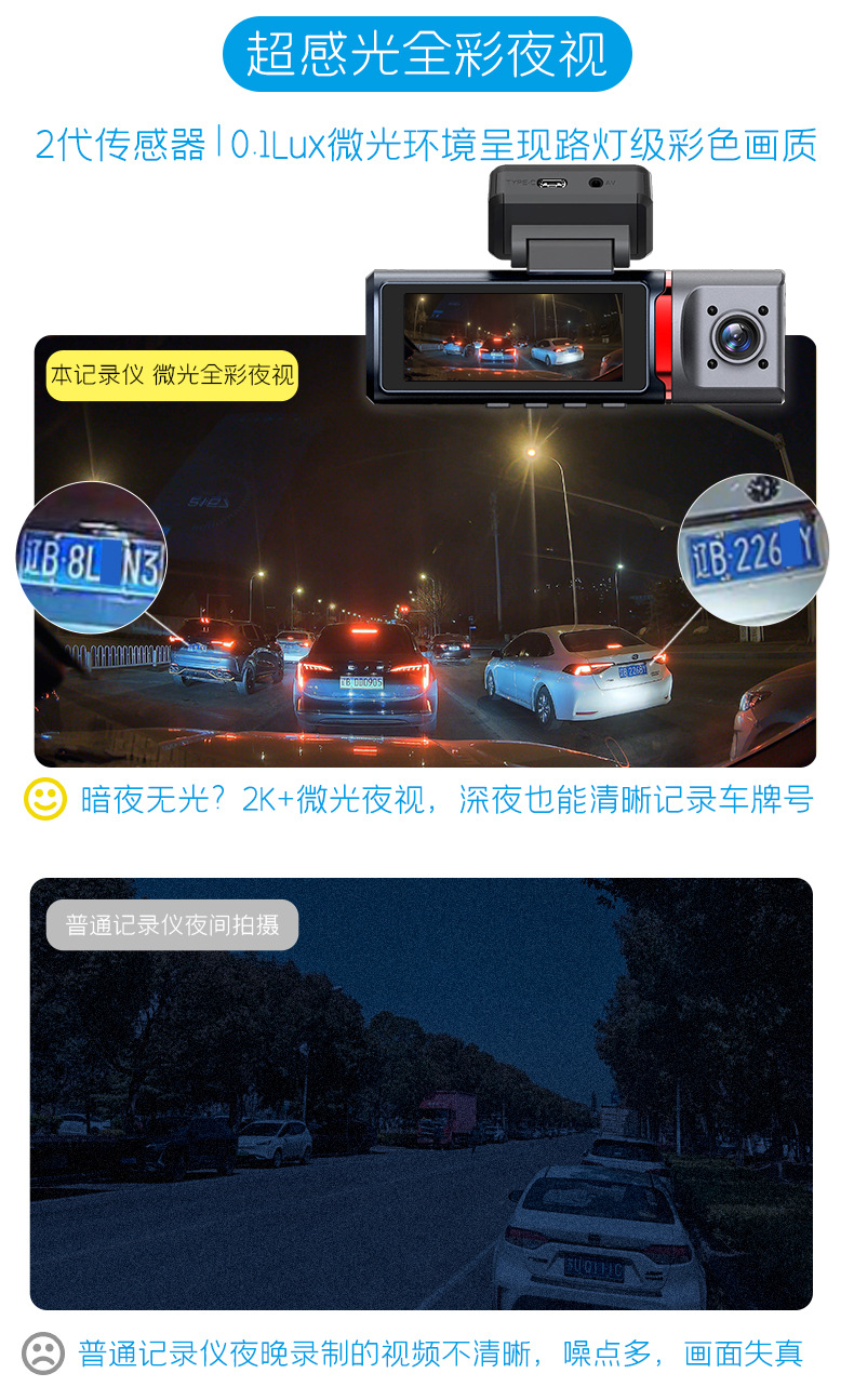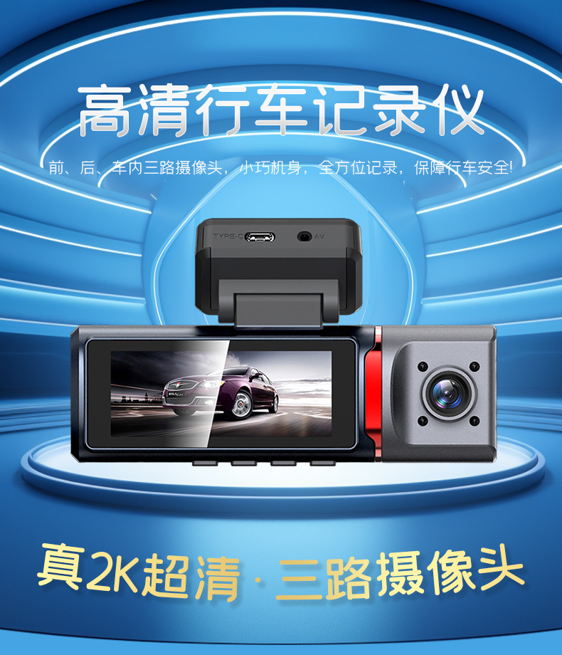 국경 간 새로운 3.16 인치 하이 엔드 주행 레코더 HD 나이트 비전 2K 3 방향 주행 레코더 WIFI GPS