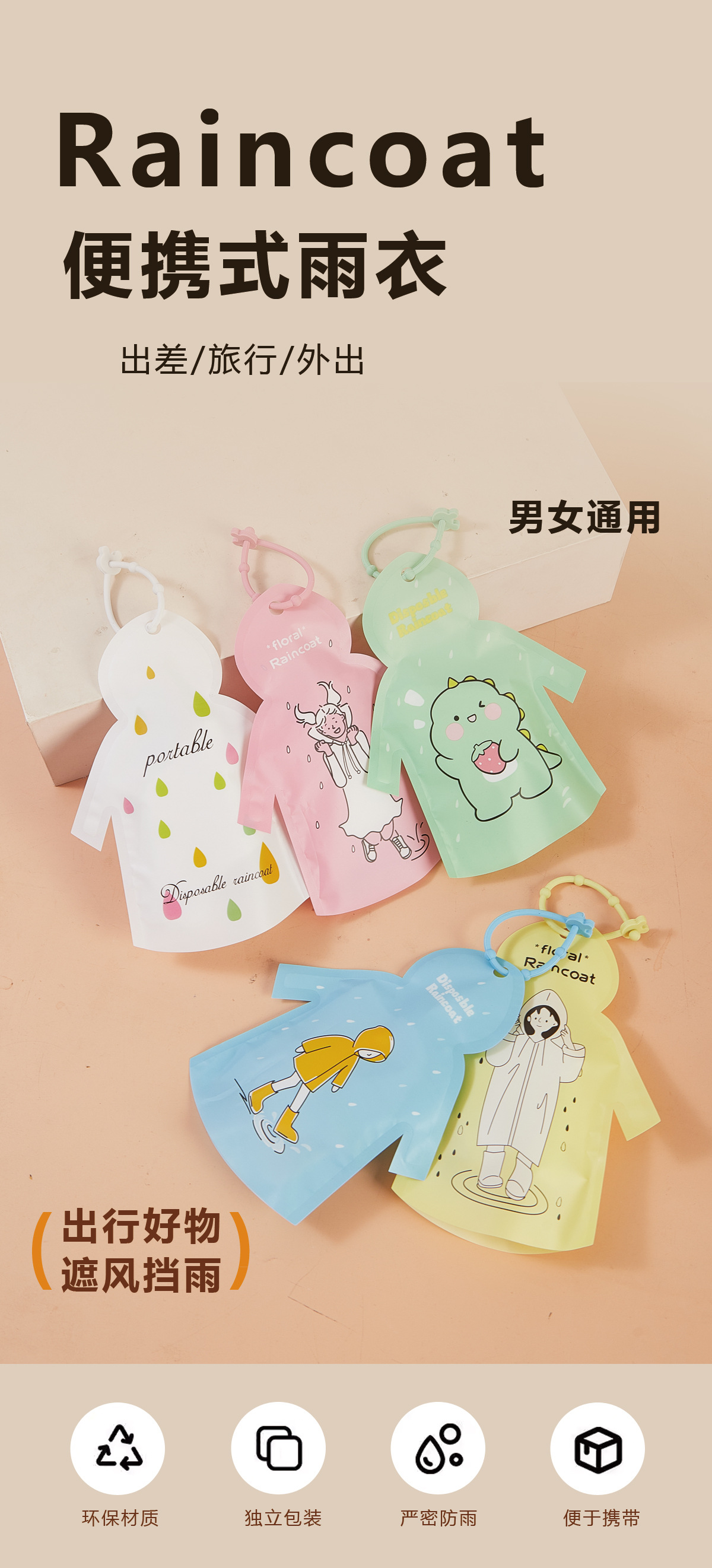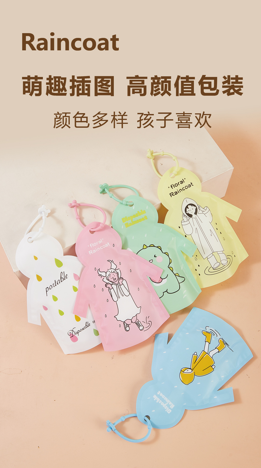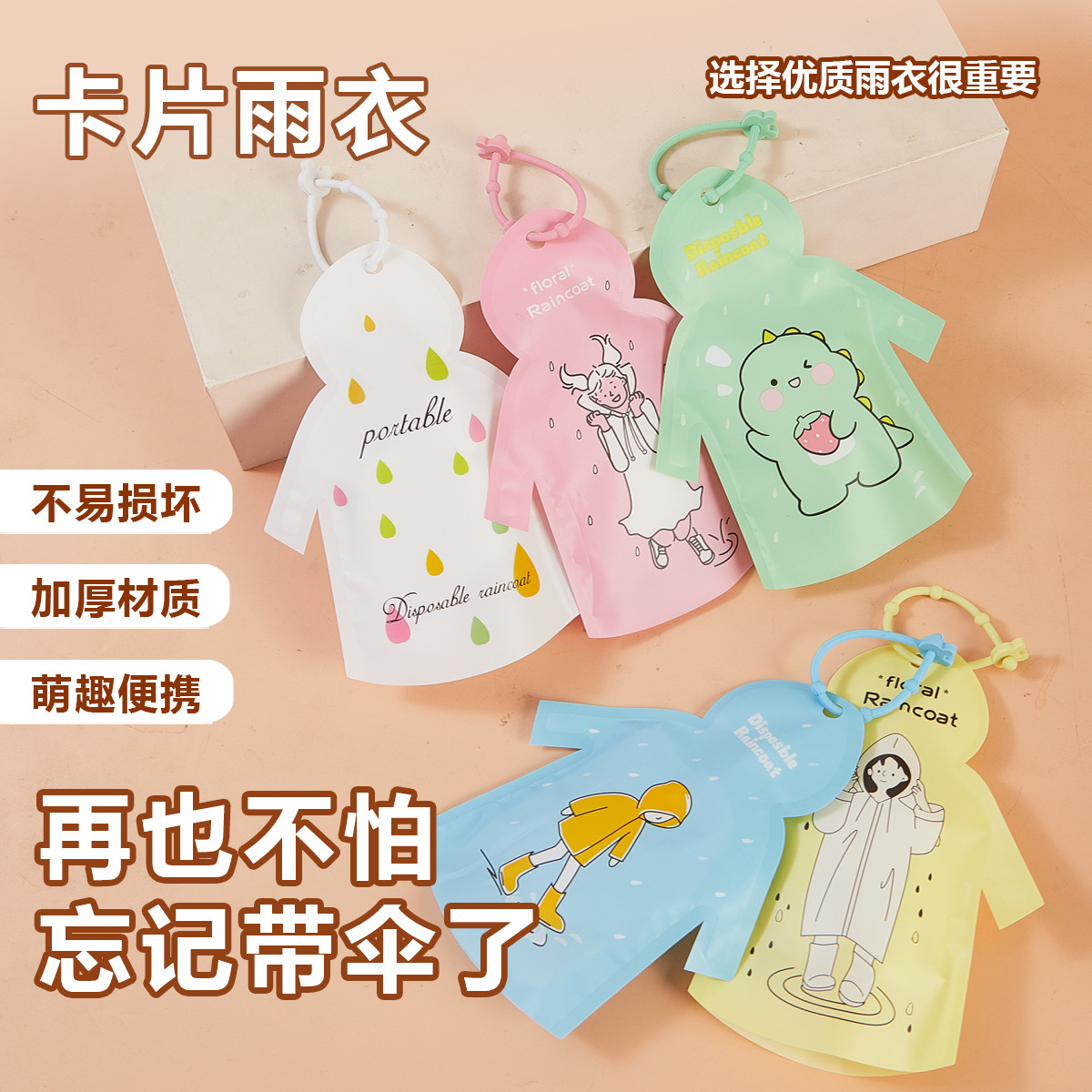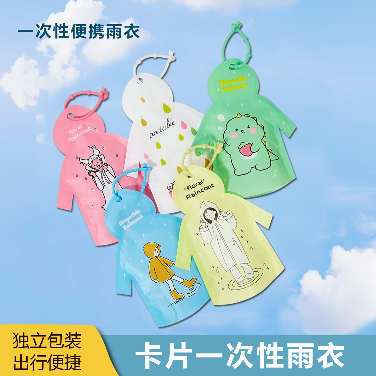 일회용 비옷 만화 어린이 성인 유니섹스 두꺼운 비옷 휴대용 야외 판초 카드 비옷