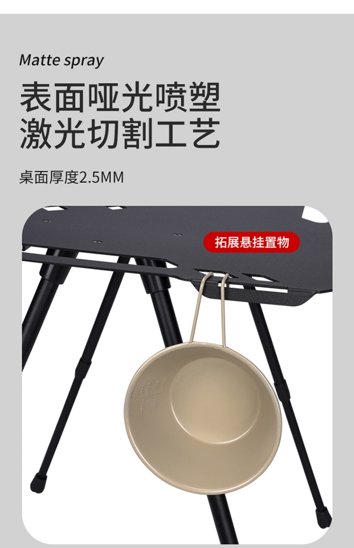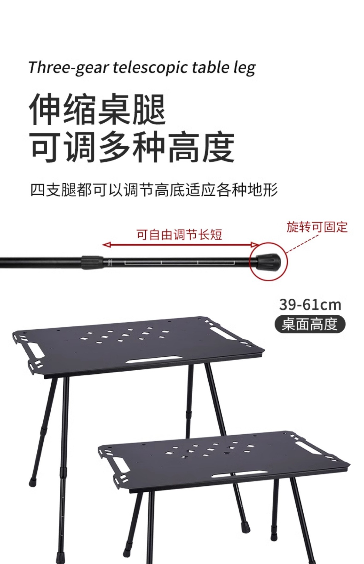 • _블랙 테이블, 다리 분리형 테이블, 높이 조절 가능(39-59CM), 약 2KG, 알루미늄 합금 내하중 30KG