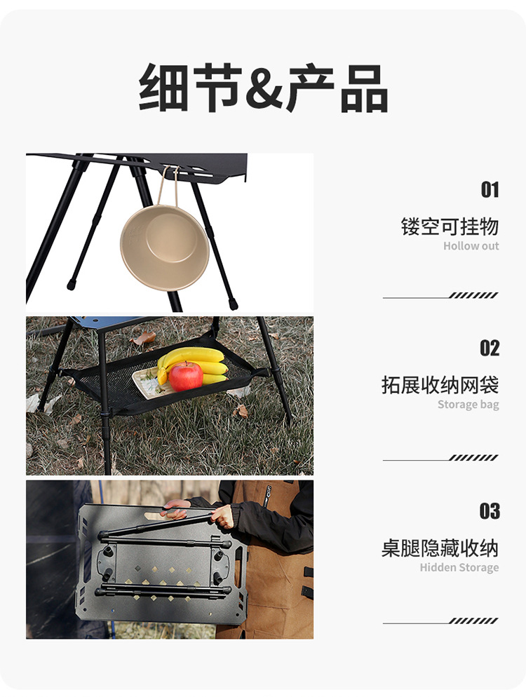야외 피크닉 접이식 IGT 테이블 전술 테이블 리프팅 경량 캠핑 휴대용 접합 캠핑 알루미늄 합금