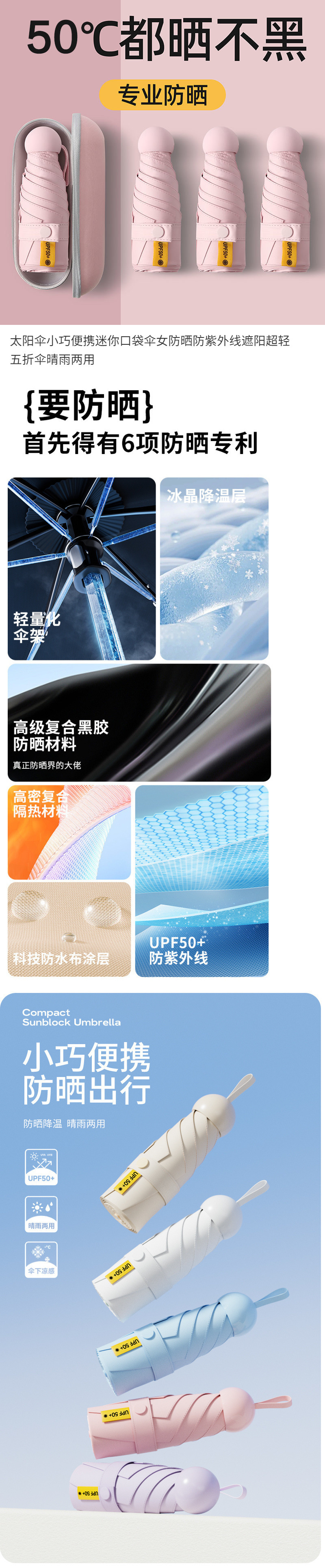 캡슐 초소형 태양 우산 태양 보호 UV 차양 우산 이중 목적 여성 미니 접이식 소형 휴대용 도매