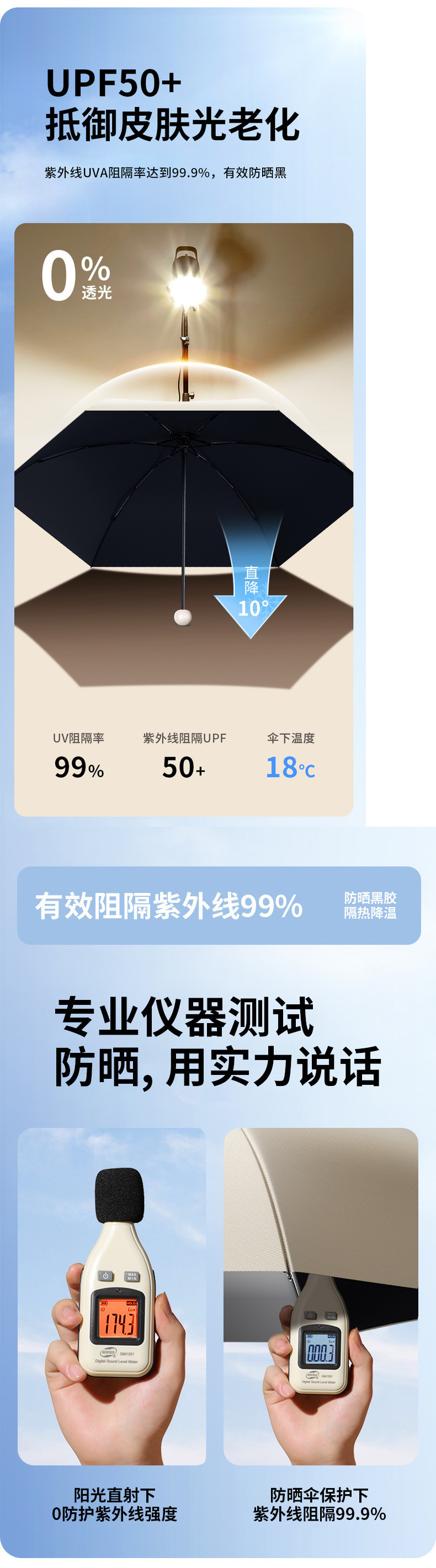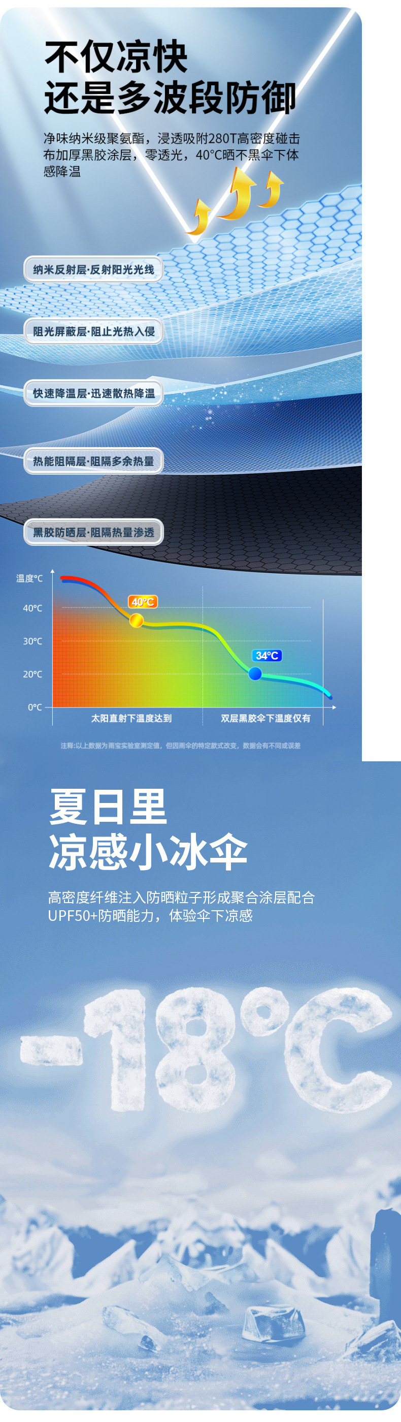 • [고효율 보온 쿨링/자외선 차단 우산] 하늘색 - 무료 우산 커버