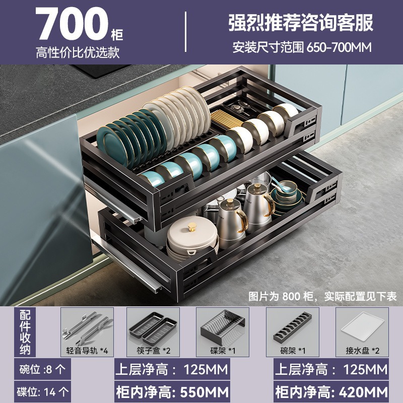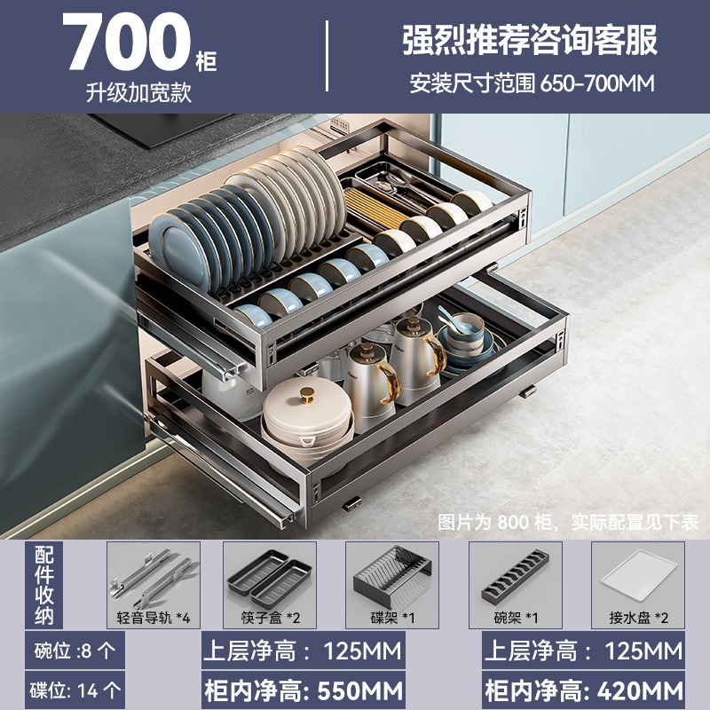 • 스타리 스카이 그레이 [공간 업그레이드] 700 캐비닛 더블 레이어 - 두꺼워진 저소음 댐핑 가이드 레일
