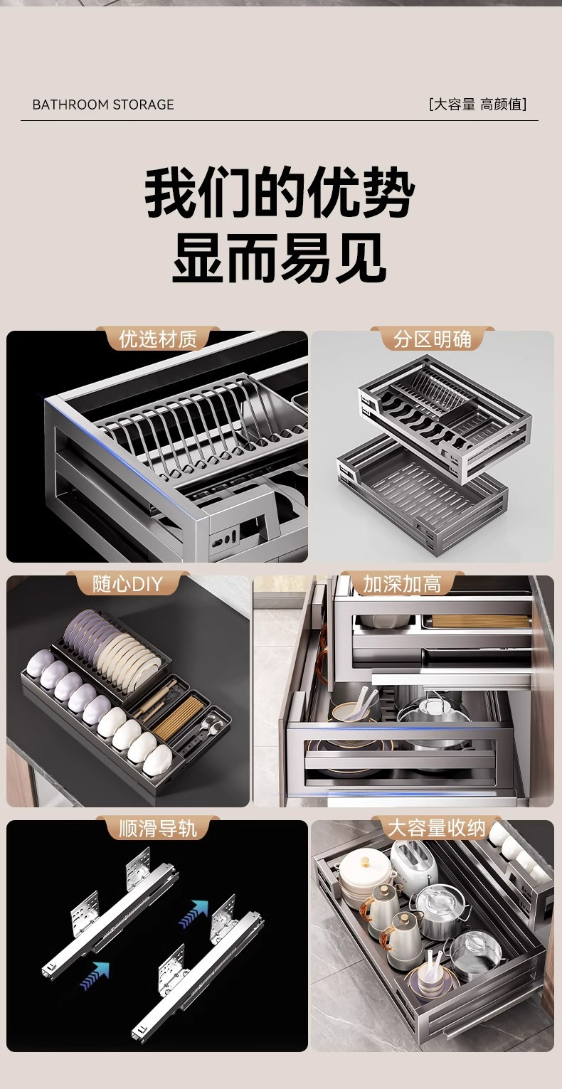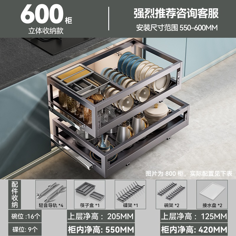 • Starry Sky Grey [공간 업그레이드] 600 캐비닛 더블 레이어 - 두꺼워진 저소음 댐핑 가이드 레일