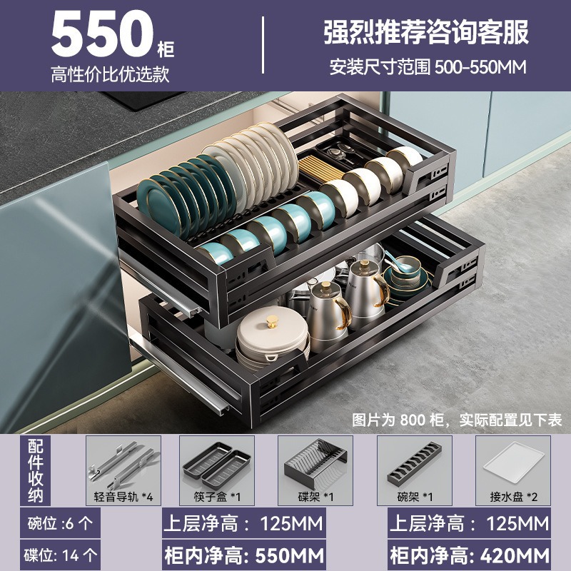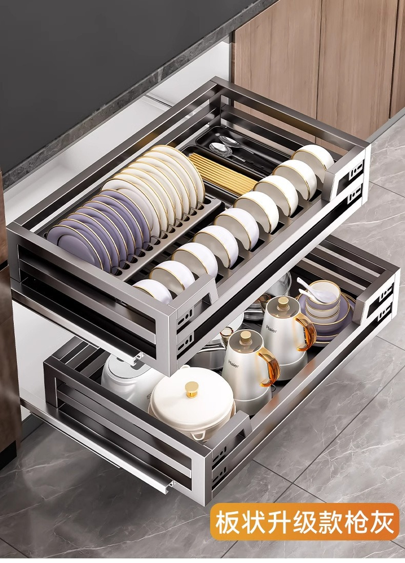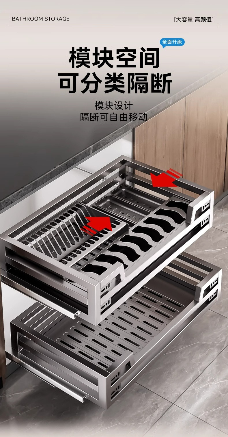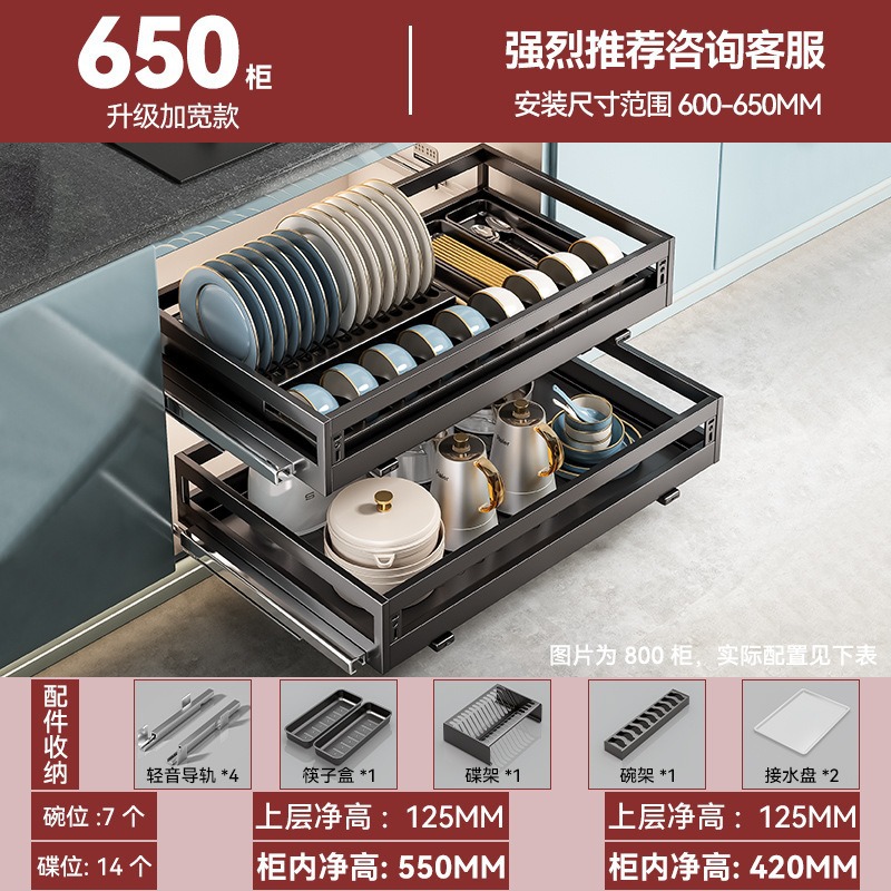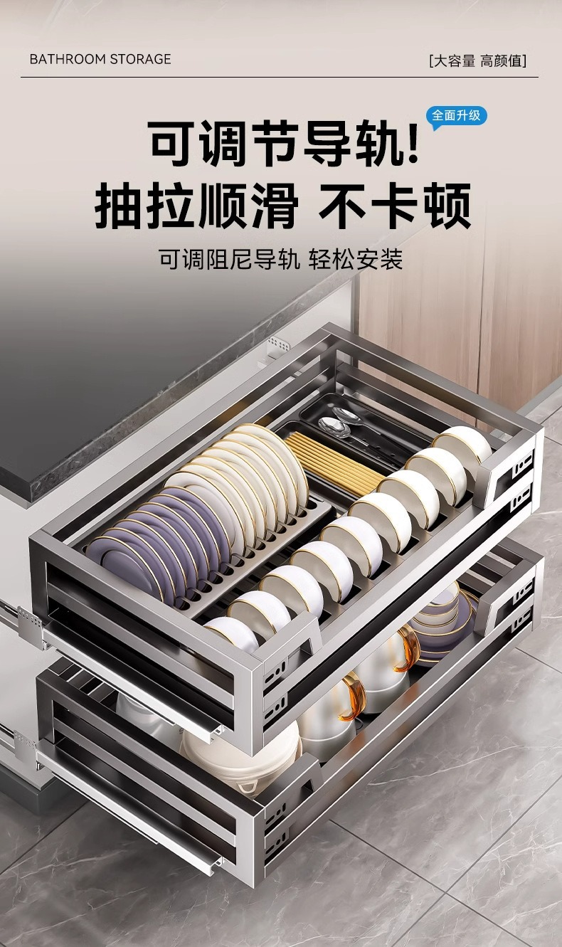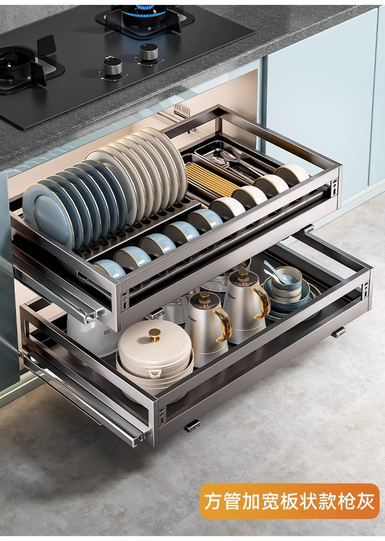 주방 접시 바구니 나노 블랙 304 스테인레스 스틸 댐핑 버퍼 캐비닛 서랍 형 접시 랙 더블 레이어 바구니스토어 가기