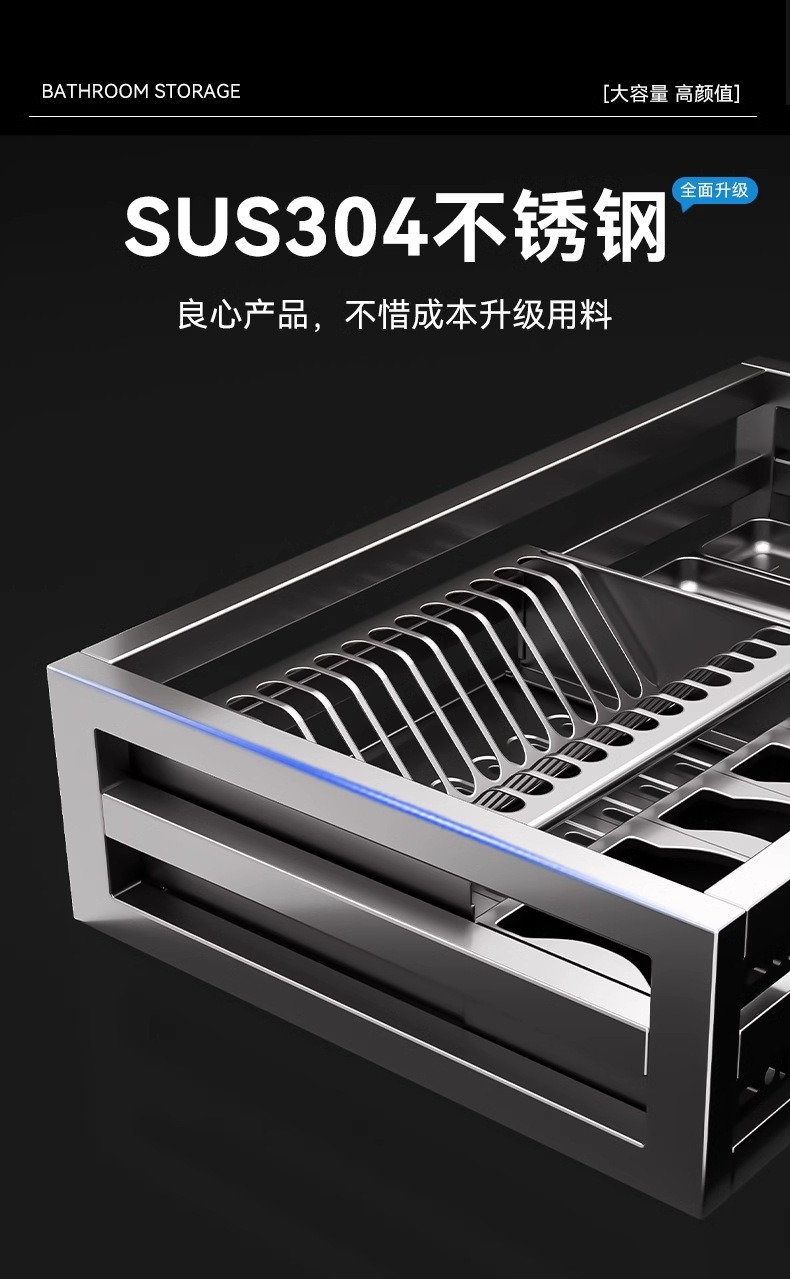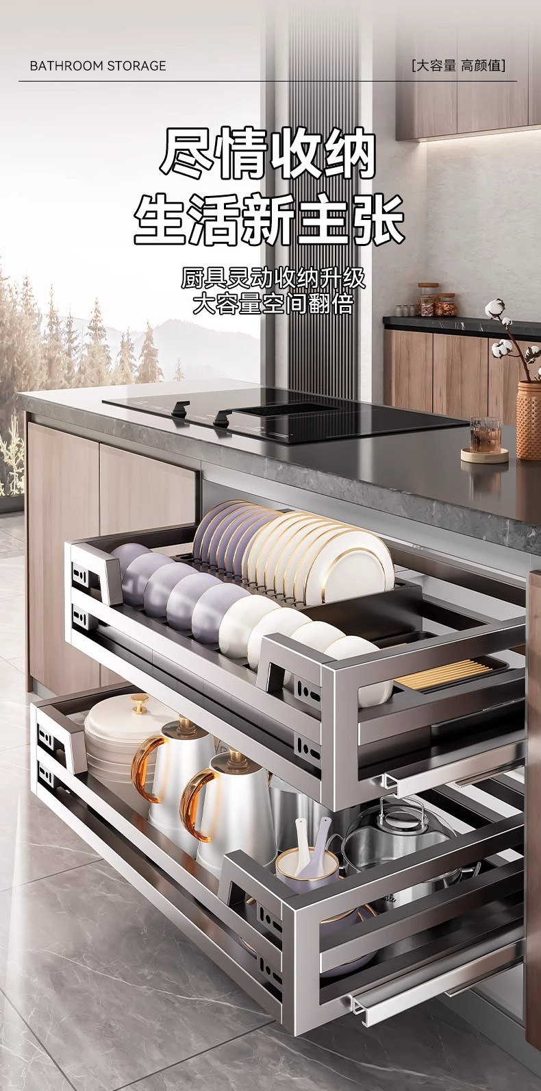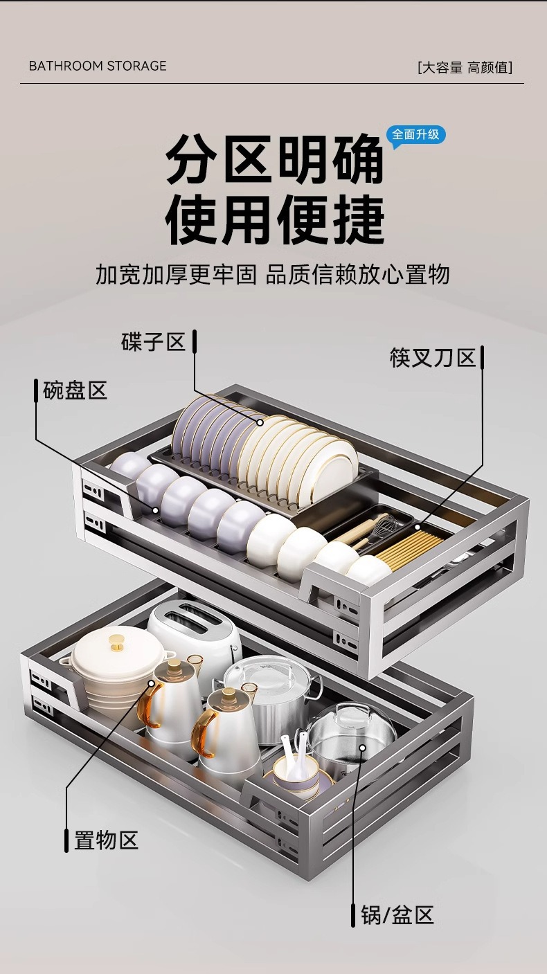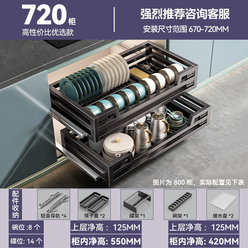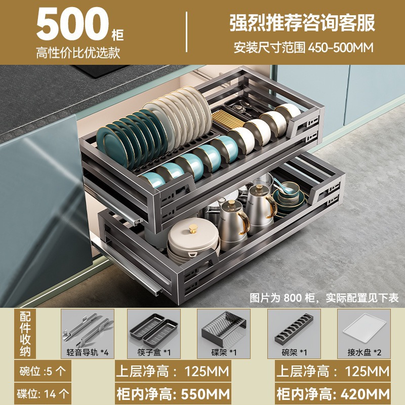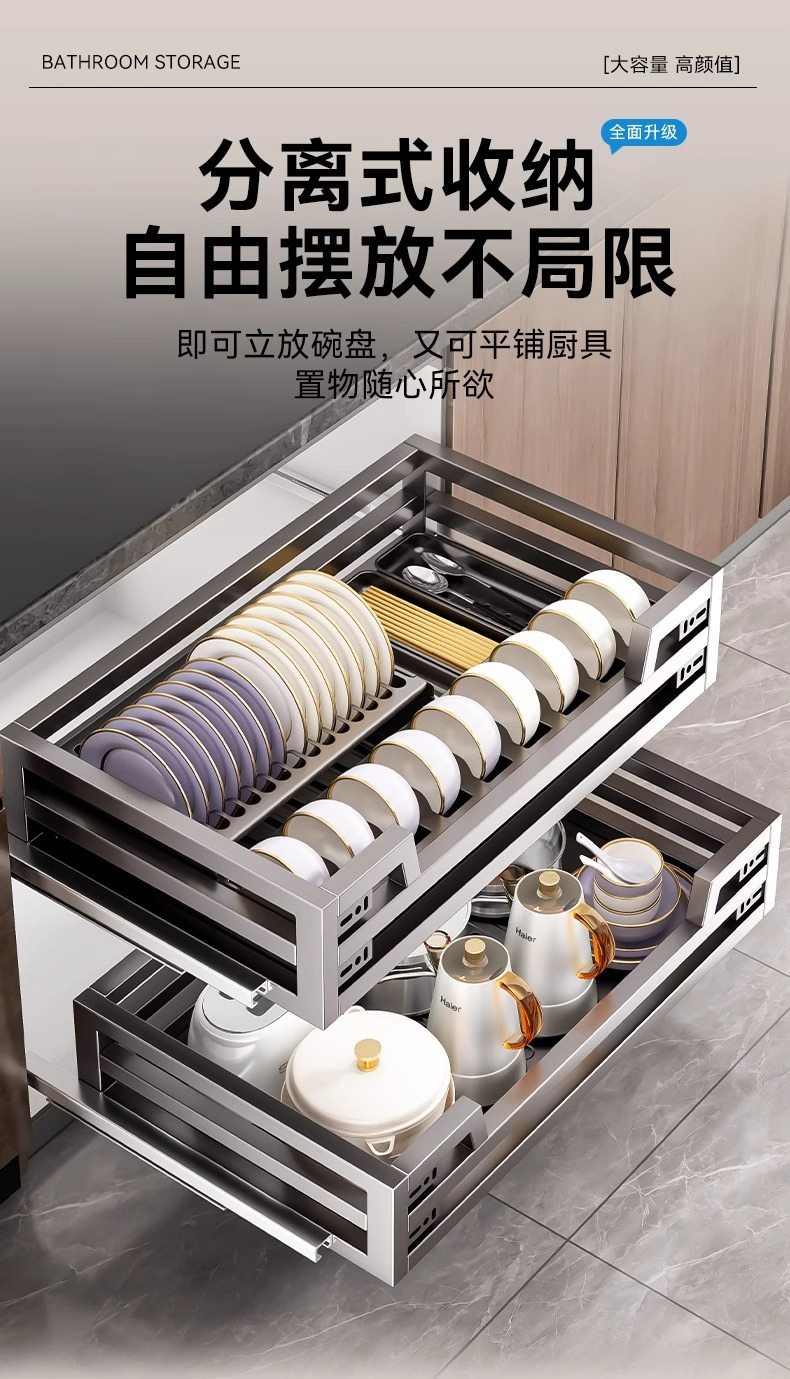 주방 접시 바구니 나노 블랙 304 스테인레스 스틸 댐핑 버퍼 캐비닛 서랍 형 접시 랙 더블 레이어 바구니스토어 가기