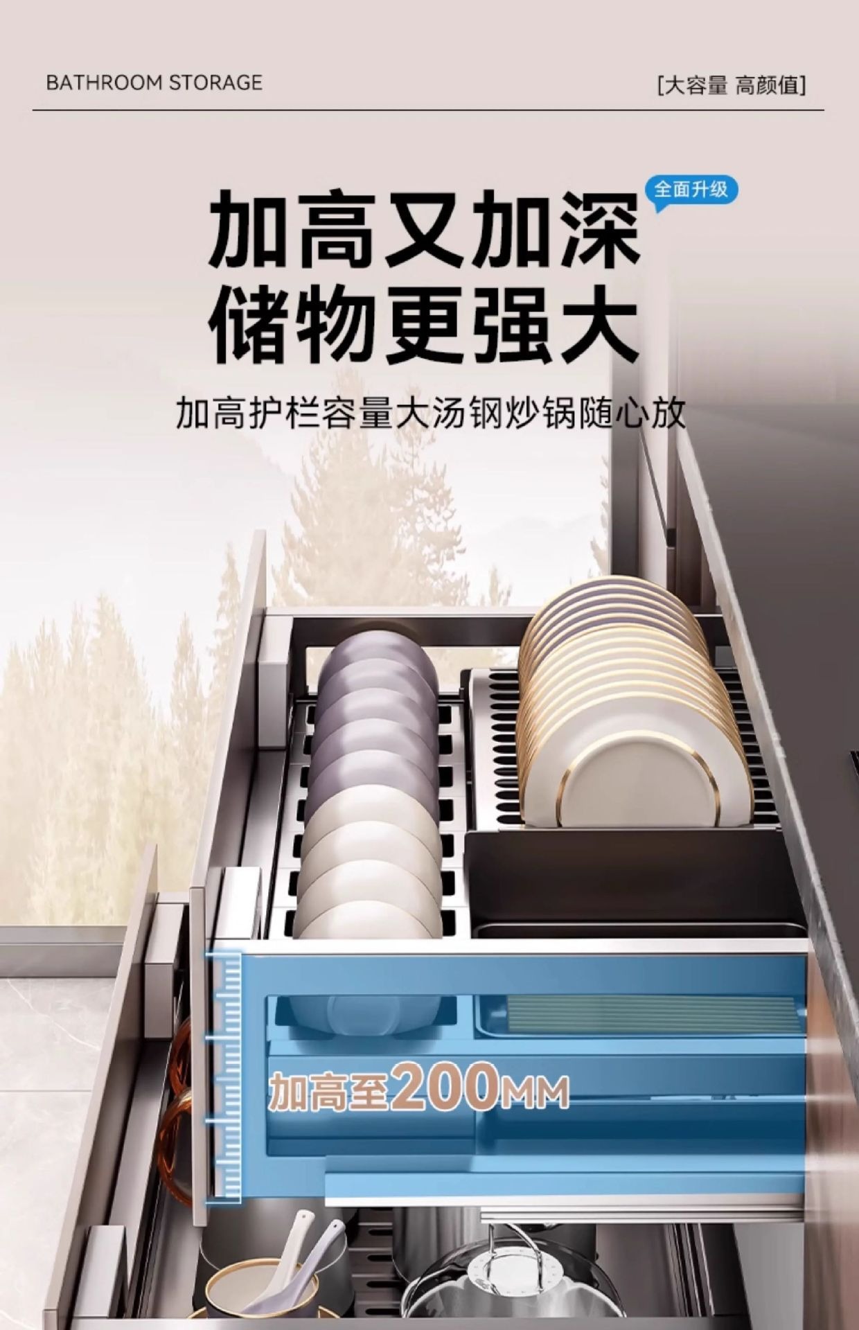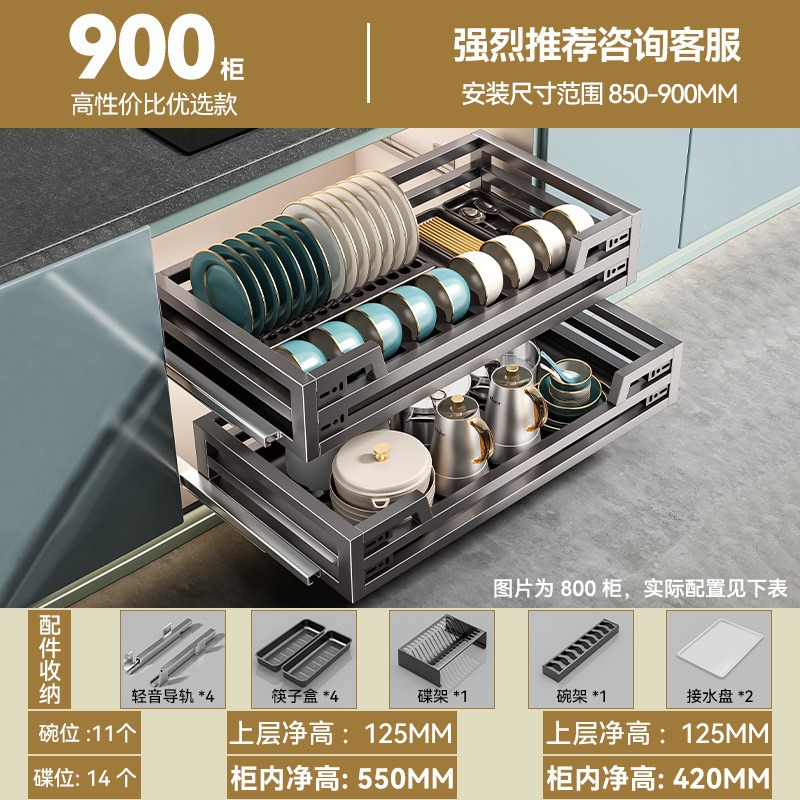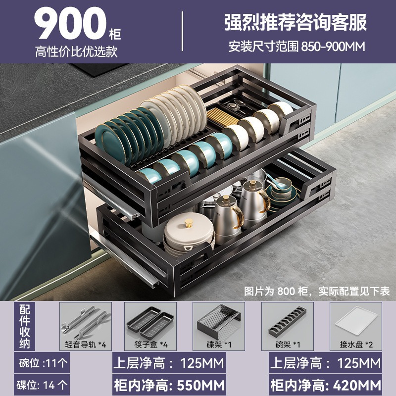• Starry Sky Grey [공간 업그레이드] 900 캐비닛 더블 레이어 - 두꺼워진 저소음 댐핑 가이드 레일