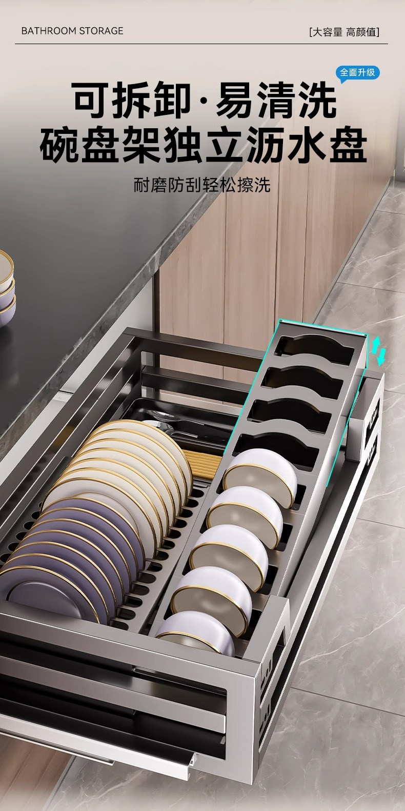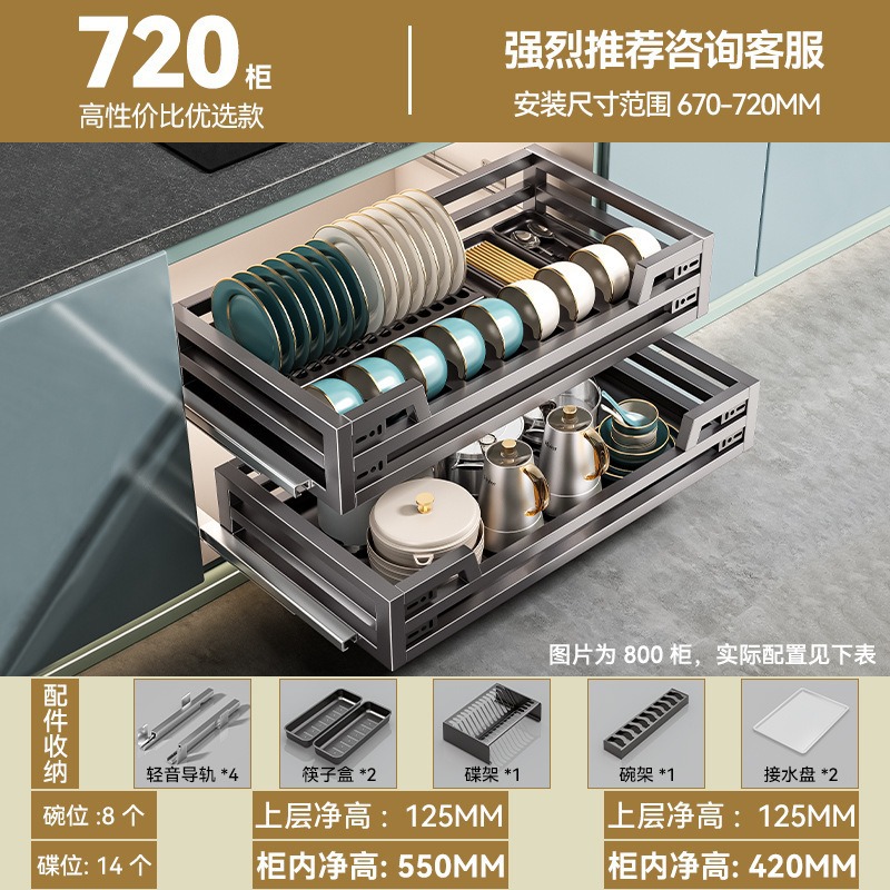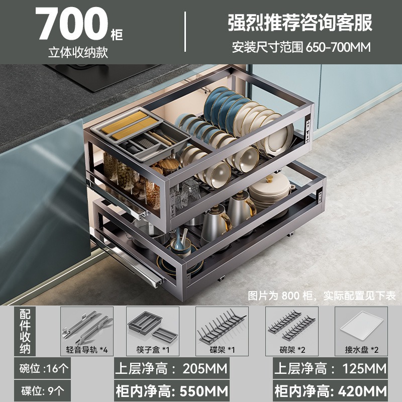 • Starry Sky Grey [공간 업그레이드] 750 캐비닛 더블 레이어 - 두꺼워진 저소음 댐핑 가이드 레일