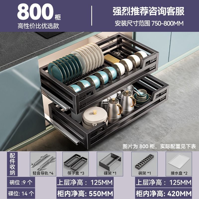 • Starry Sky Grey [공간 업그레이드] 800 캐비닛 더블 레이어 - 두꺼운 저소음 댐핑 가이드 레일
