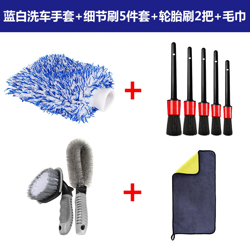• 파란색/흰색 세차 장갑 + 디테일 브러쉬 5종 세트 + 타월 + 타이어 브러쉬 2개 --- 특가 할인