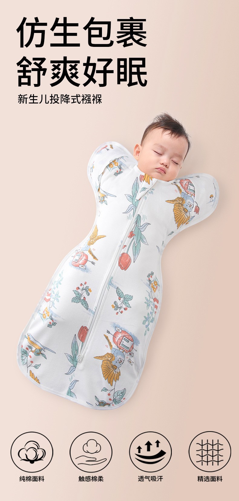 신생아 충격 방지 포대기 포위형 수면 주머니 순면 포대기 봄 여름 가을 아기 수면 주머니스토어 가기