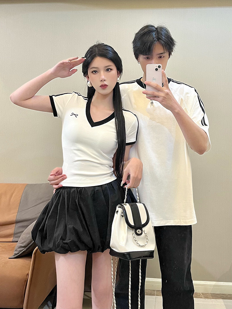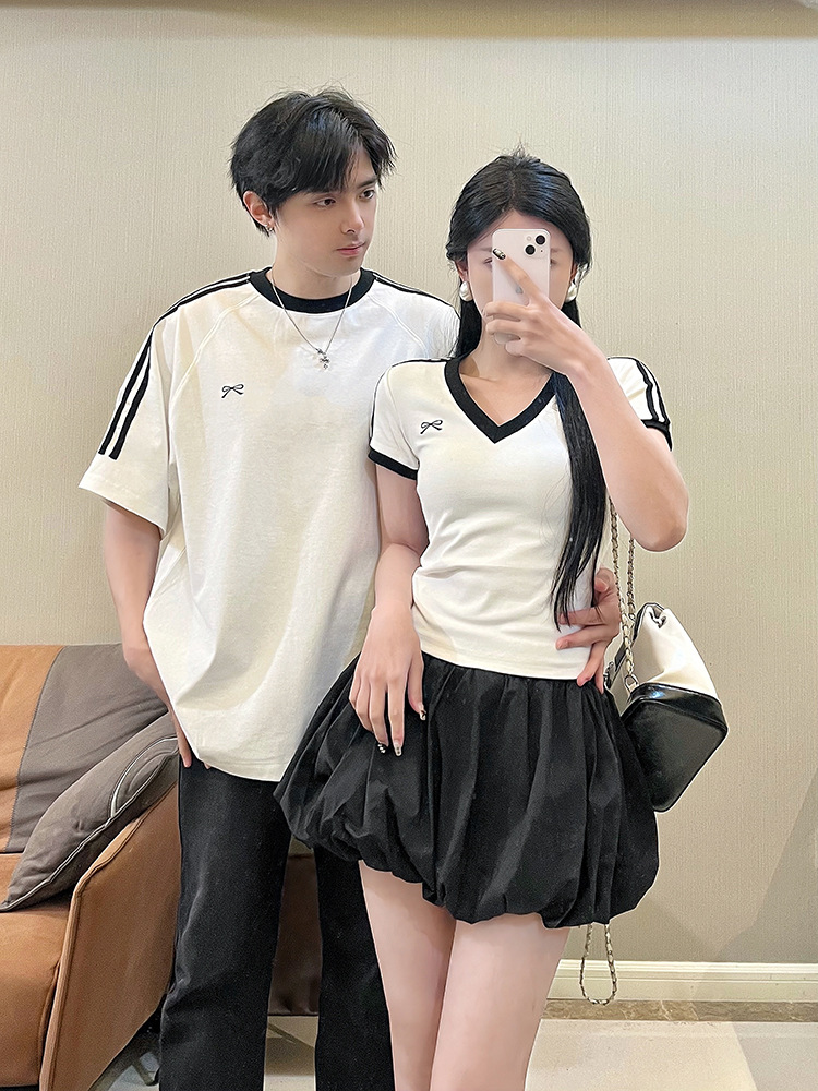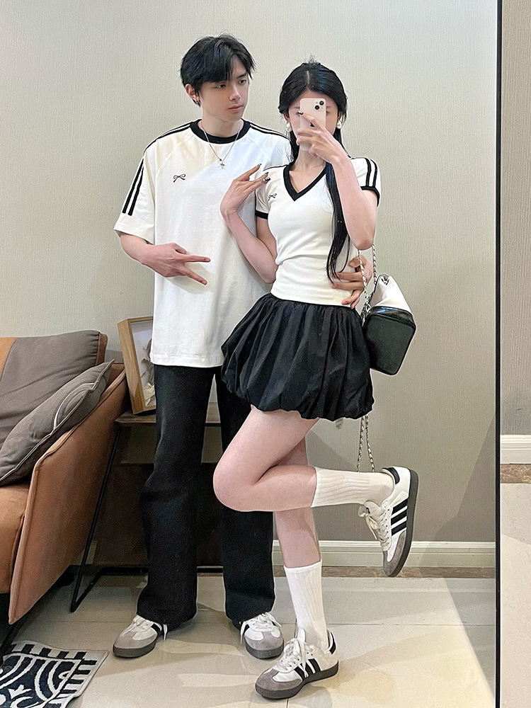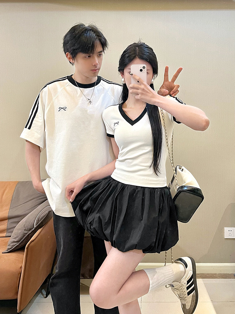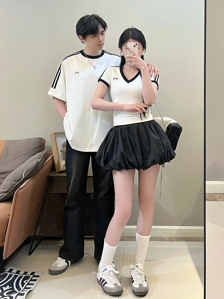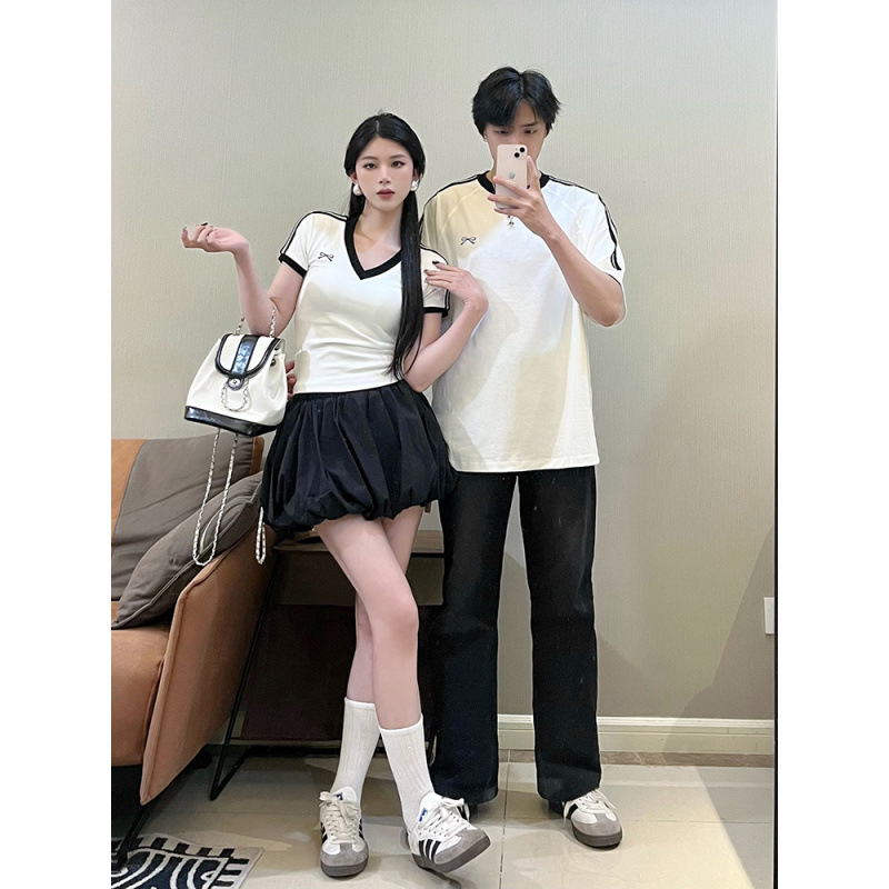 2025년 신작 여름 커플복 반팔 다용도 캐주얼 반팔 티셔츠 탑 스커트