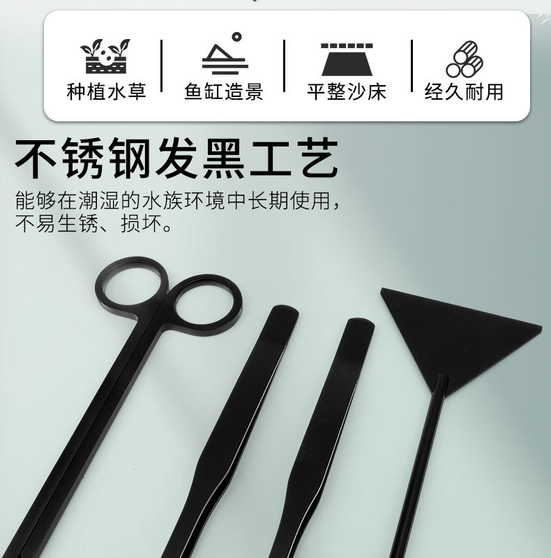 • 블랙 스트레이트 컷 4종 세트(모래삽+곡선 핀셋+직선 핀셋+수초 가위)
