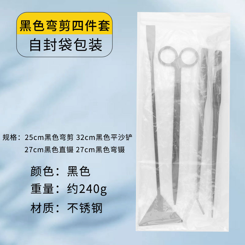 • 검은색 곡선가위 4종 세트(모래삽+곡선핀셋+직선핀셋+수초가위)