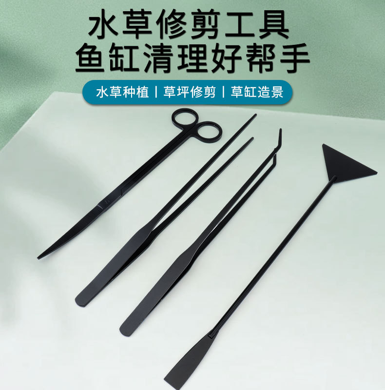 • 블랙 웨이브 컷 4종 세트(모래삽+곡선 핀셋+직선 핀셋+수초 가위)