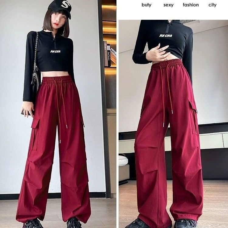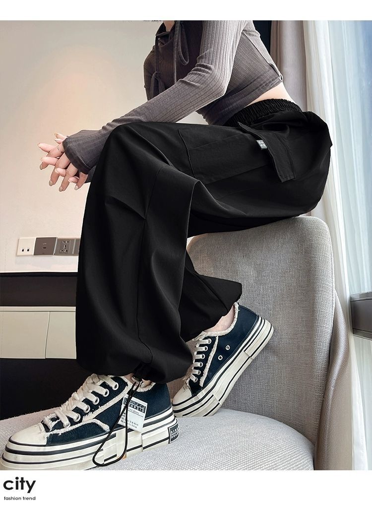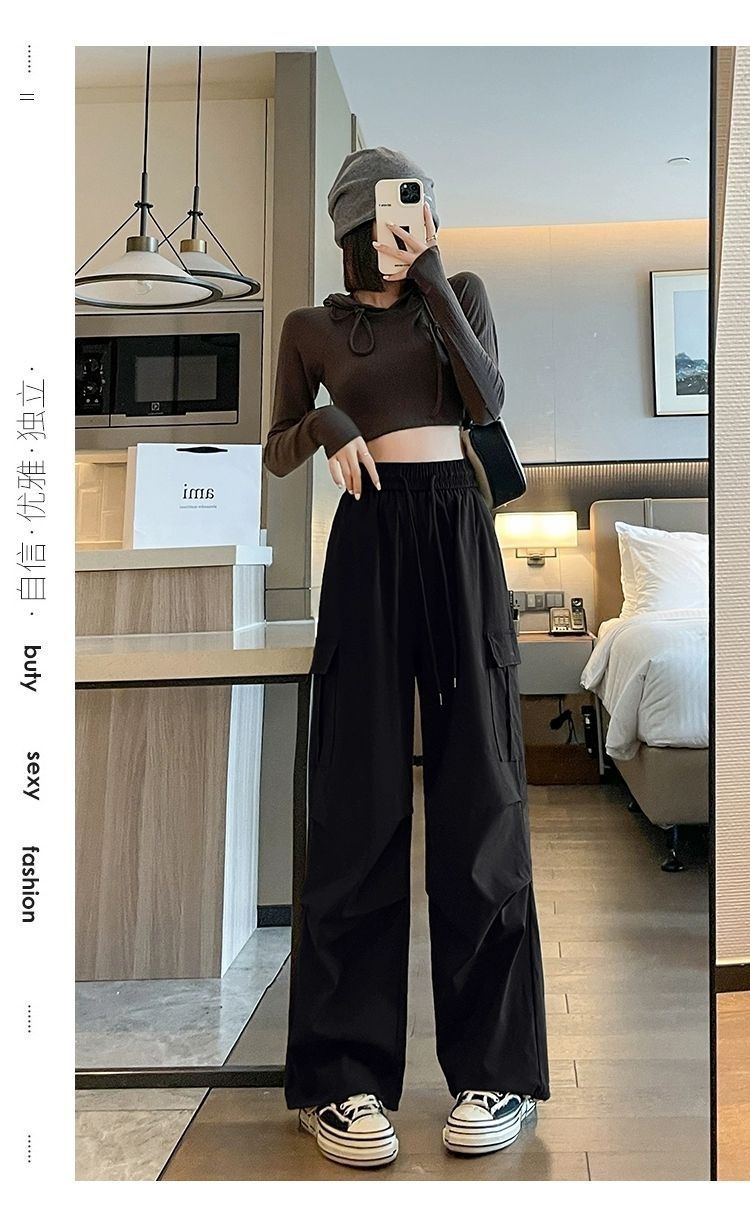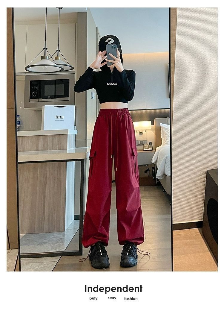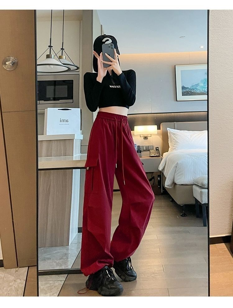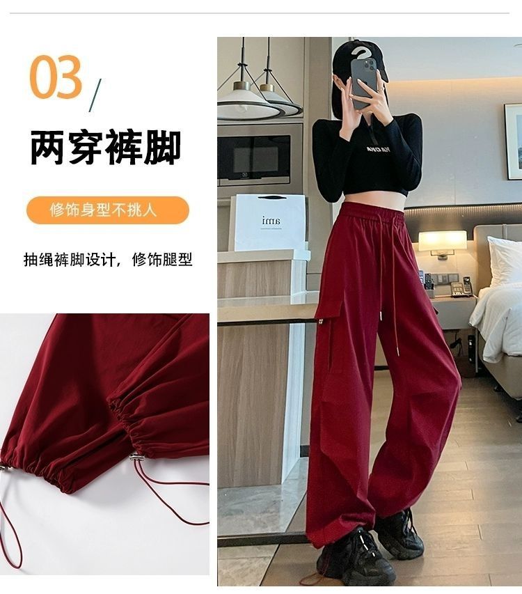Maillard 새로운 가을이 여성의 높은 허리 스트레이트 루즈 슬리밍 캐주얼 스포츠 와이드 레그 트렌디 팬츠스토어 가기