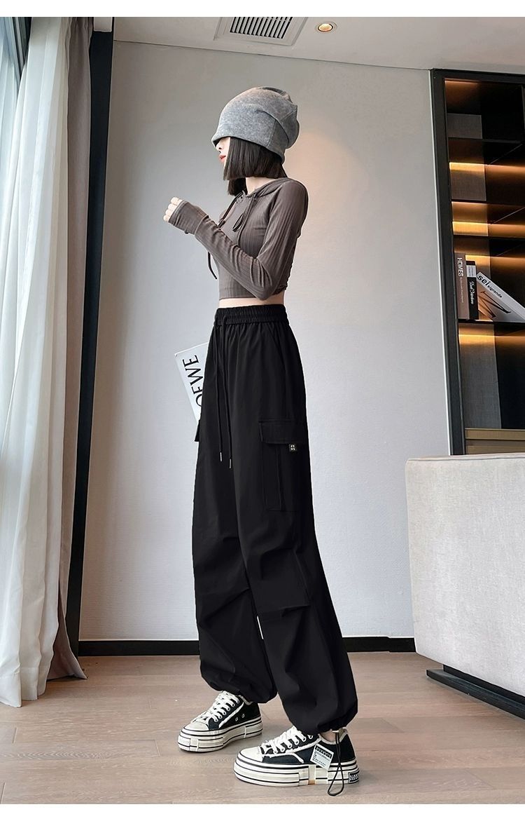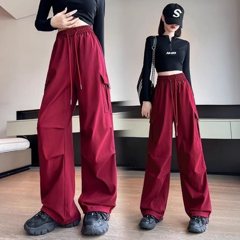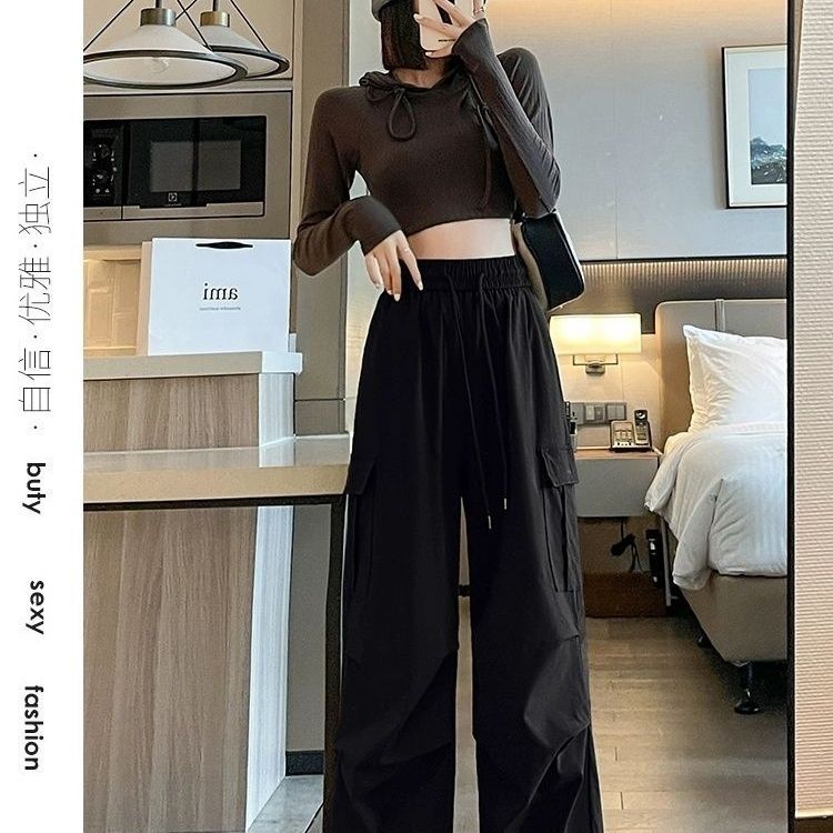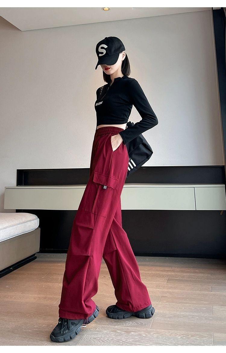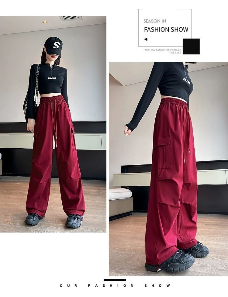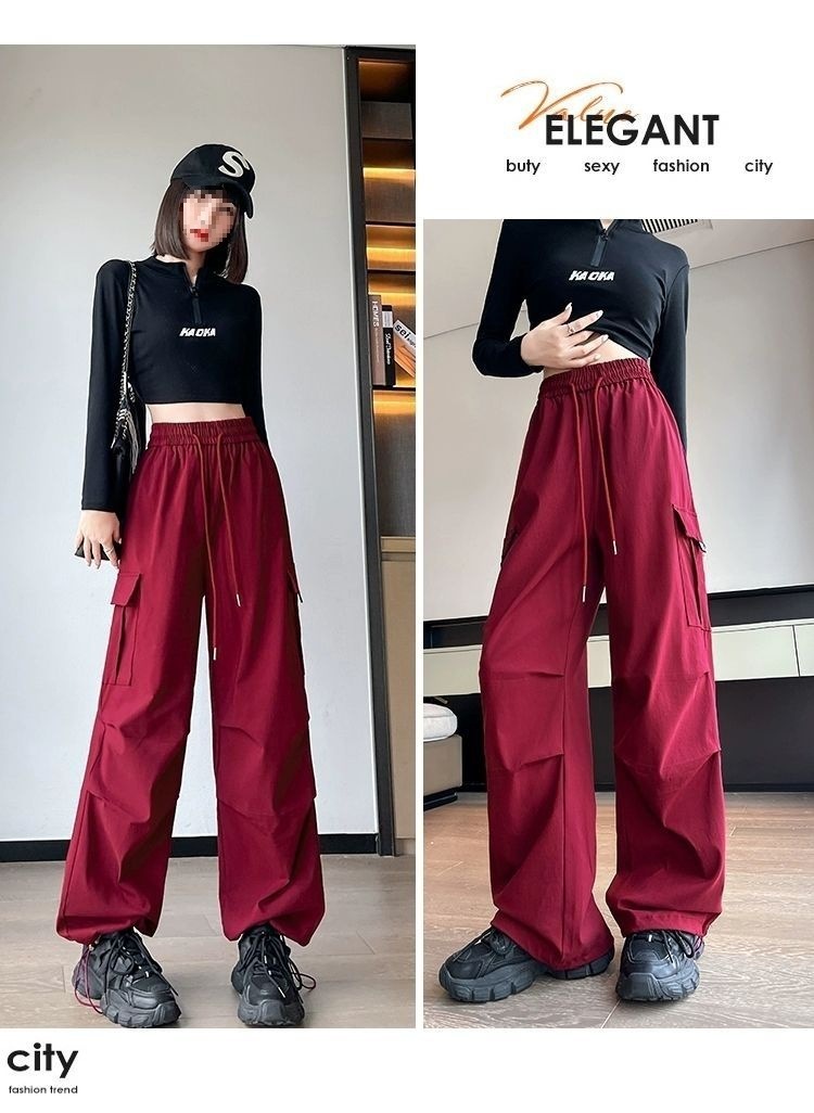 Maillard 새로운 가을이 여성의 높은 허리 스트레이트 루즈 슬리밍 캐주얼 스포츠 와이드 레그 트렌디 팬츠스토어 가기