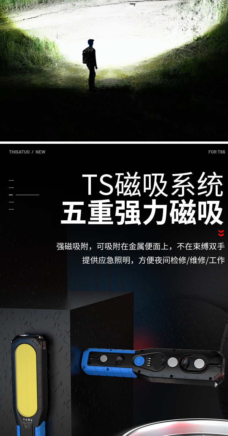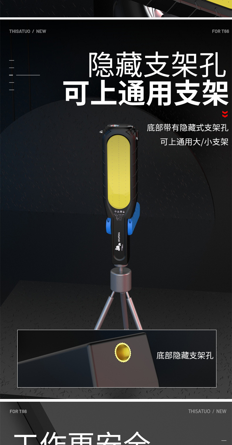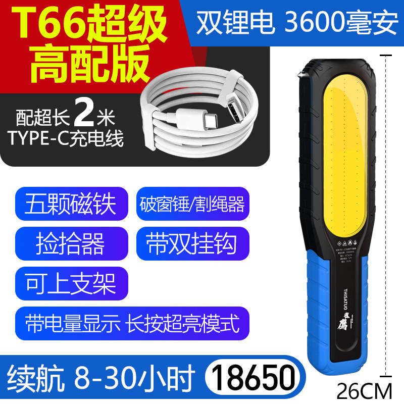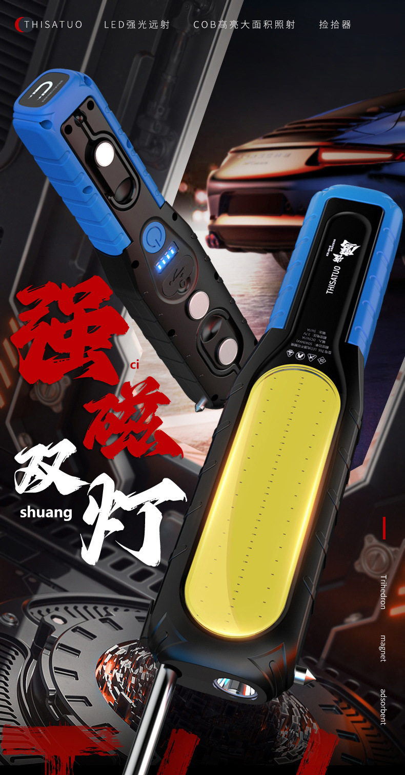 슈퍼 밝은 작업 조명, 자동 수리 및 유지 보수 조명, LED 강한 빛 손전등, 공작 기계 비상 조명, 초강력 자기 충전식 조명