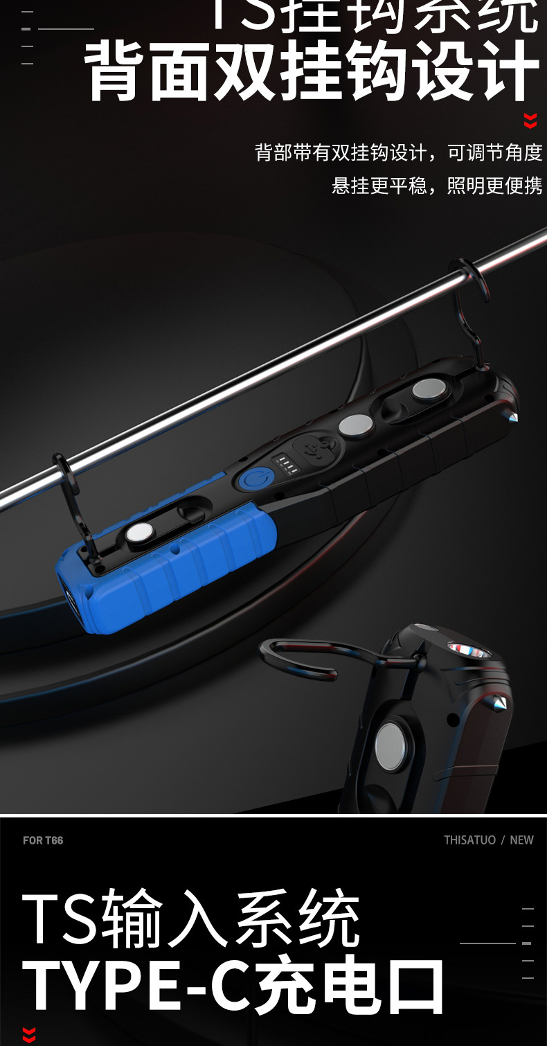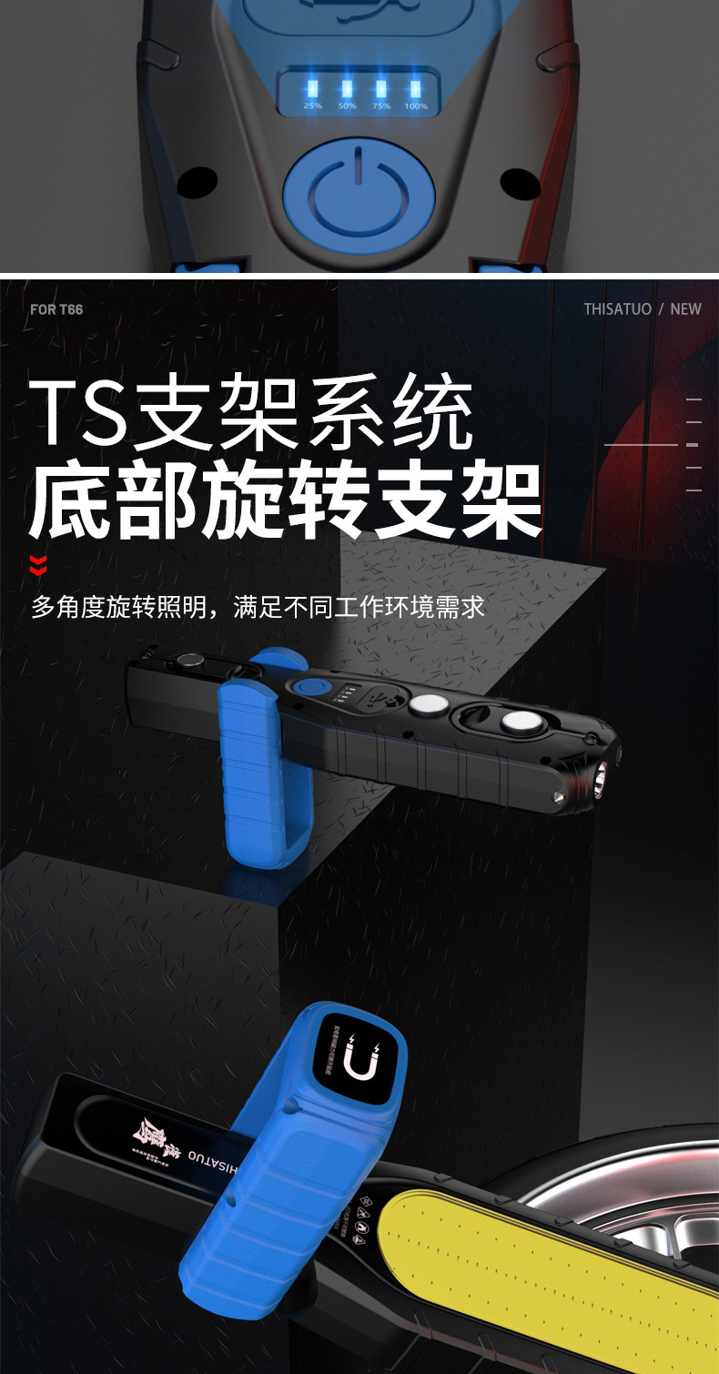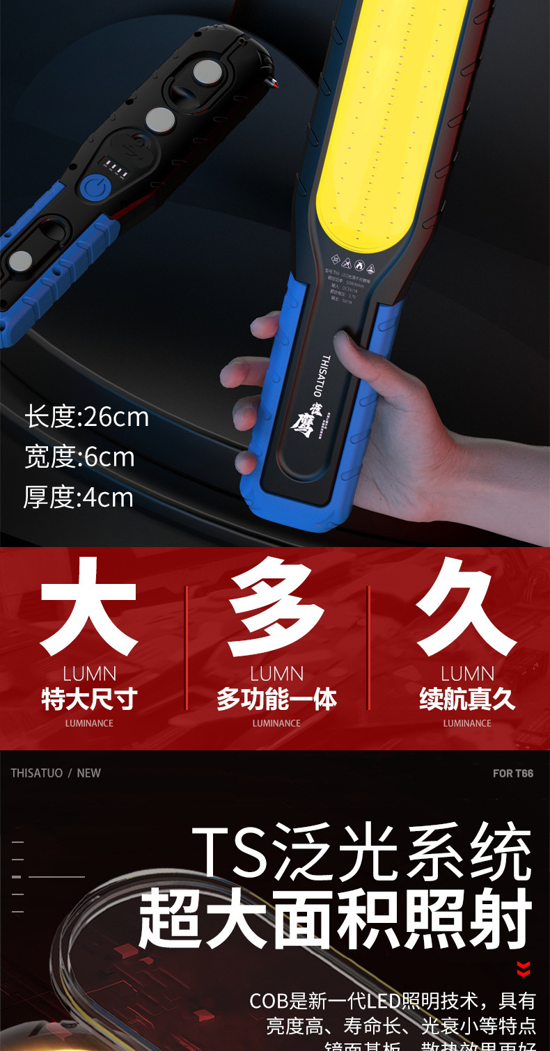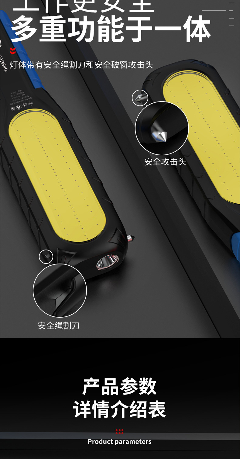 슈퍼 밝은 작업 조명, 자동 수리 및 유지 보수 조명, LED 강한 빛 손전등, 공작 기계 비상 조명, 초강력 자기 충전식 조명