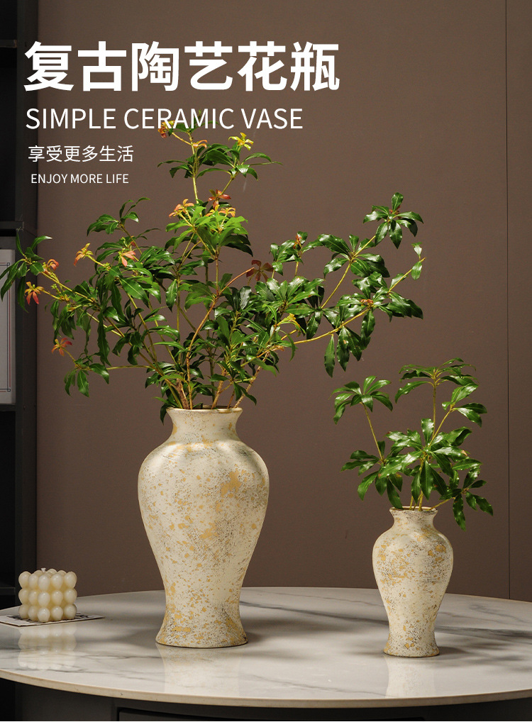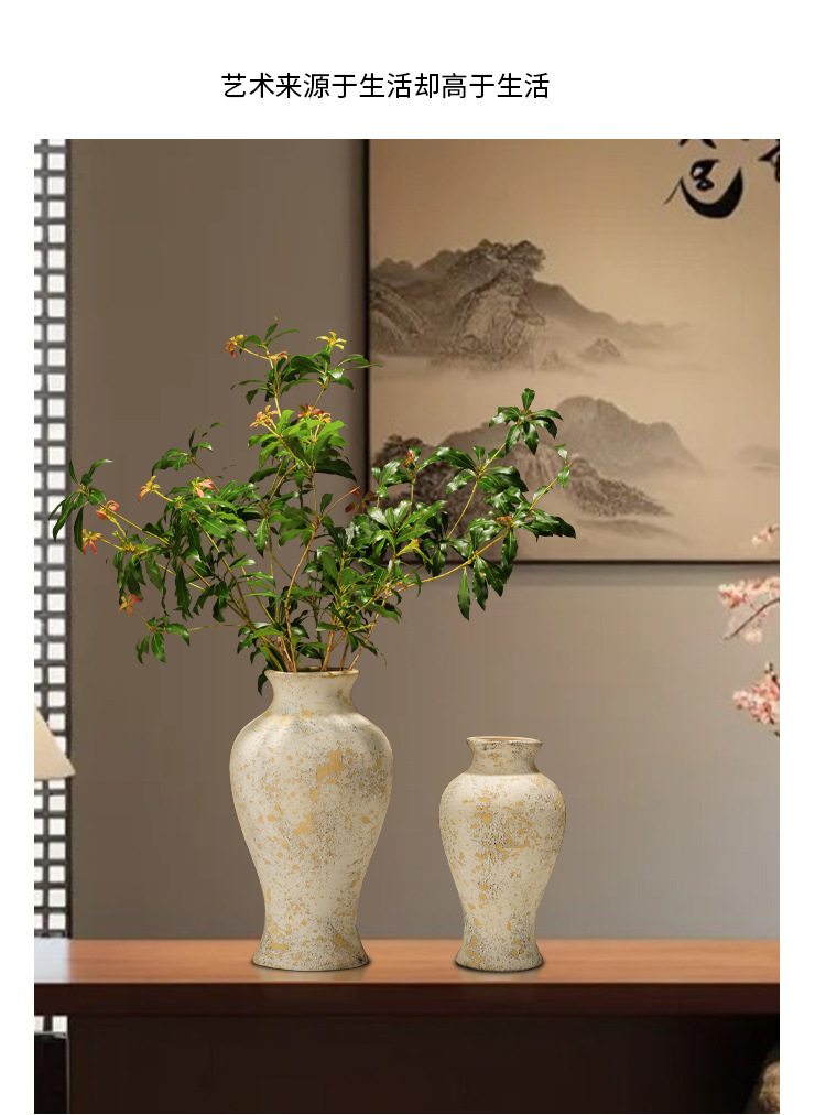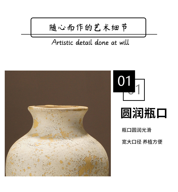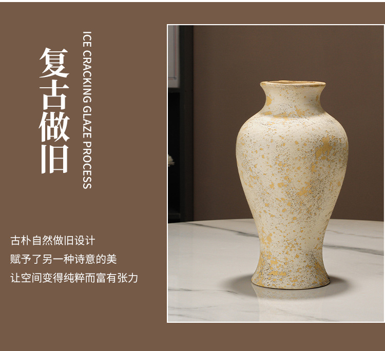 조용한 스타일 빈티지 세라믹 말린 꽃 꽃병 홈스테이 거실 선 스타일 거친 도자기 수경 꽃병 장식스토어 가기