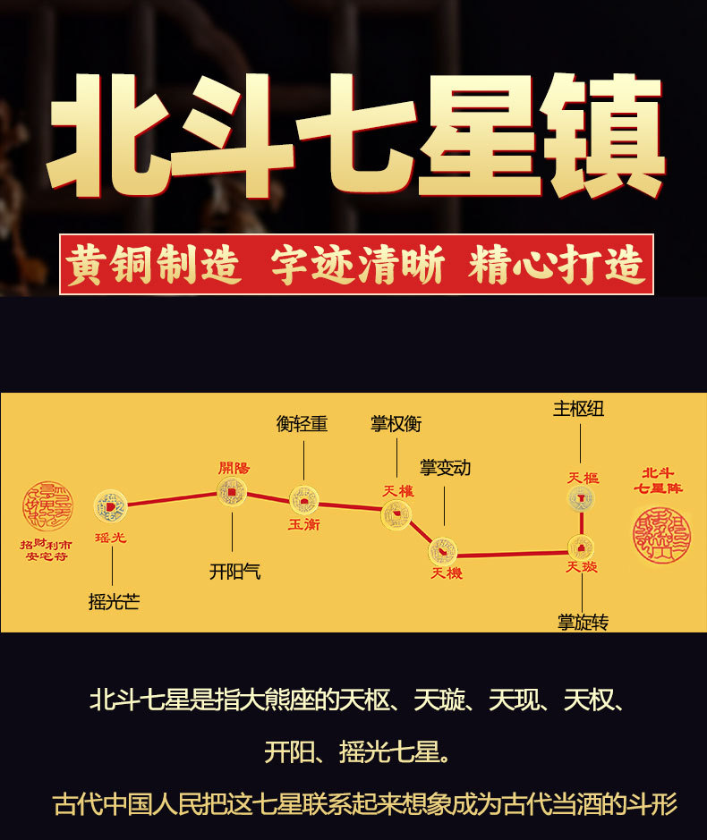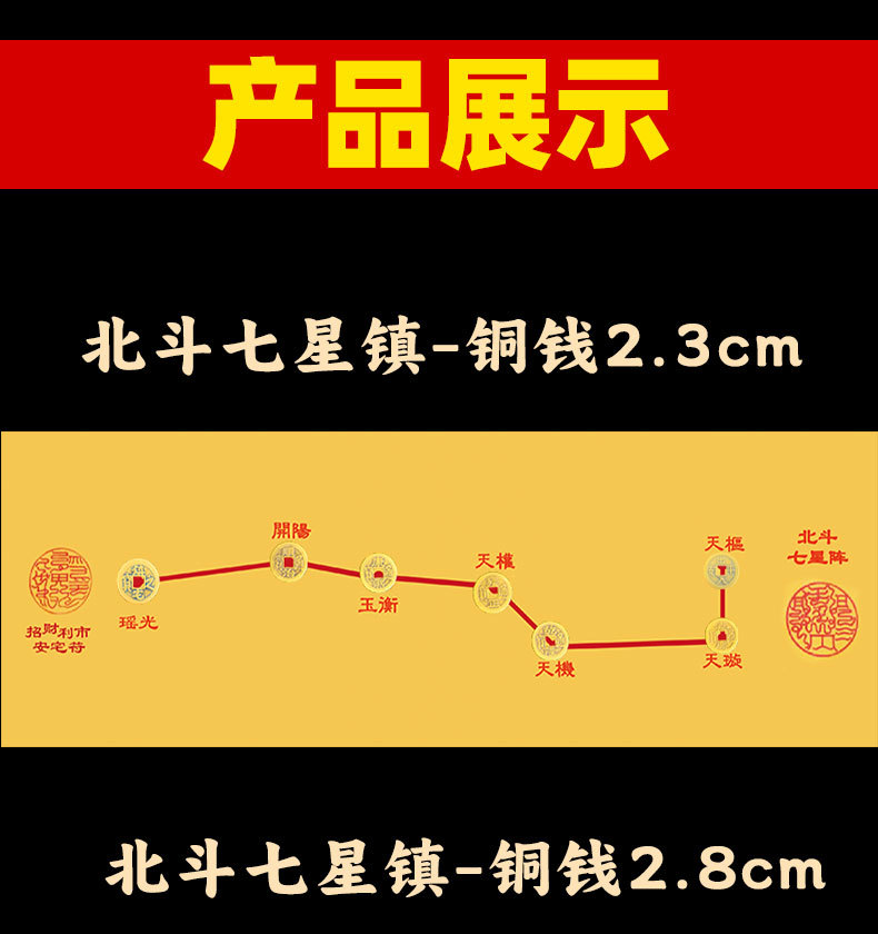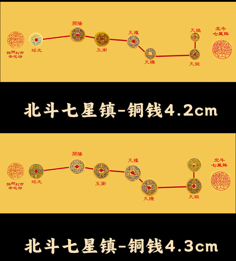 세븐 스타 핑 안락 다섯 황제 돈 장식품 큰 두부 일곱 별 배열 차트 스티커 펜던트 태극권 배열 압력 문턱 돌스토어 가기
