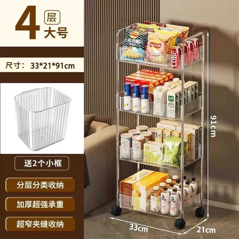 ∝투명 아크릴 트롤리 스낵 보관함 거실 다층 이동식 욕실 보관함
