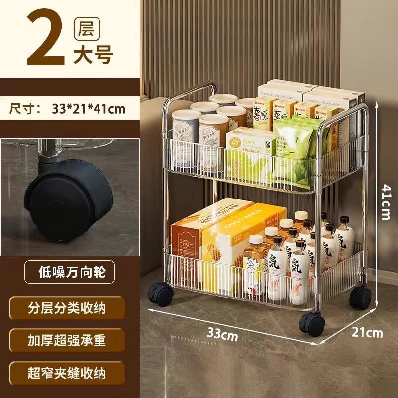 ∝투명 아크릴 트롤리 스낵 보관함 거실 다층 이동식 욕실 보관함스토어 가기