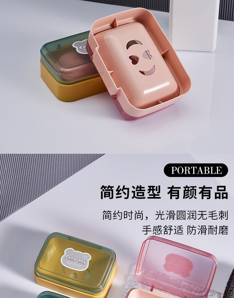 ∝뚜껑이 달린 귀여운 가정용 비누 상자 새로운 배수 비누 상자 비누 상자 욕실 보관함 플라스틱 비누