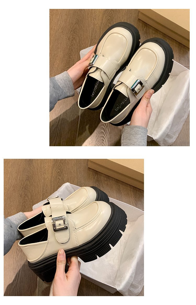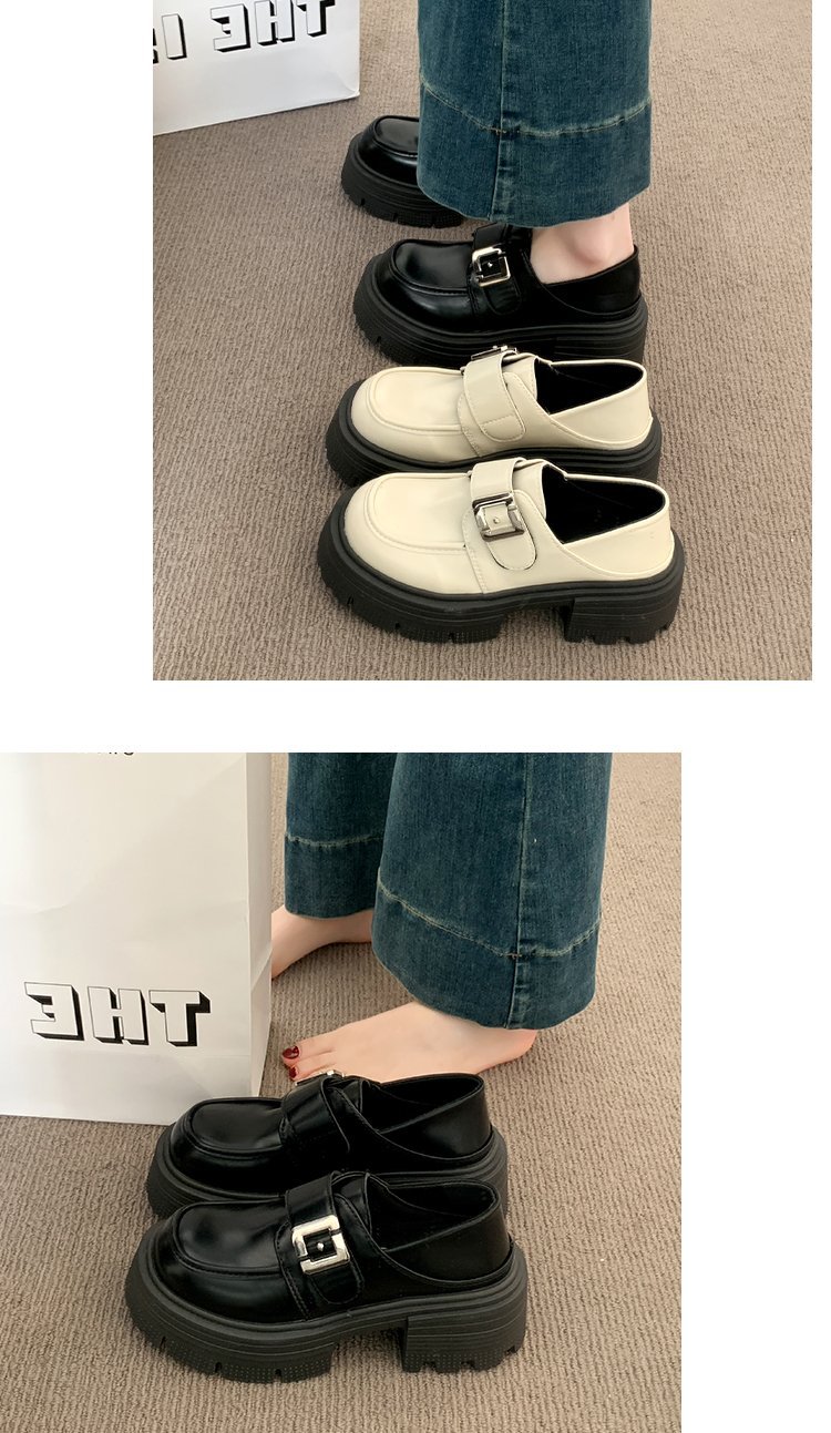 2025년 봄 신상 여성용 두꺼운 밑창 로퍼, 키가 작은 가죽 신발, 영국식 다용도 여성 신발스토어 가기